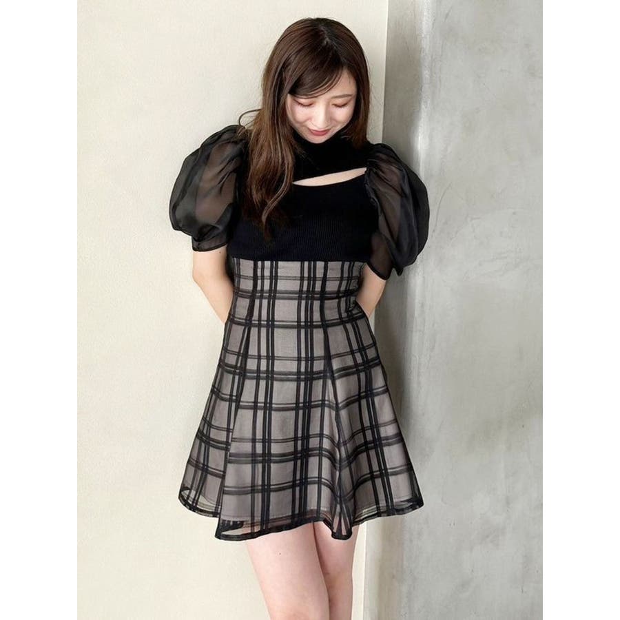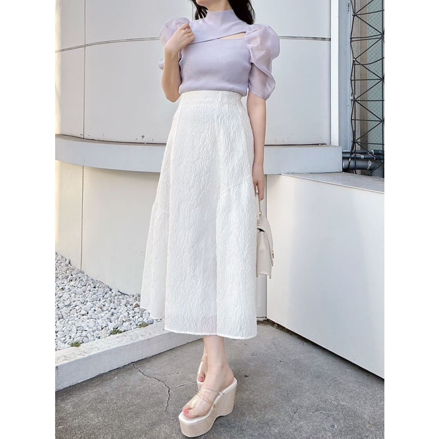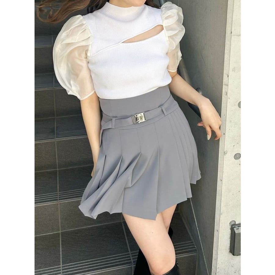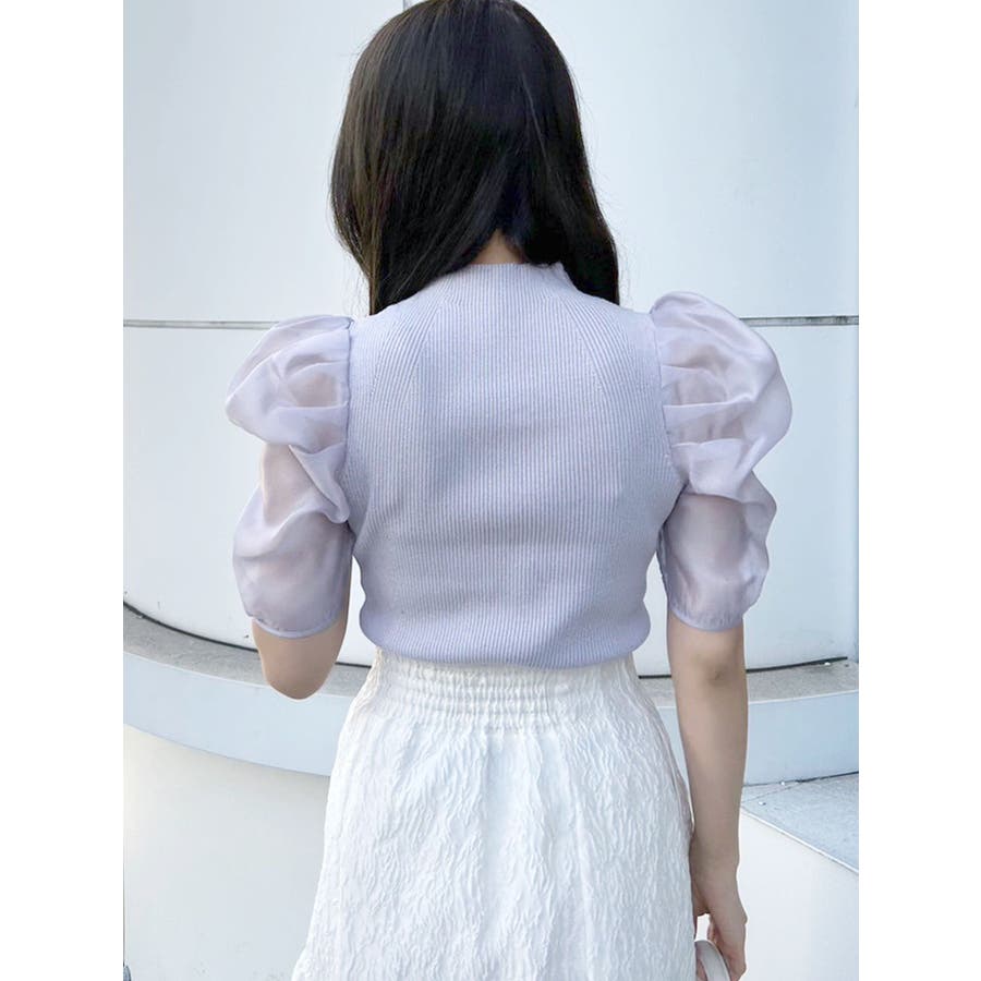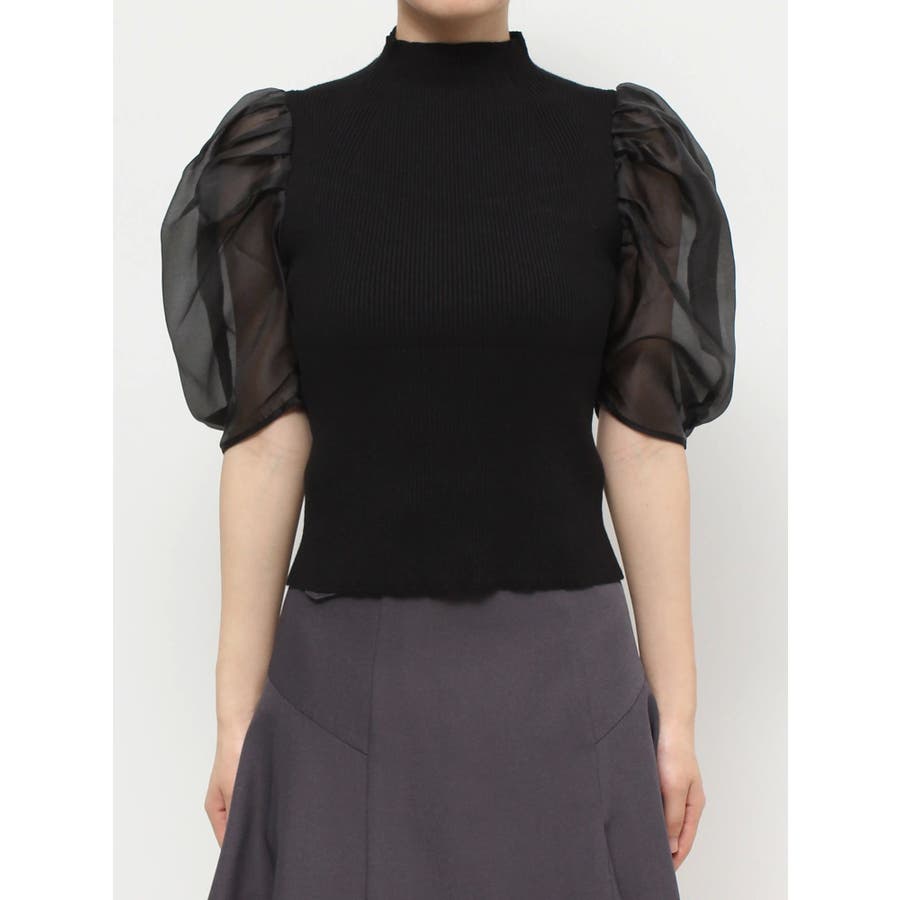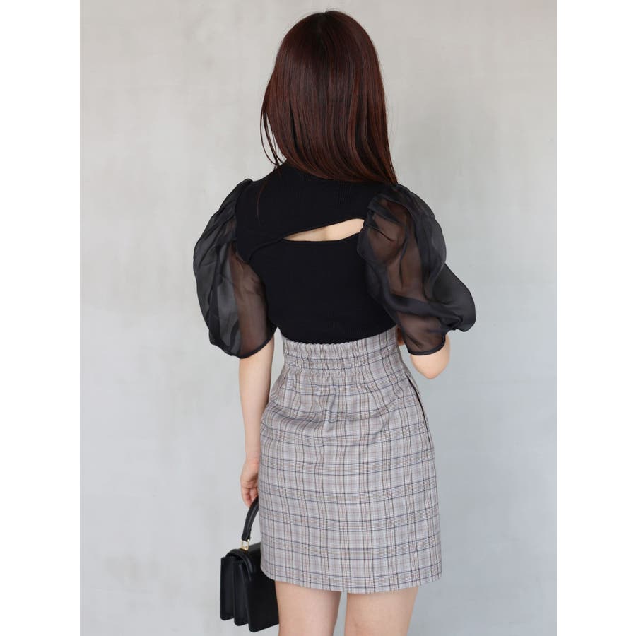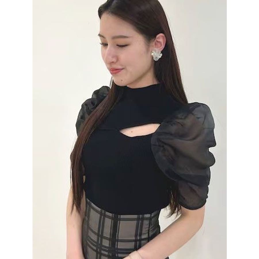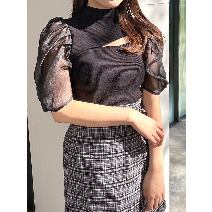 2WAY異素材パフスリーブカットアウトニット