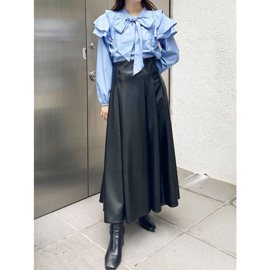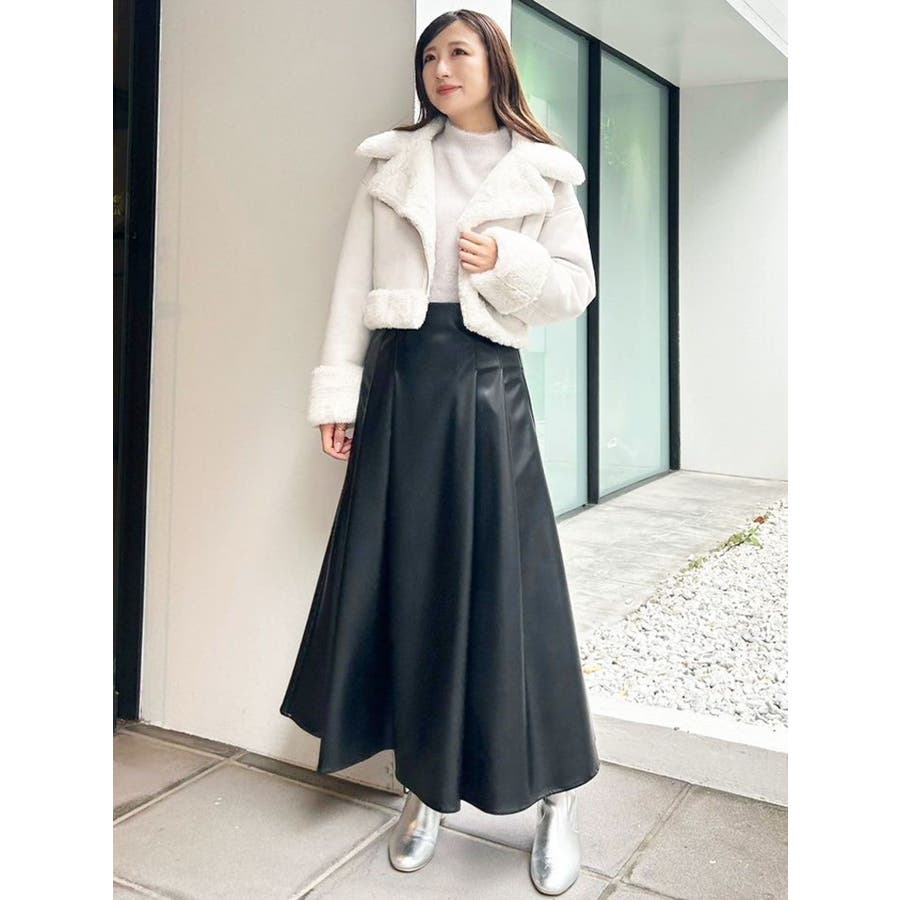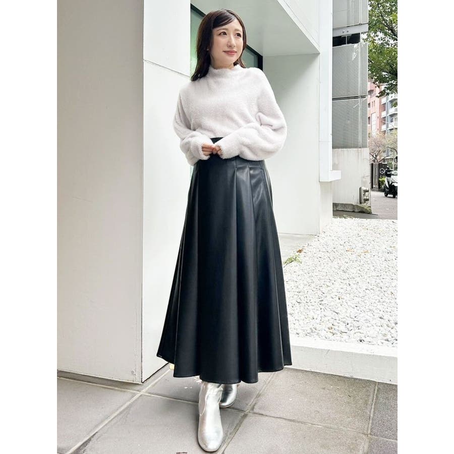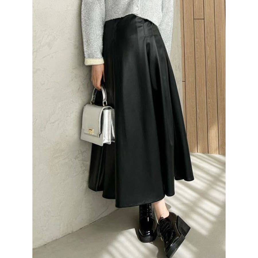 フェイクレザーフレアスカート