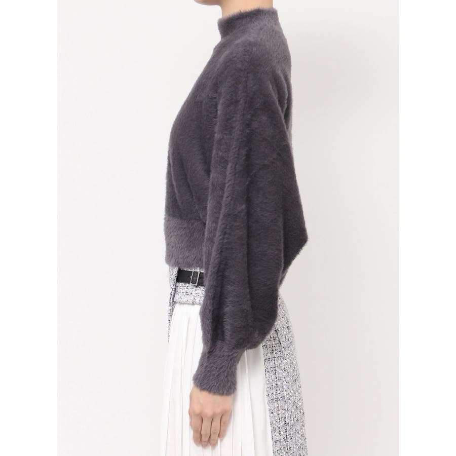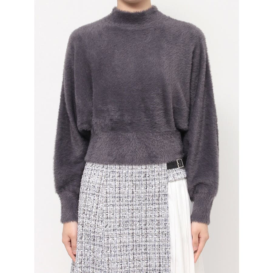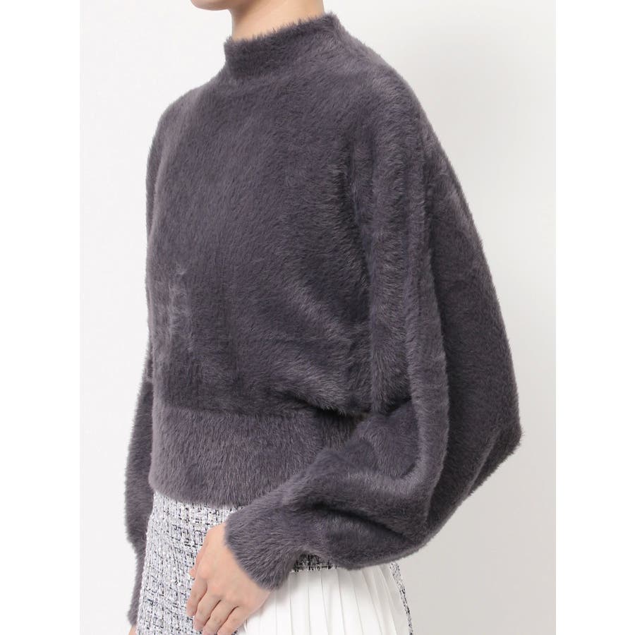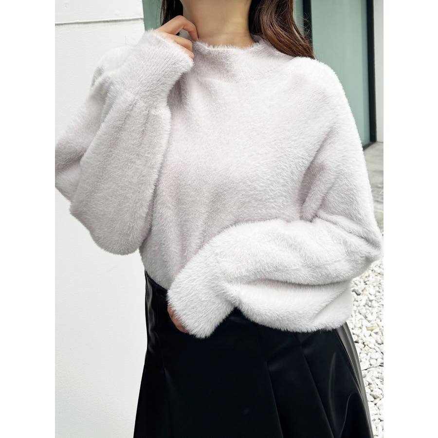 ボトルネックミニシャギーロングスリーブニット