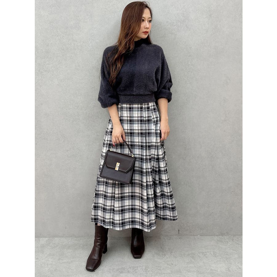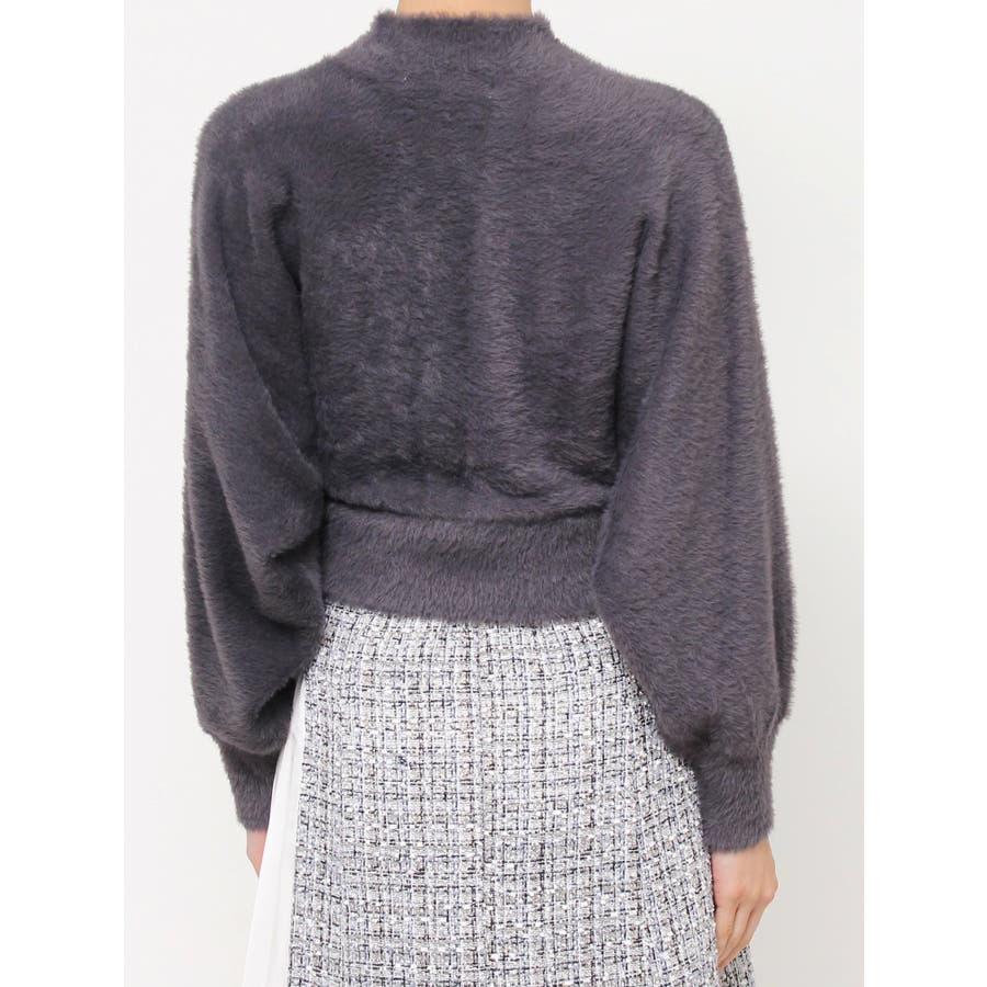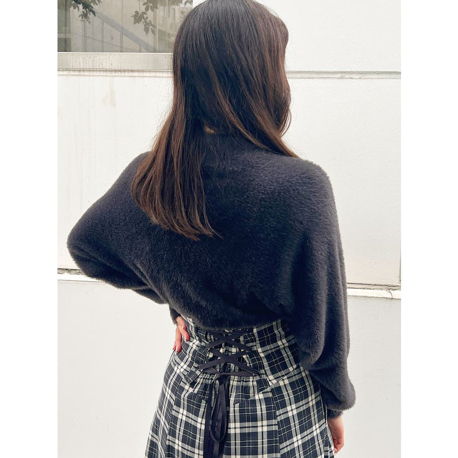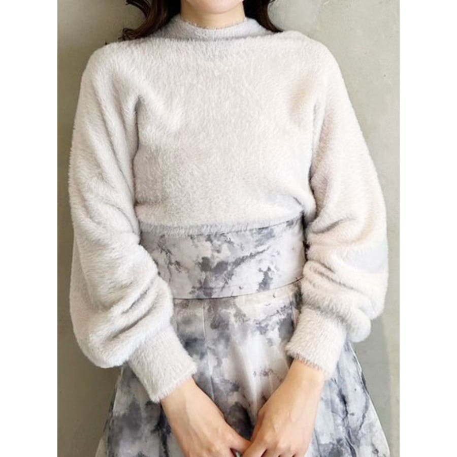ボトルネックミニシャギーロングスリーブニット