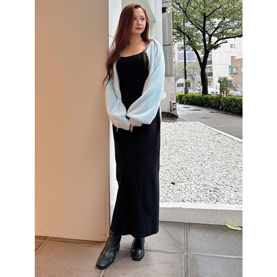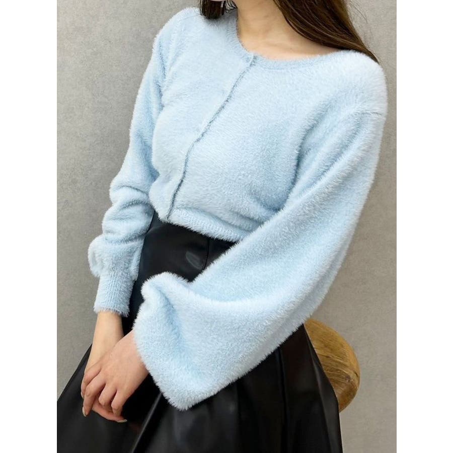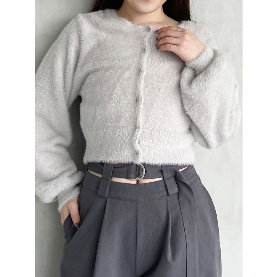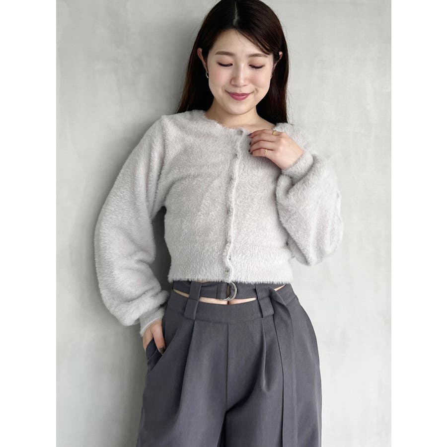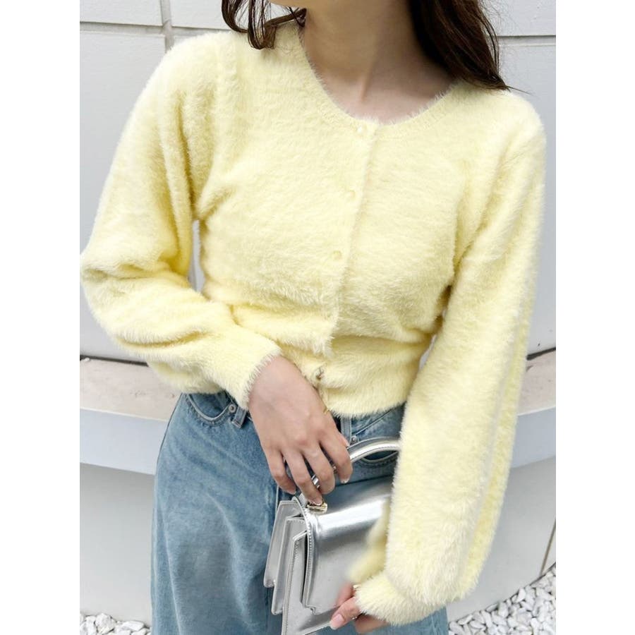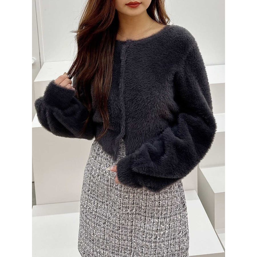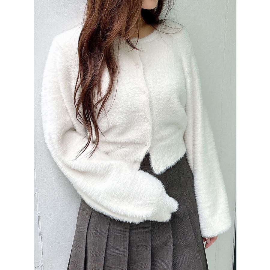 ミニシャギーロングスリーブニットカーディガン