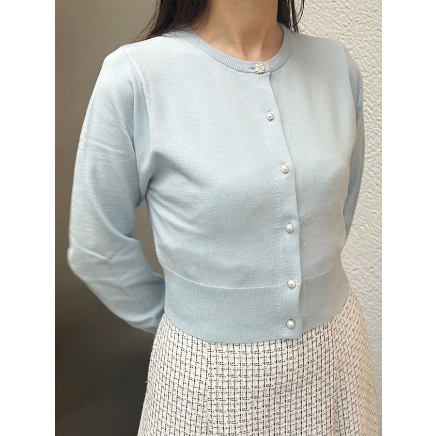 秋らしいカラー展開が可愛いベーシックなクルーカーデ。 第一ボタンにMERCURYDUO(マーキュリーデュオ)らしいきらっとさりげなく光るビジューボタンがアクセントになっています。 トレンドのパール使いで、今っぽさもプラスされています。 短めの着丈なので、ワンピースの羽織りとしてバランスよく着こなせます。 【スタイリング】 アイボリーのワンピースなどに、カラーを合わせて、 カラーをポイントにしたスタイリングが今年らしくておすすめです。 【商品特徴】 透け感:なし 伸縮性:ややあり 生地の厚さ:普通 サイズ感:普通 裏地:なし ポケット:なし
