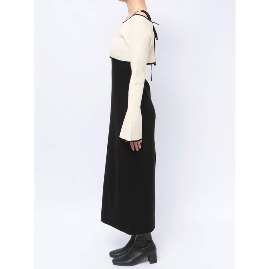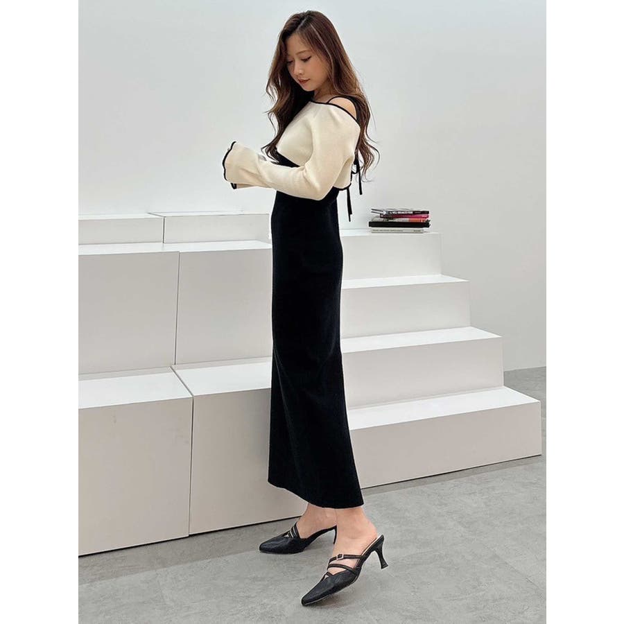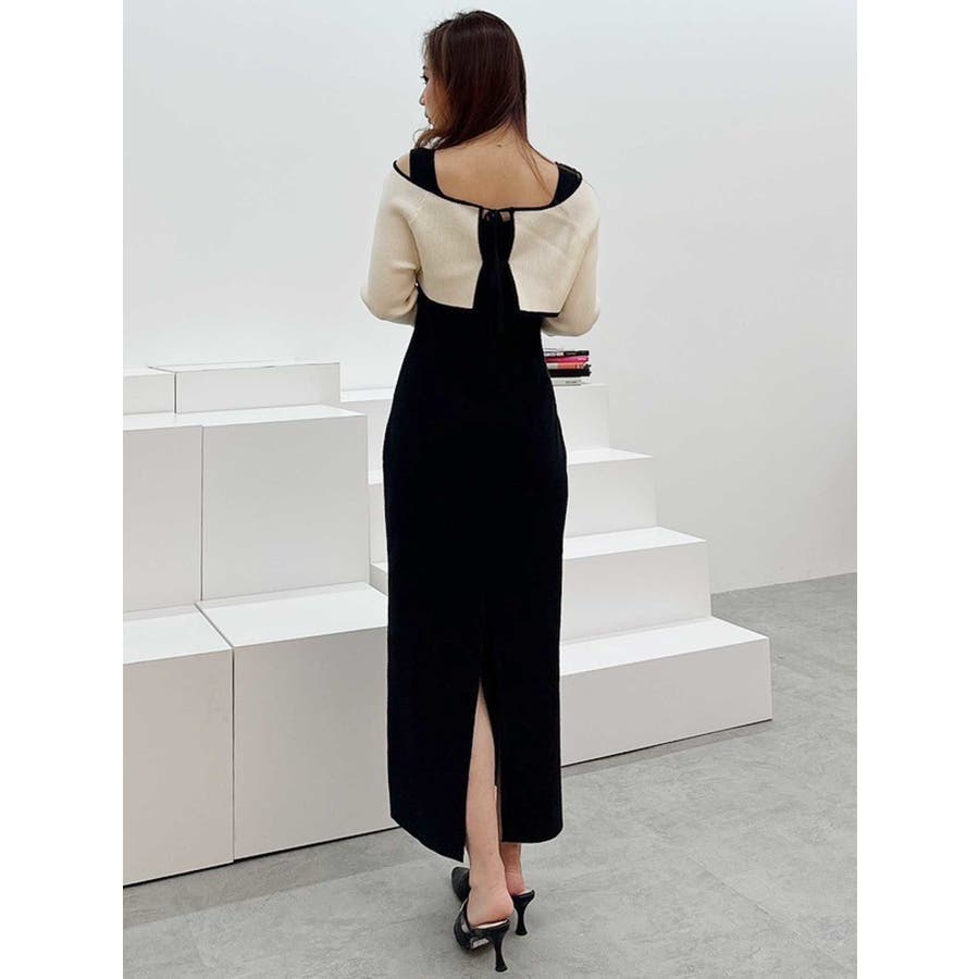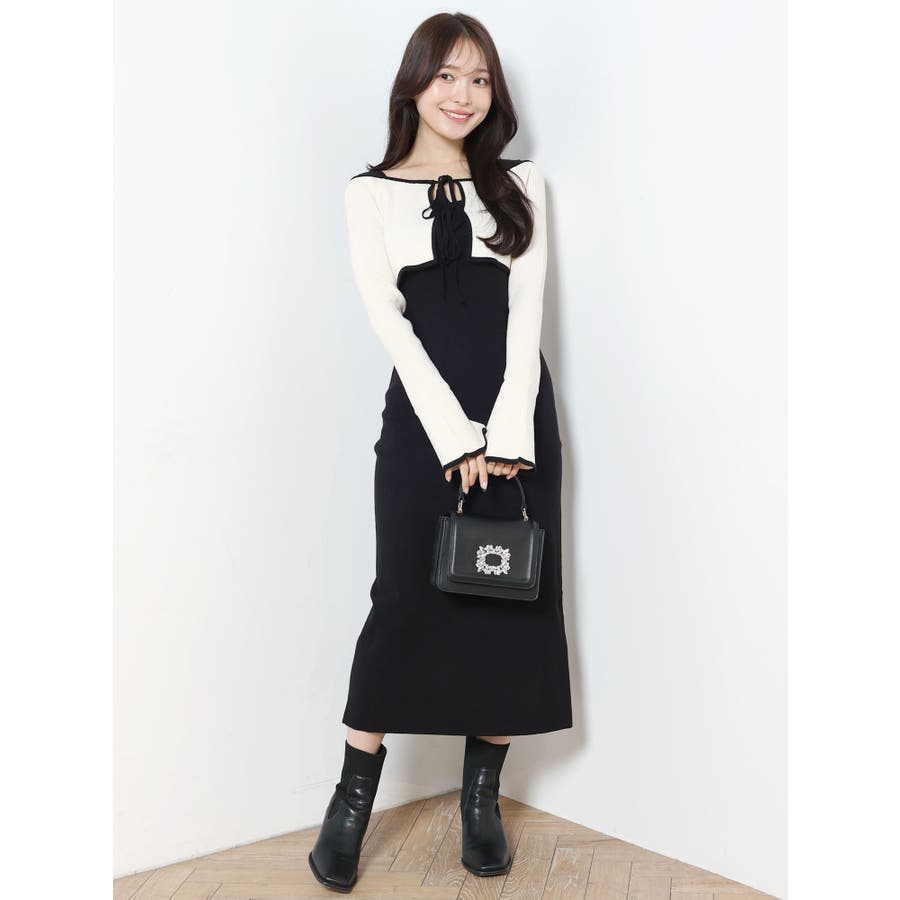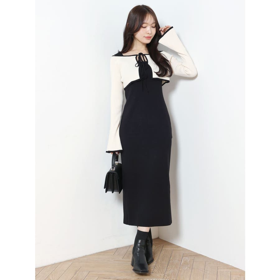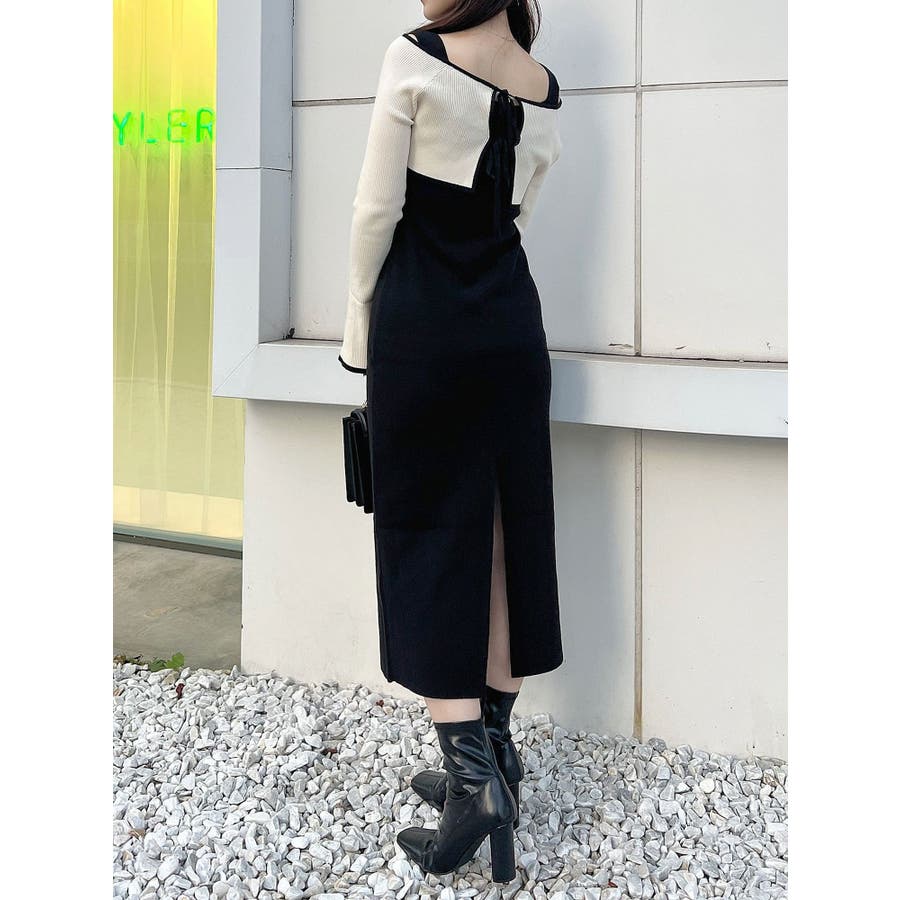 3WAY配色ストラップバッククロスロングスリーブワンピース