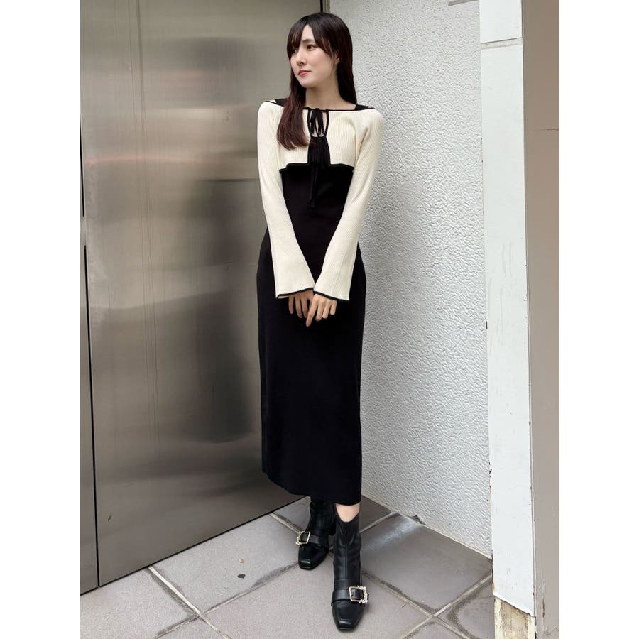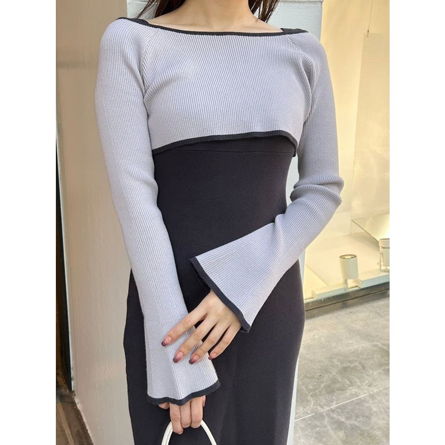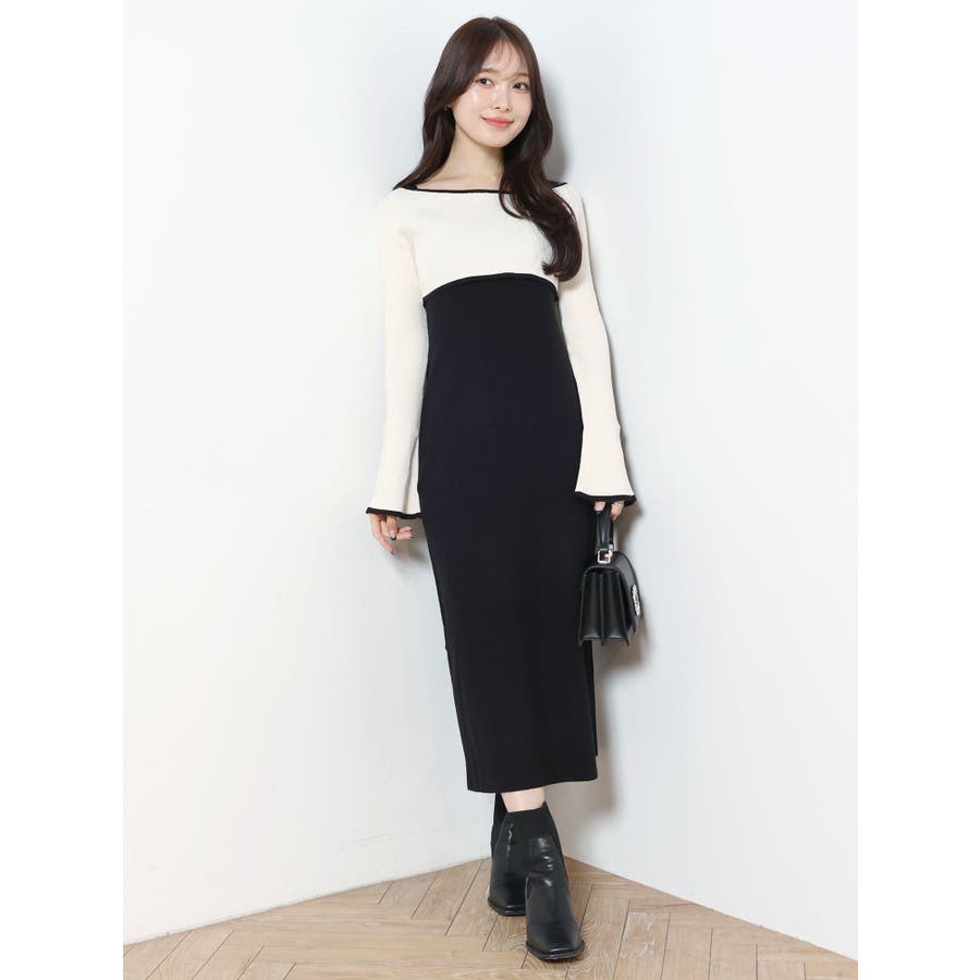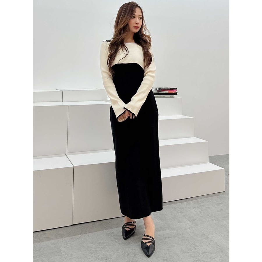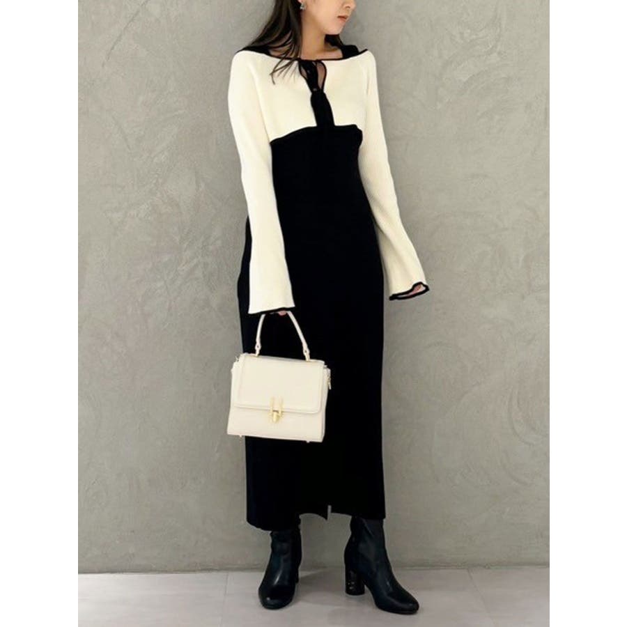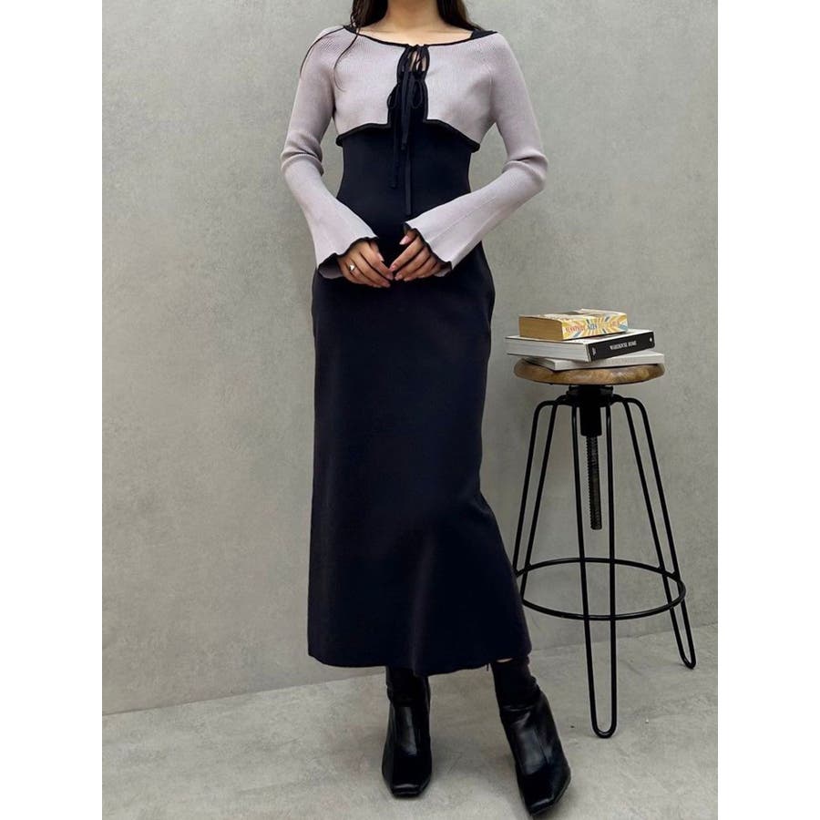 3WAY配色ストラップバッククロスロングスリーブワンピース