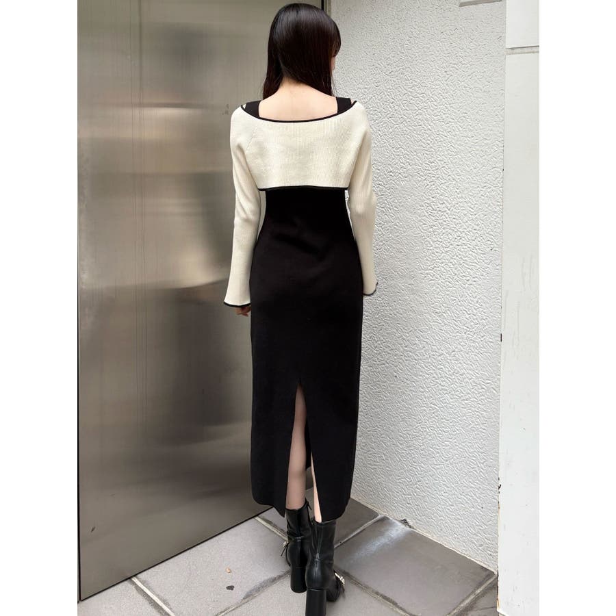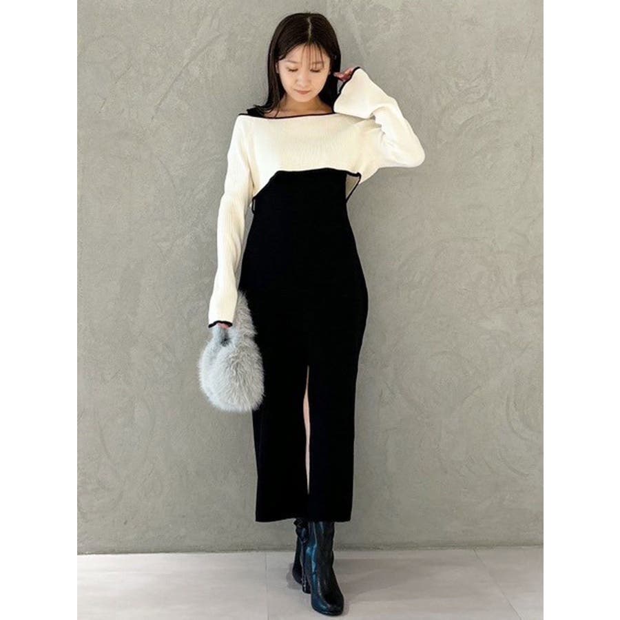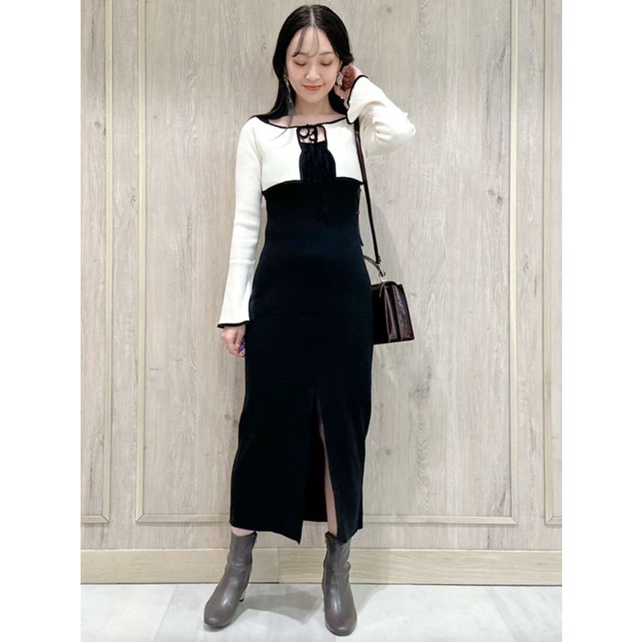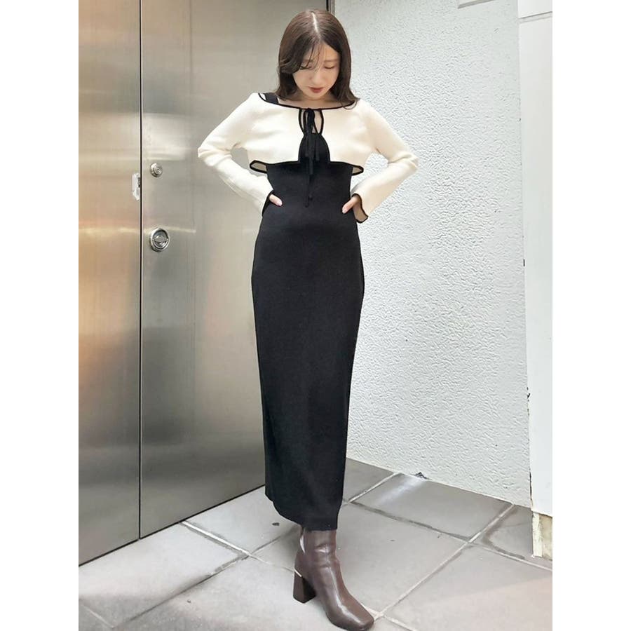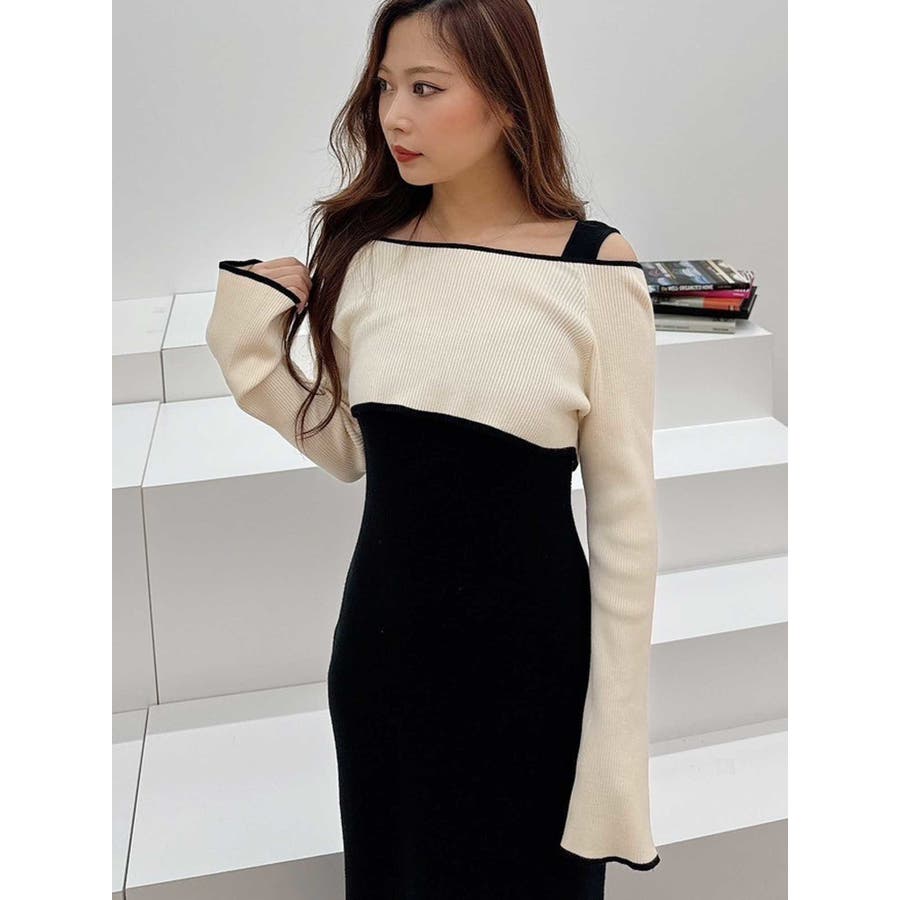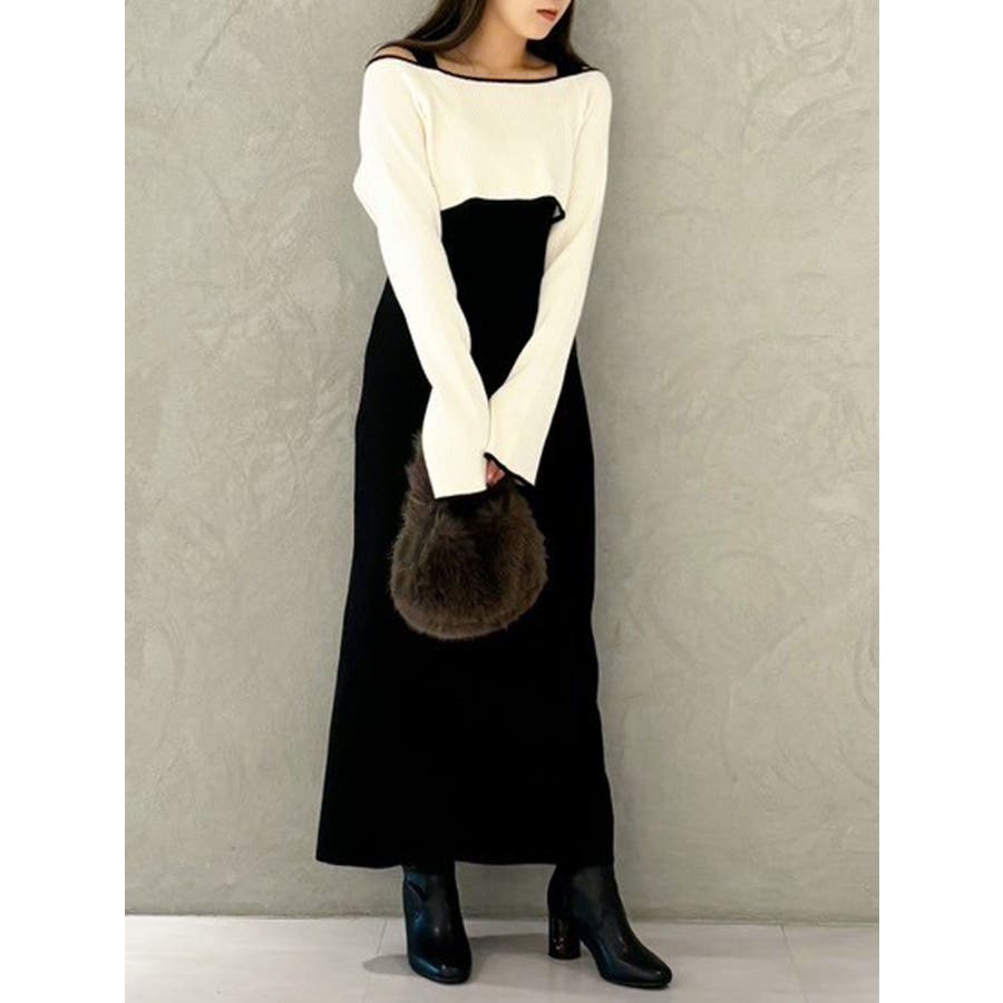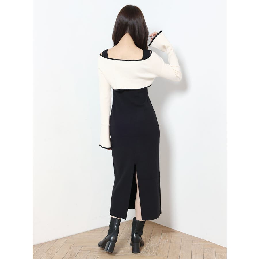 3WAY配色ストラップバッククロスロングスリーブワンピース