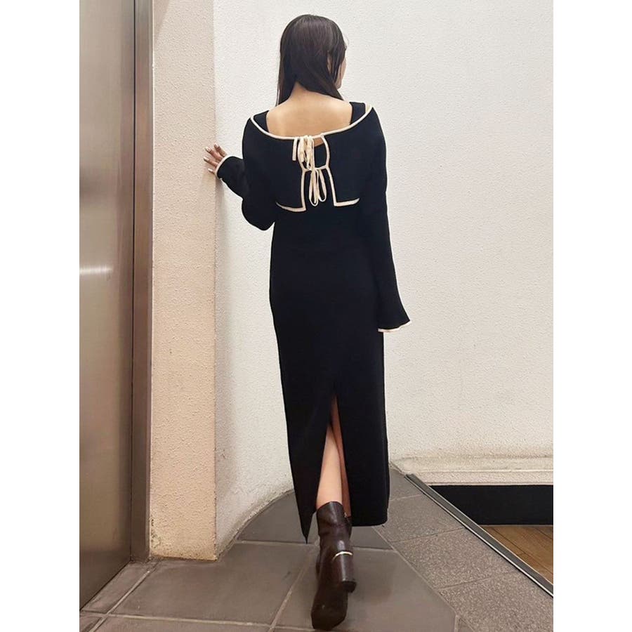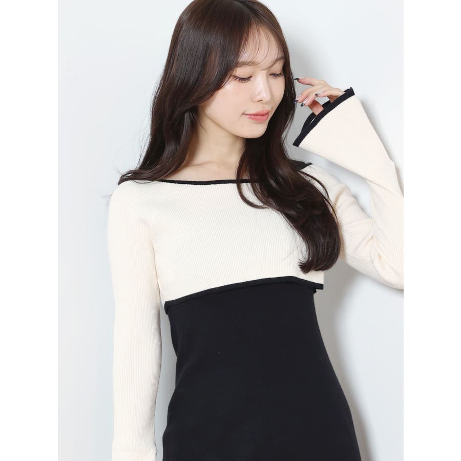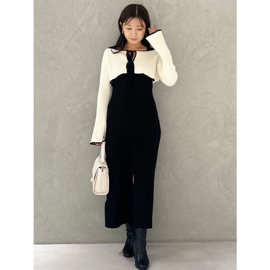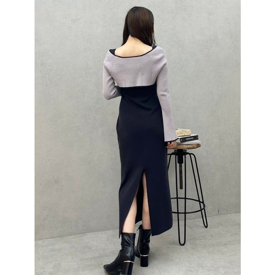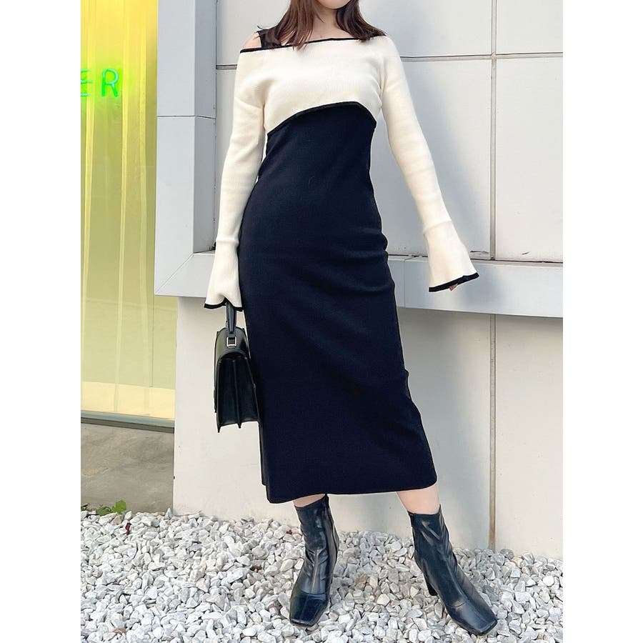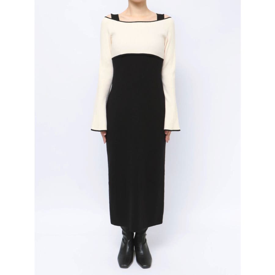 3WAY配色ストラップバッククロスロングスリーブワンピース