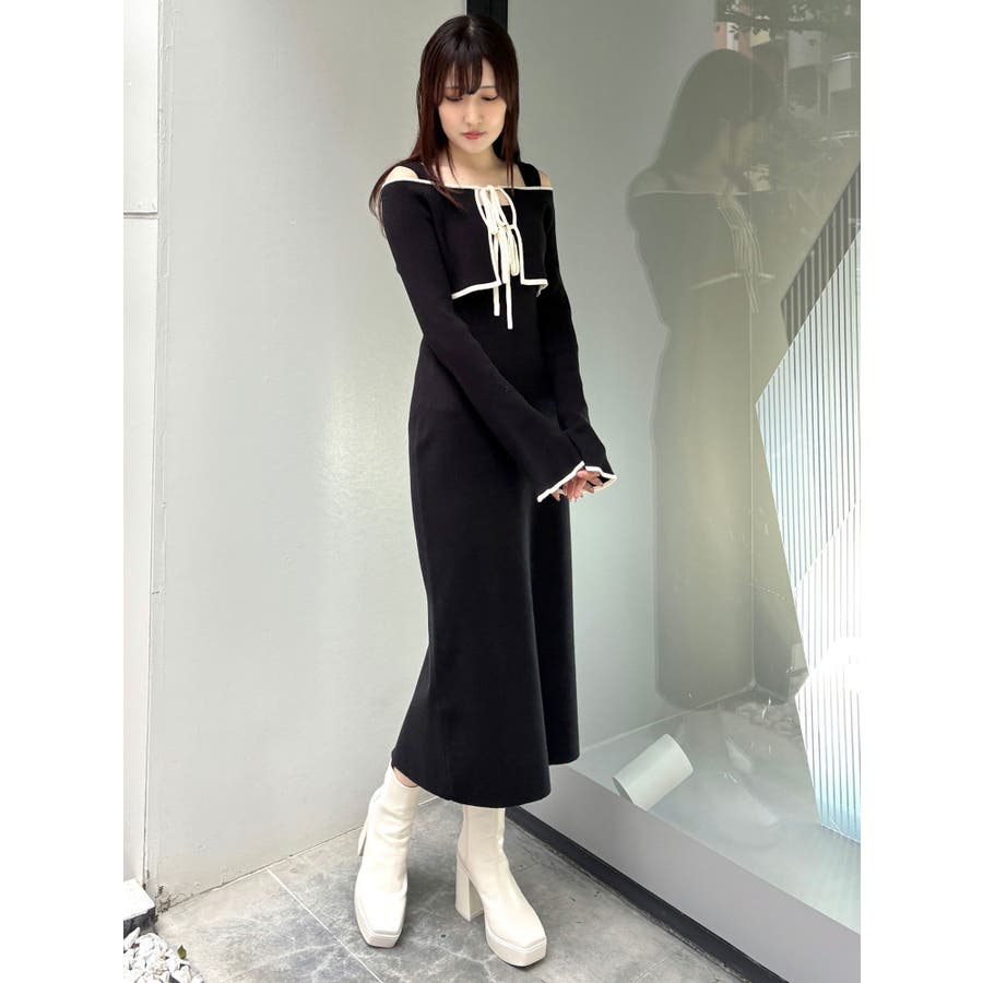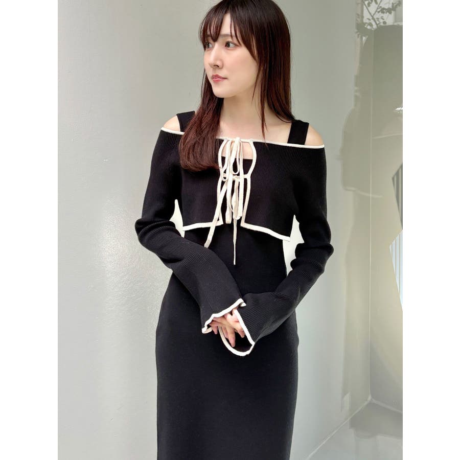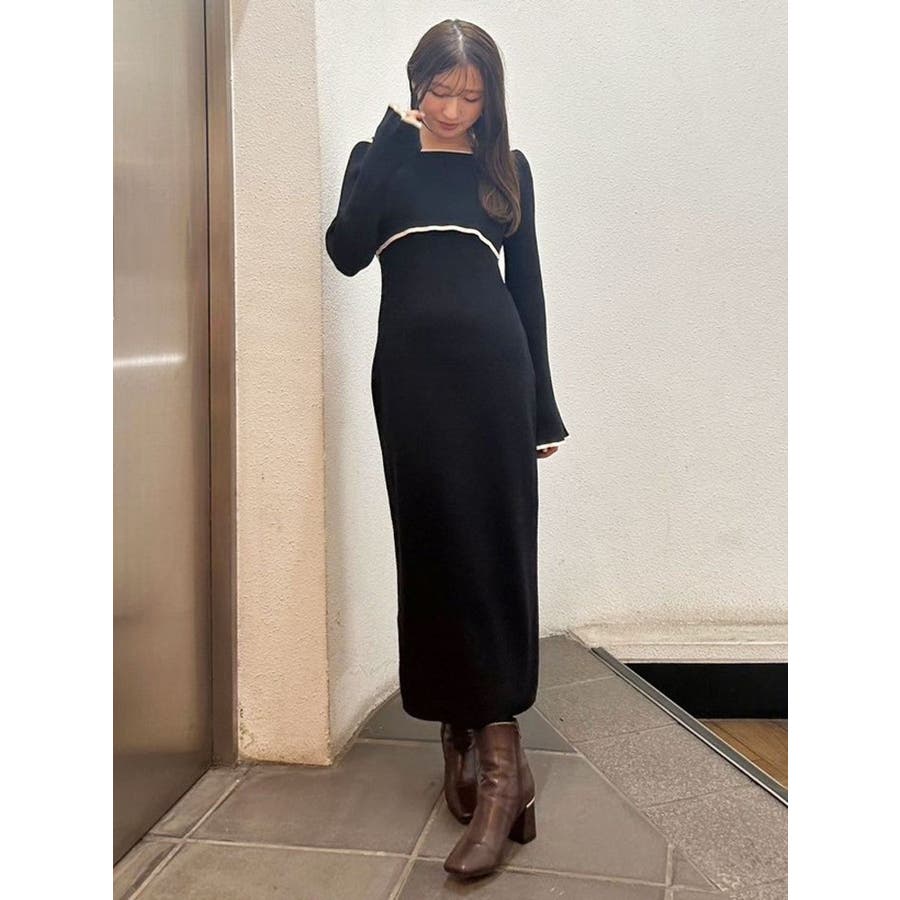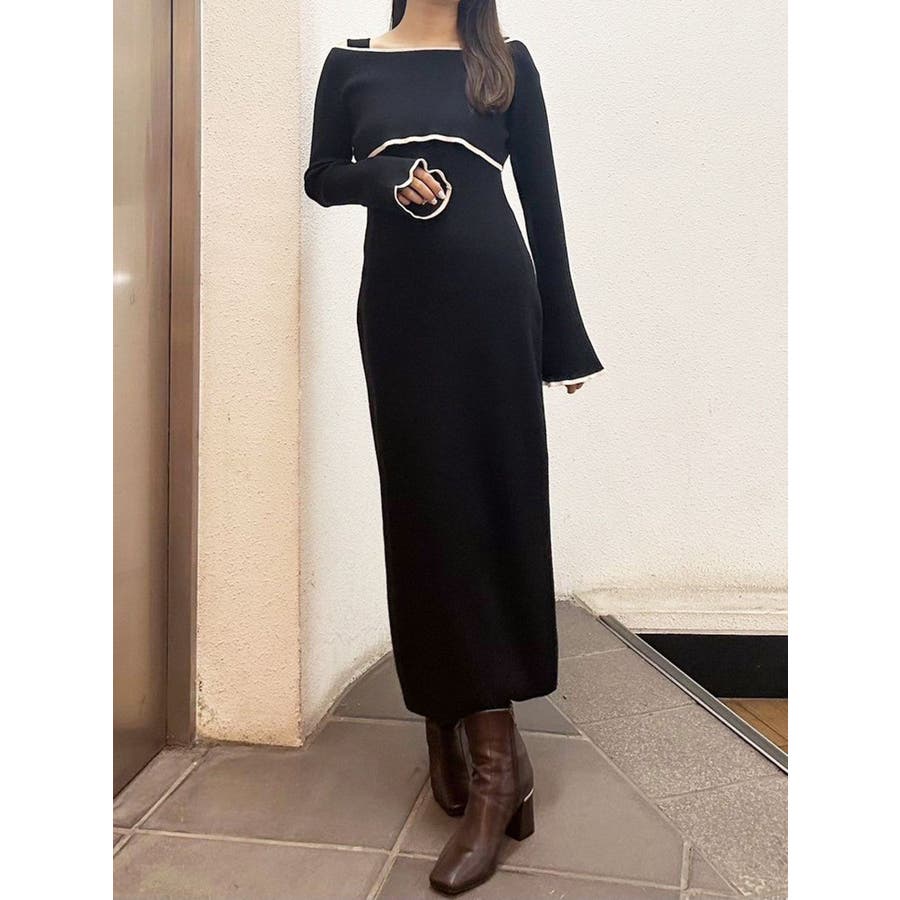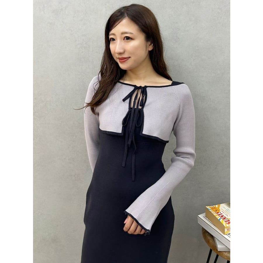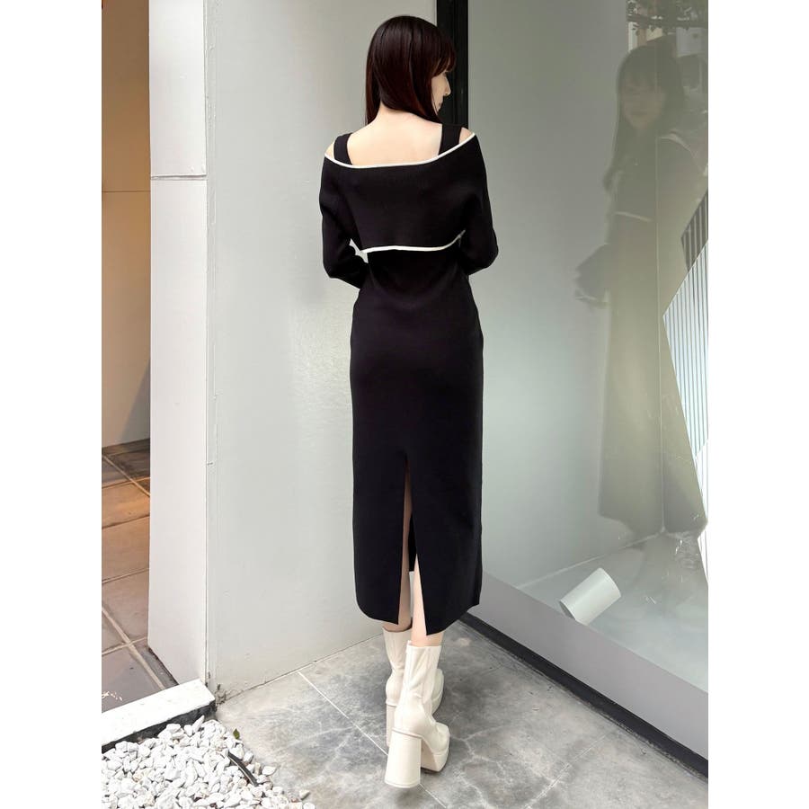 3WAY配色ストラップバッククロスロングスリーブワンピース