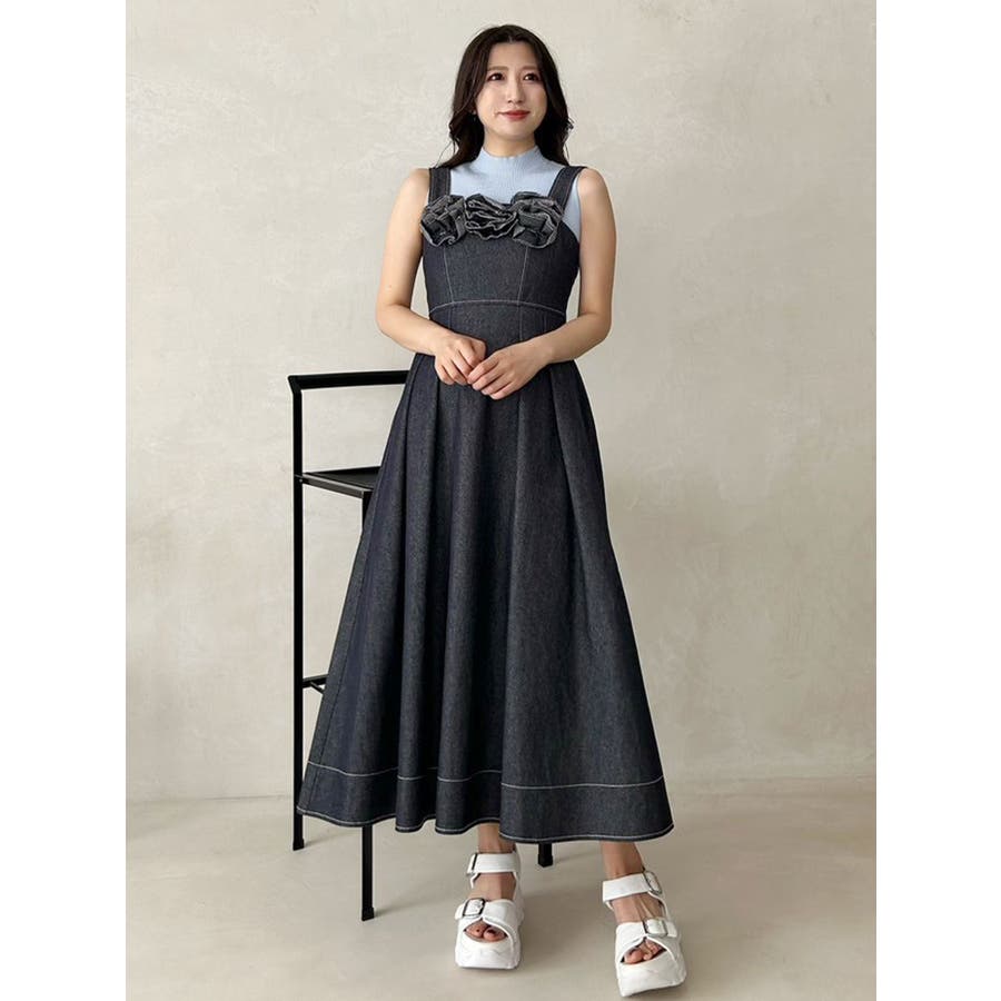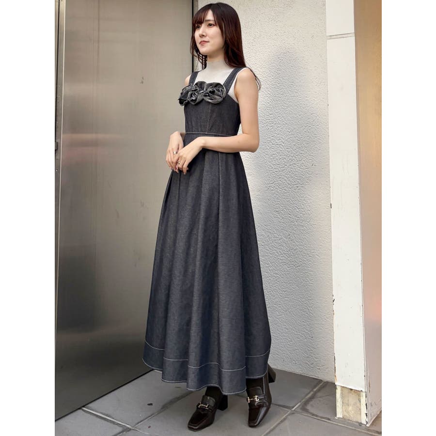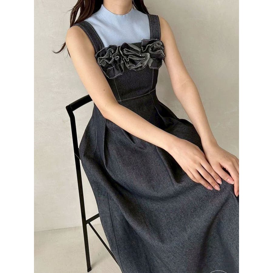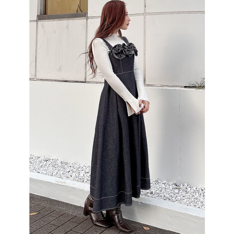 デニムフラワーモチーフジャンスカ