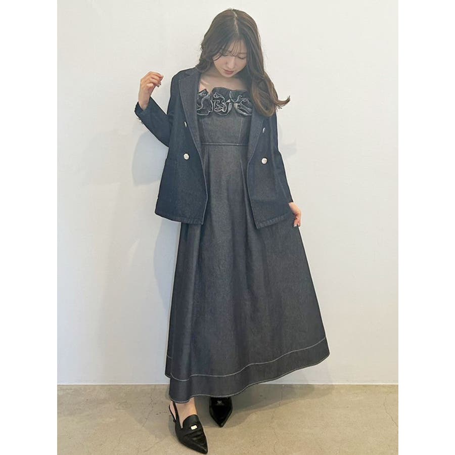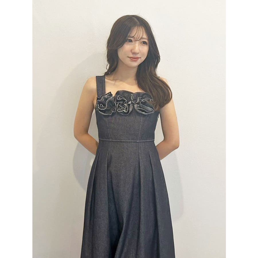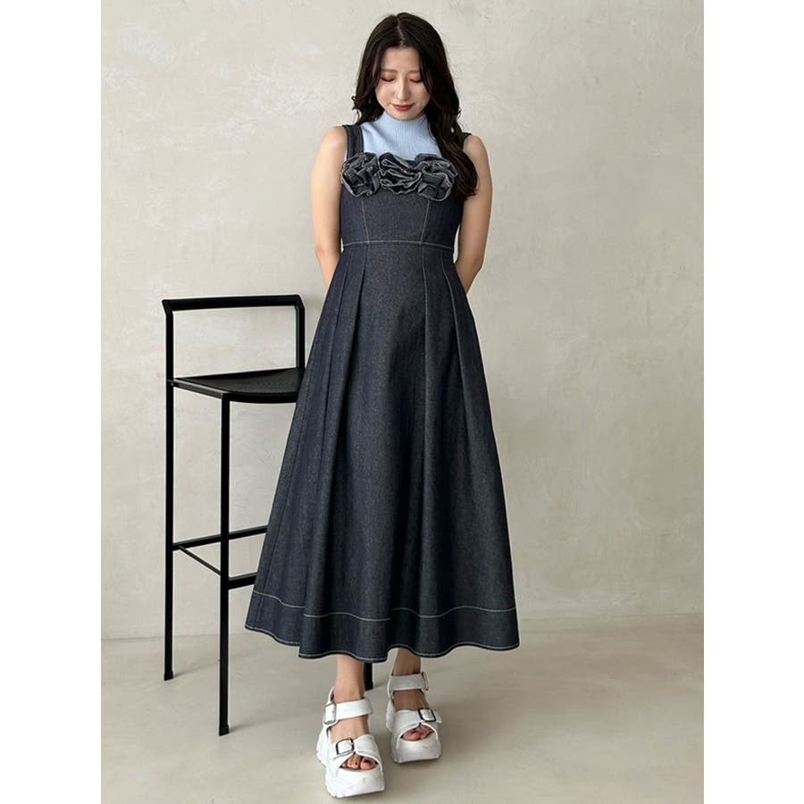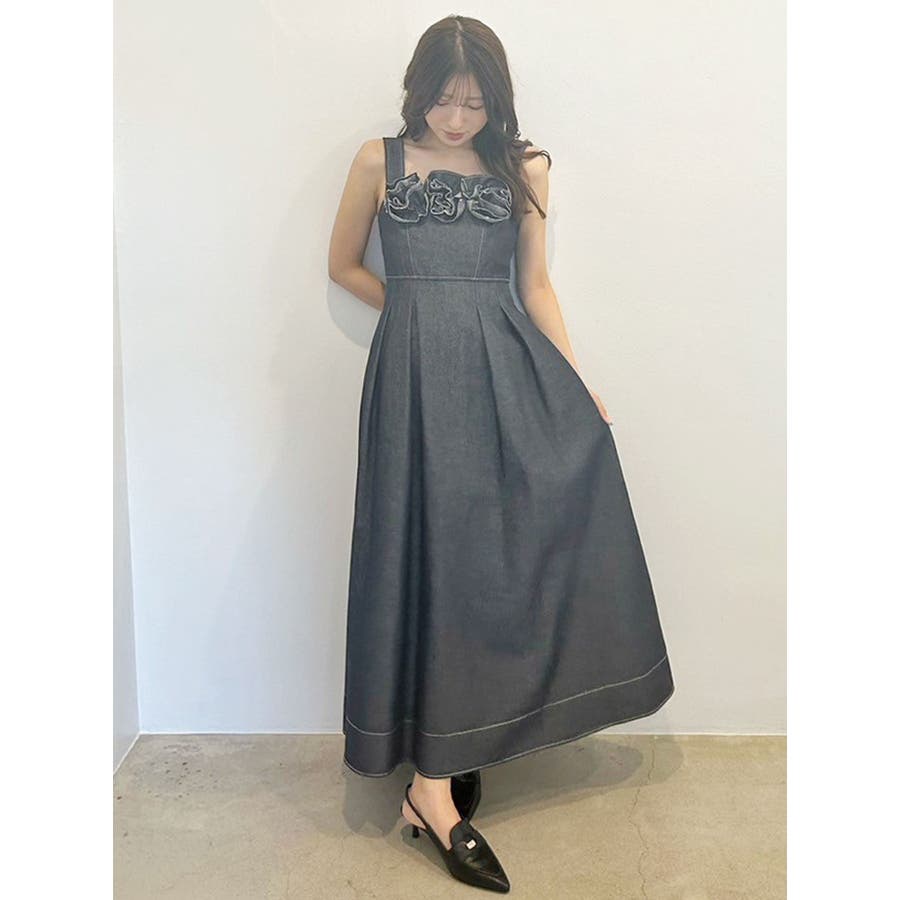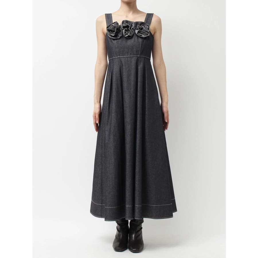 デニムフラワーモチーフジャンスカ