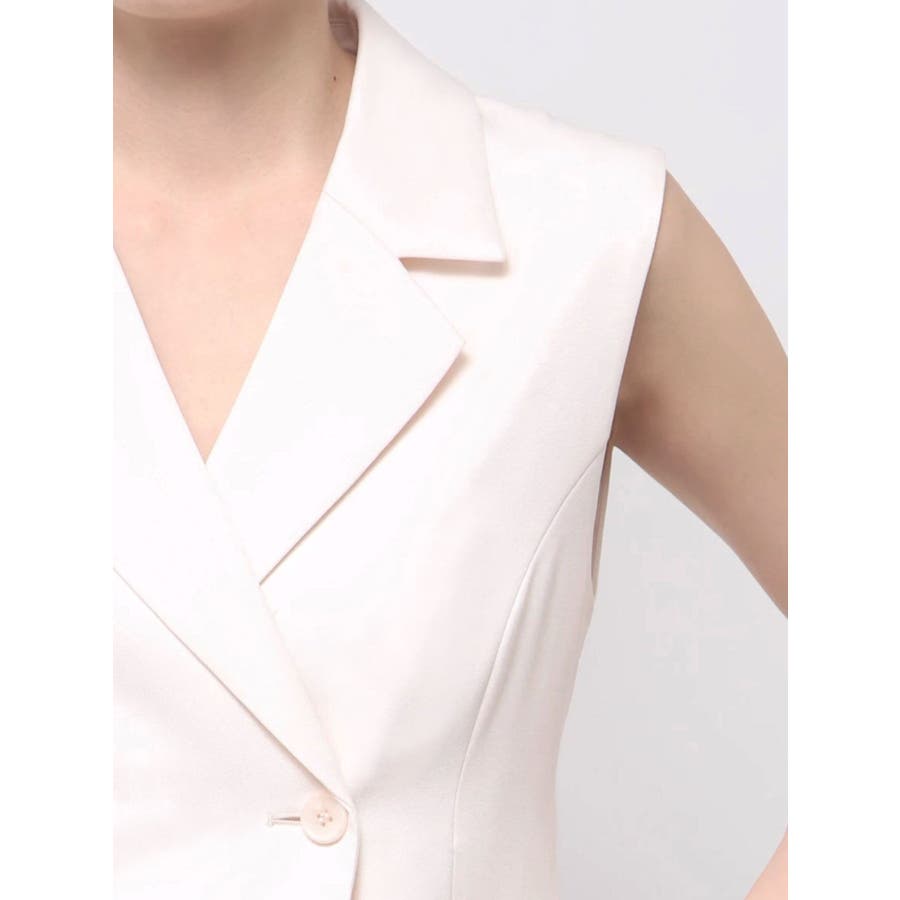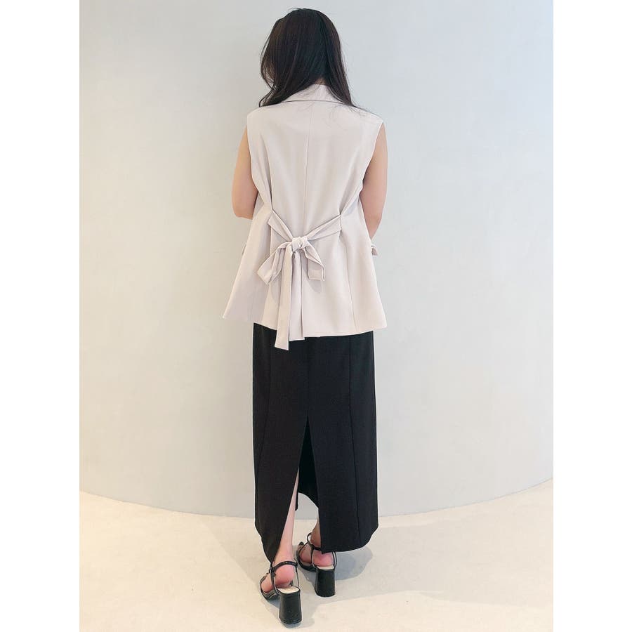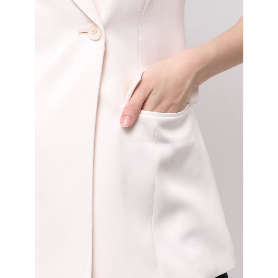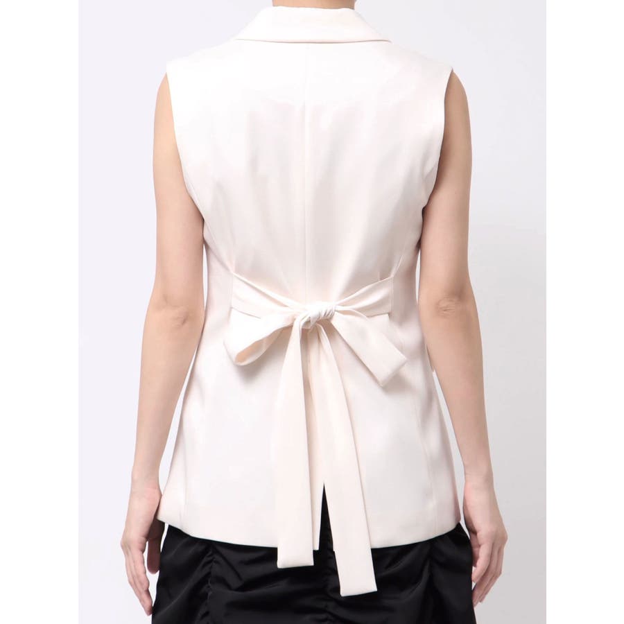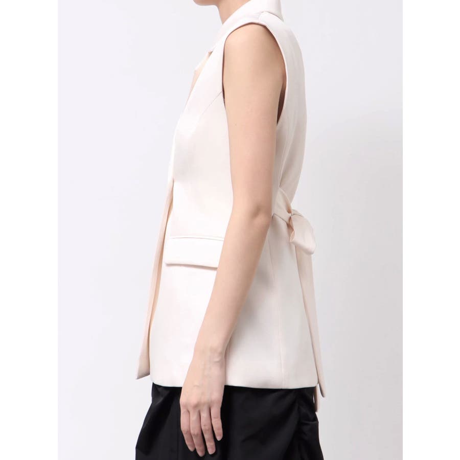 シンプルで大人っぽいデザインが魅力のジレ。 脇に挟み込まれたリボンがポイントで、フロントで結んで甘さをプラスしたり、後ろで結んでスッキリと仕上げたりと、アレンジが楽しめます。 程よくウエストが絞られているため、スタイルアップ効果も抜群。 1つボタンのミニマルなディテールが、洗練された印象を演出します。 ▼スタイリング フレアのワンピースやスカートと合わせれば、大人フェミニンな着こなしに。 デニムと合わせると、程よくカジュアルダウンしたこなれたスタイリングが完成します。 この夏、一枚プラスするだけでコーデを格上げしてくれる万能アイテムです。 ※詳細画像以外は全てサンプルです。 ※SM着丈差2cm ※アイボリーの色味はもっと薄くなり、少し黄味が入ったカラーになります。 ※着用画像はフラッシュの加減で実際の製品と色味等が異なる場合がございますので、生地のズームアップ画像をご確認ください。※ご利用の端末画面の設定により実際の商品と色味が異なる場合がございます。【商品特徴】透け感:なし伸縮性:なし生地の厚さ:普通サイズ感:普通裏地:ありポケット:あり(前)