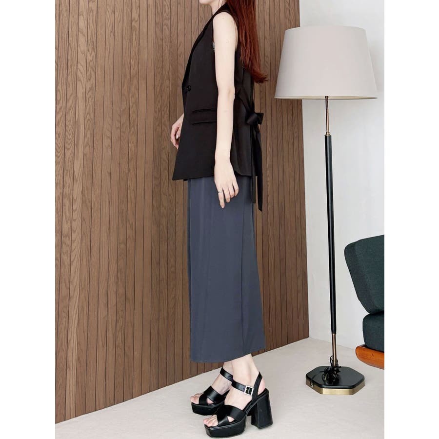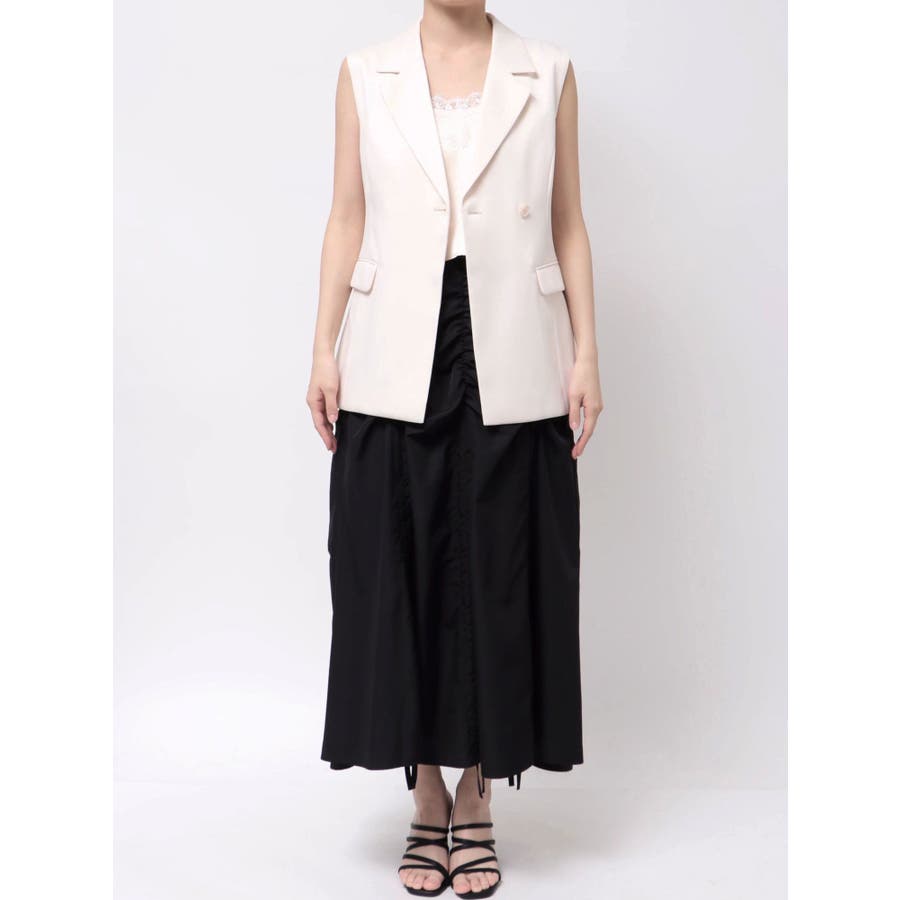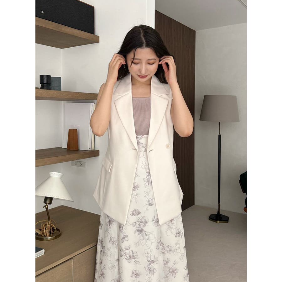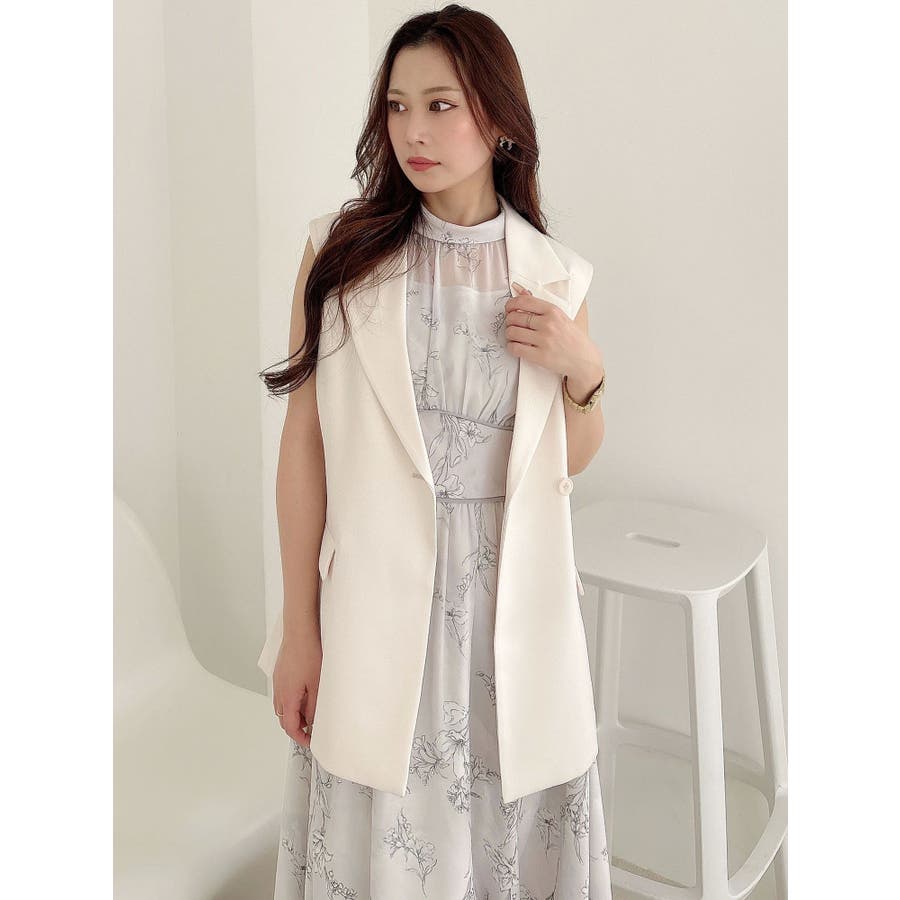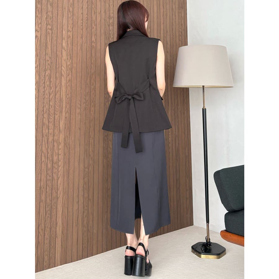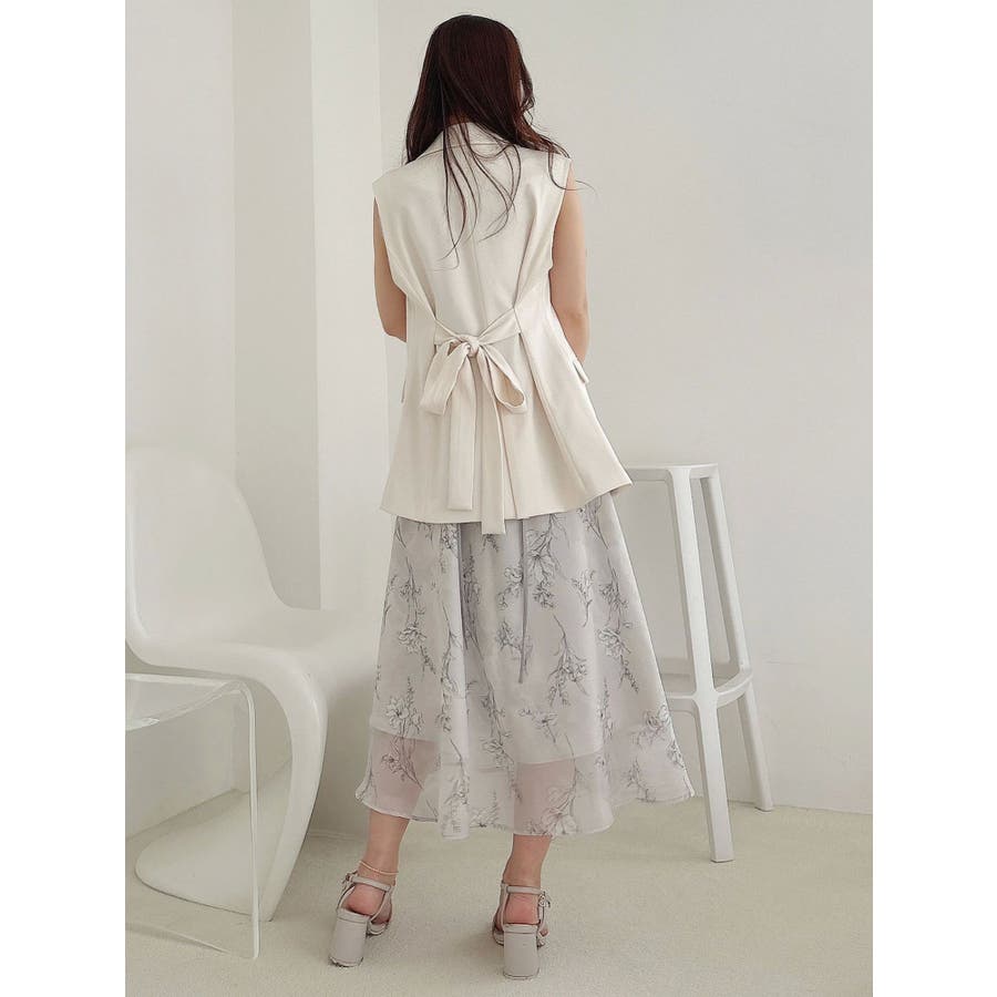シンプルで大人っぽいデザインが魅力のジレ。 脇に挟み込まれたリボンがポイントで、フロントで結んで甘さをプラスしたり、後ろで結んでスッキリと仕上げたりと、アレンジが楽しめます。 程よくウエストが絞られているため、スタイルアップ効果も抜群。 1つボタンのミニマルなディテールが、洗練された印象を演出します。 ▼スタイリング フレアのワンピースやスカートと合わせれば、大人フェミニンな着こなしに。 デニムと合わせると、程よくカジュアルダウンしたこなれたスタイリングが完成します。 この夏、一枚プラスするだけでコーデを格上げしてくれる万能アイテムです。 ※詳細画像以外は全てサンプルです。 ※SM着丈差2cm ※アイボリーの色味はもっと薄くなり、少し黄味が入ったカラーになります。 ※着用画像はフラッシュの加減で実際の製品と色味等が異なる場合がございますので、生地のズームアップ画像をご確認ください。※ご利用の端末画面の設定により実際の商品と色味が異なる場合がございます。【商品特徴】透け感:なし伸縮性:なし生地の厚さ:普通サイズ感:普通裏地:ありポケット:あり(前)