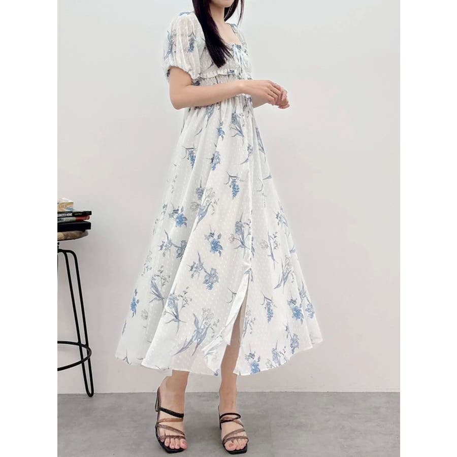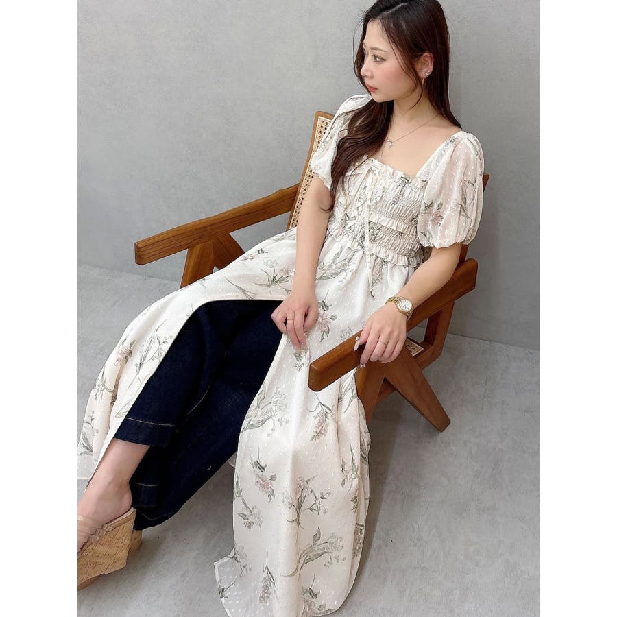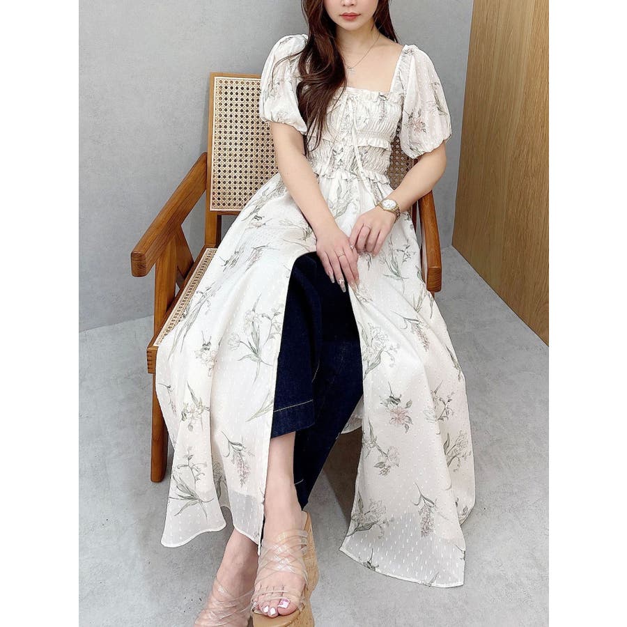 ボタニカルフラワー2WAYシャーリングワンピース