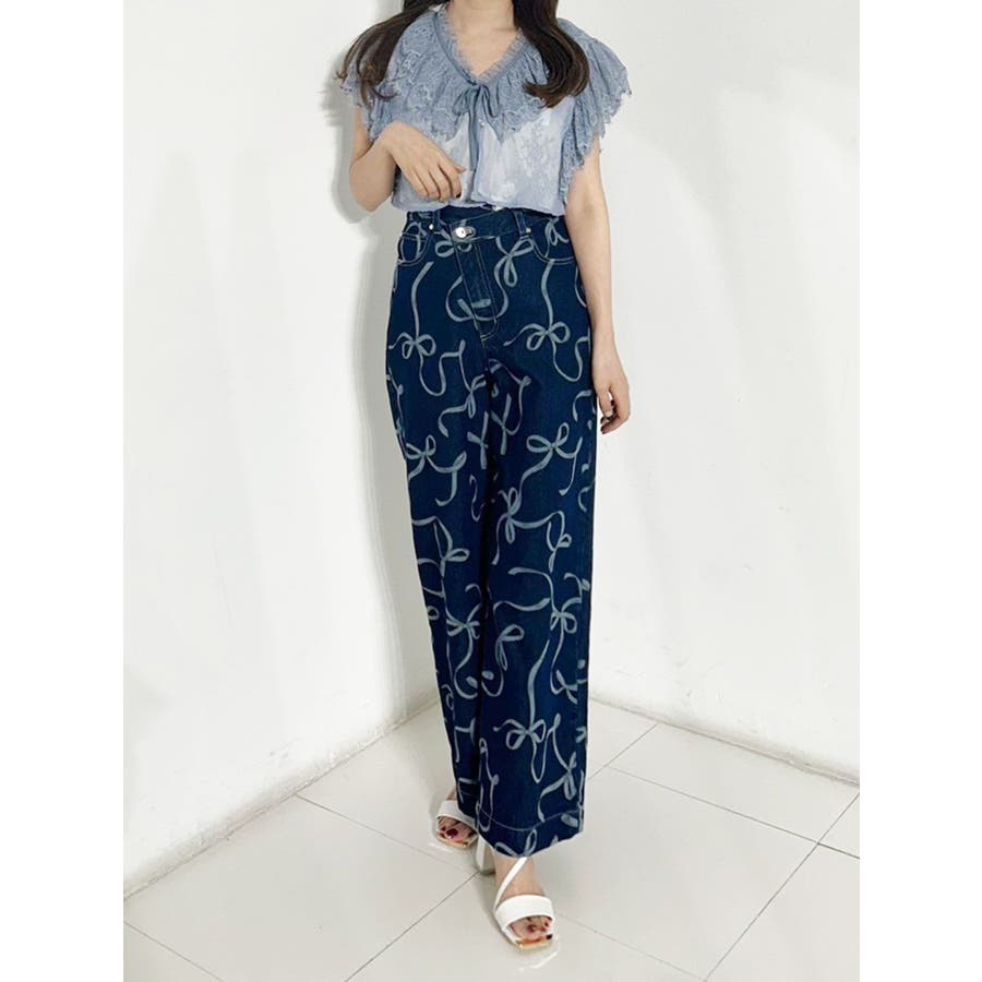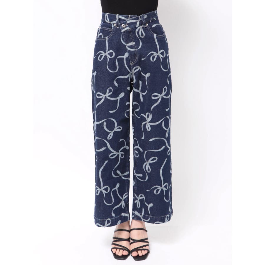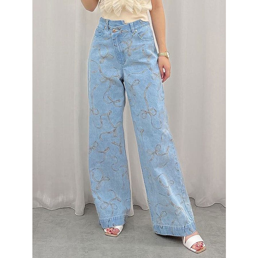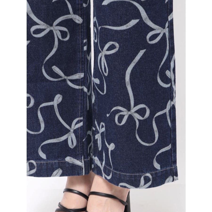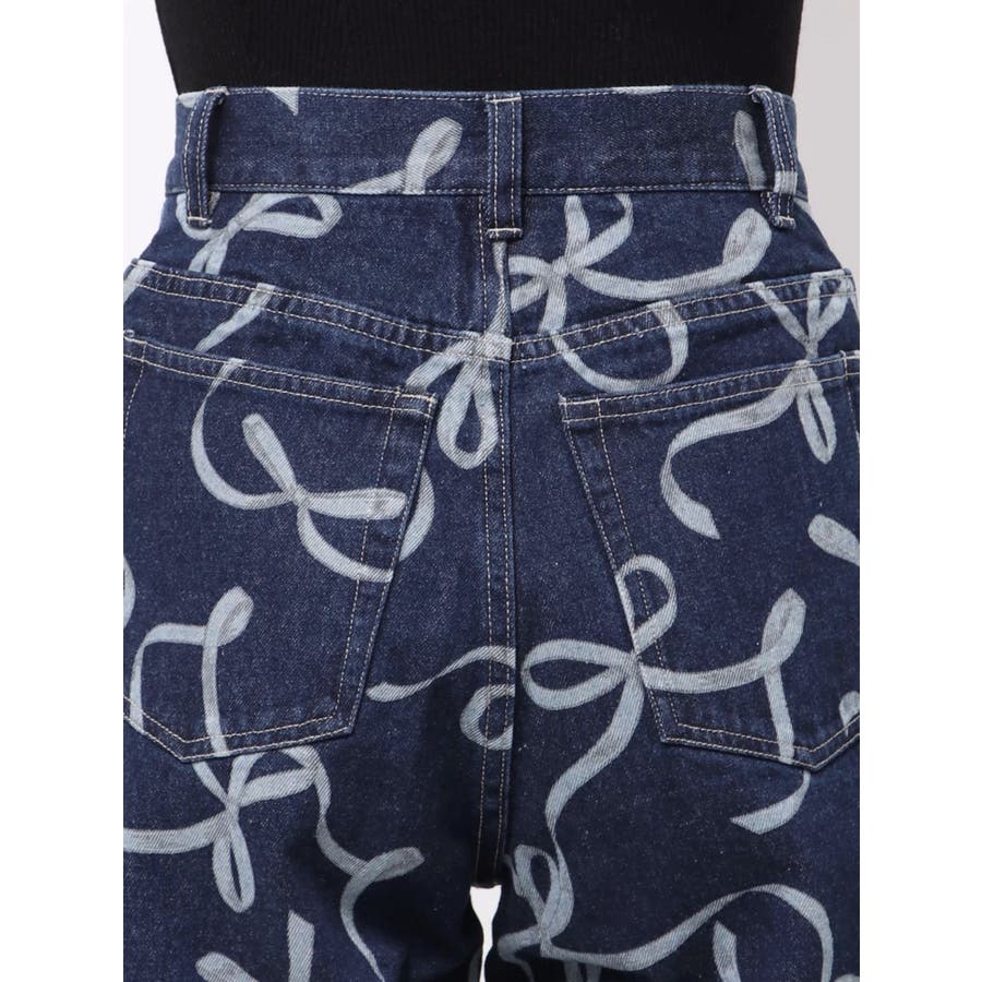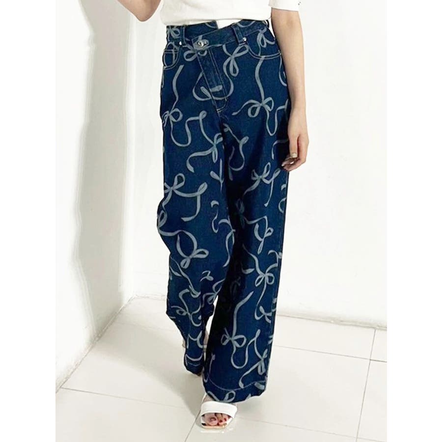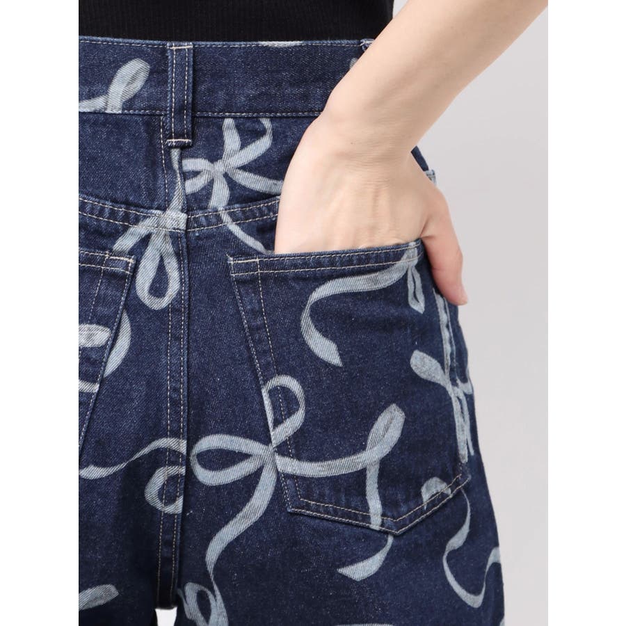 リボンプリントデニムパンツ