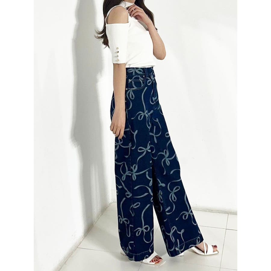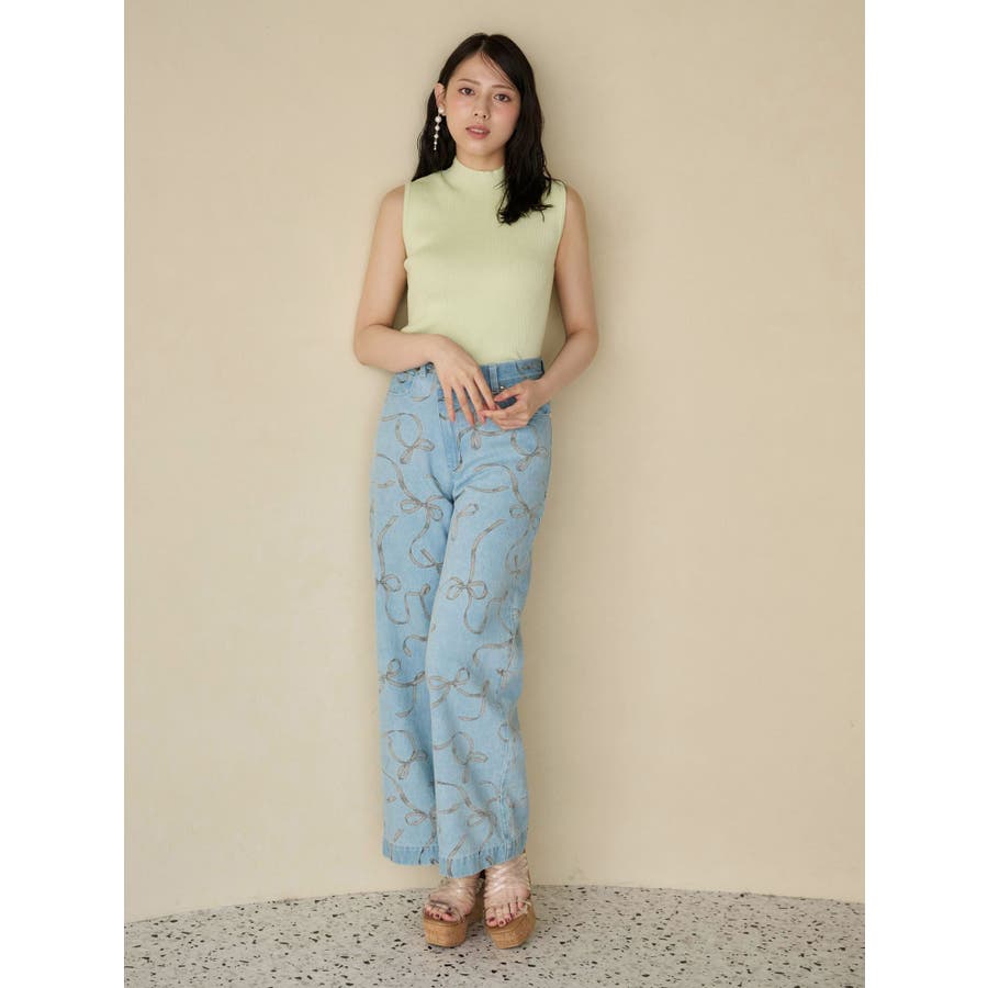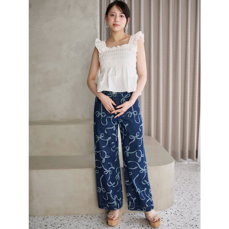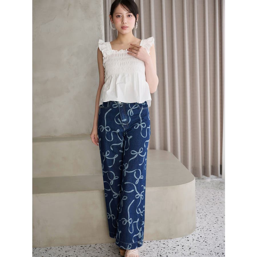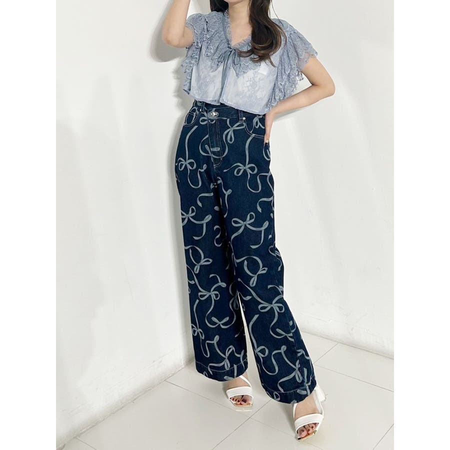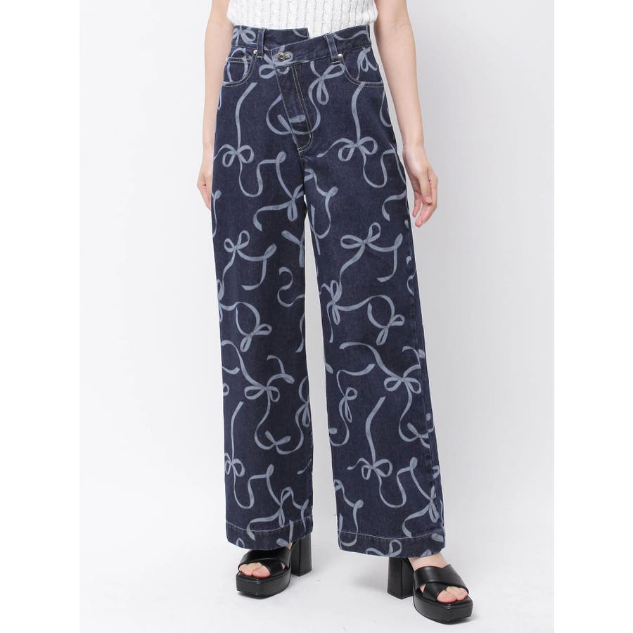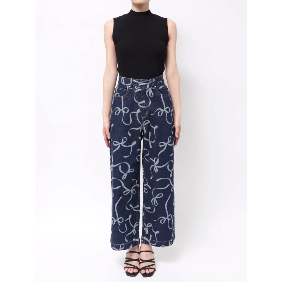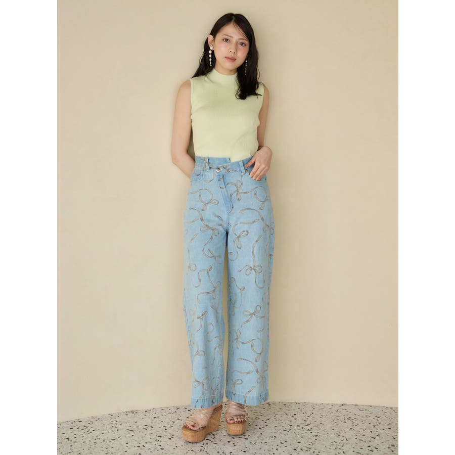 リボンプリントデニムパンツ