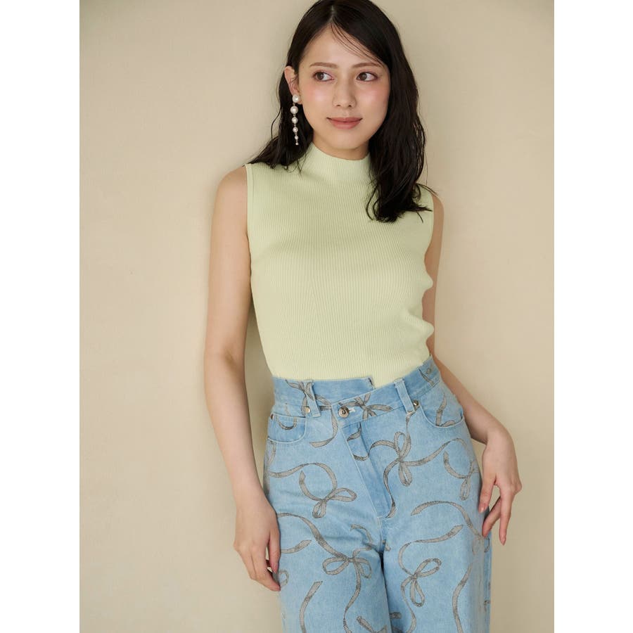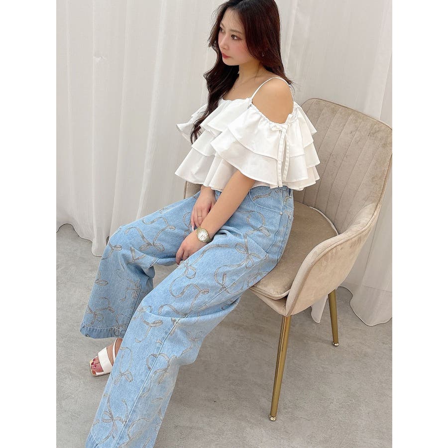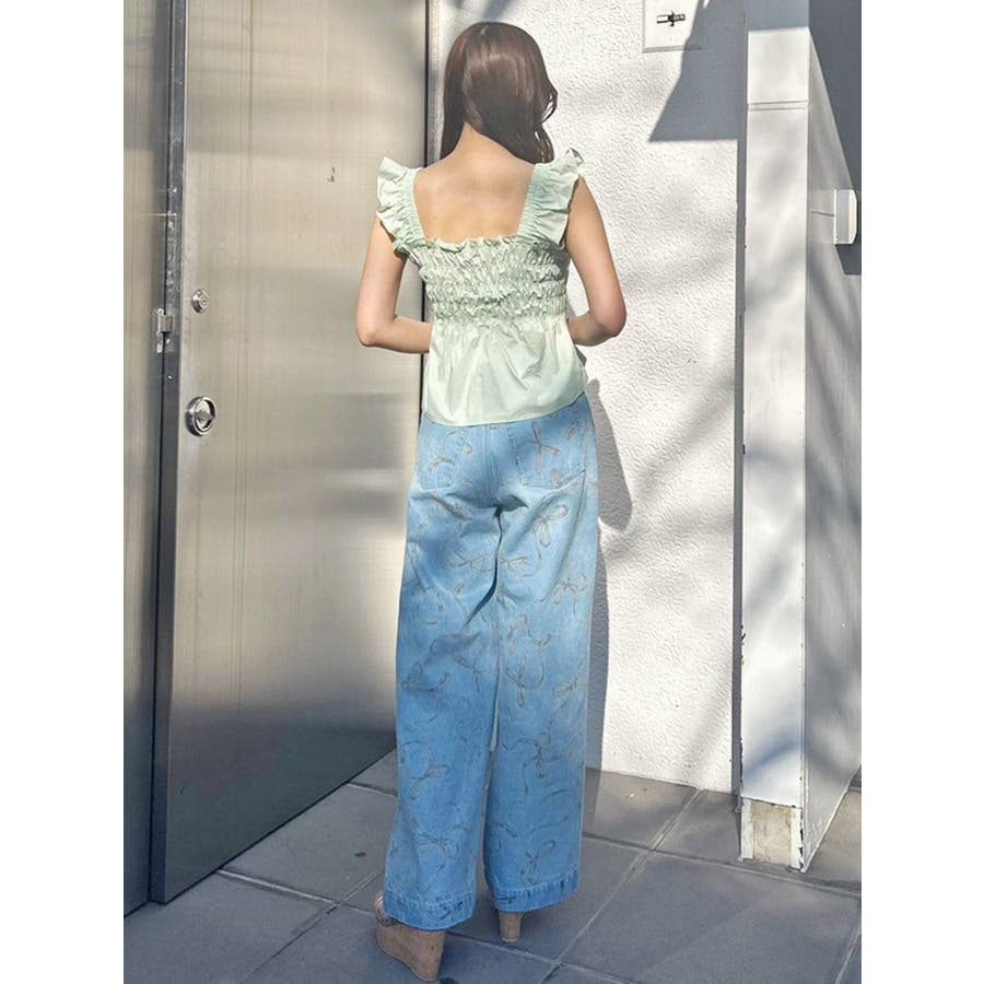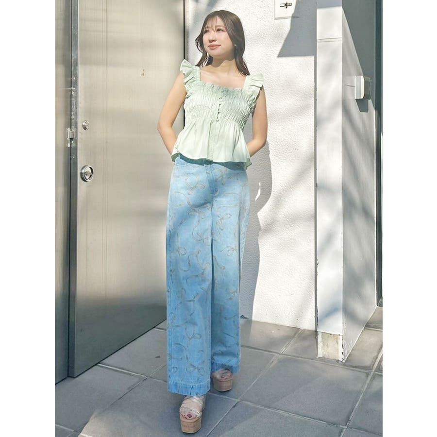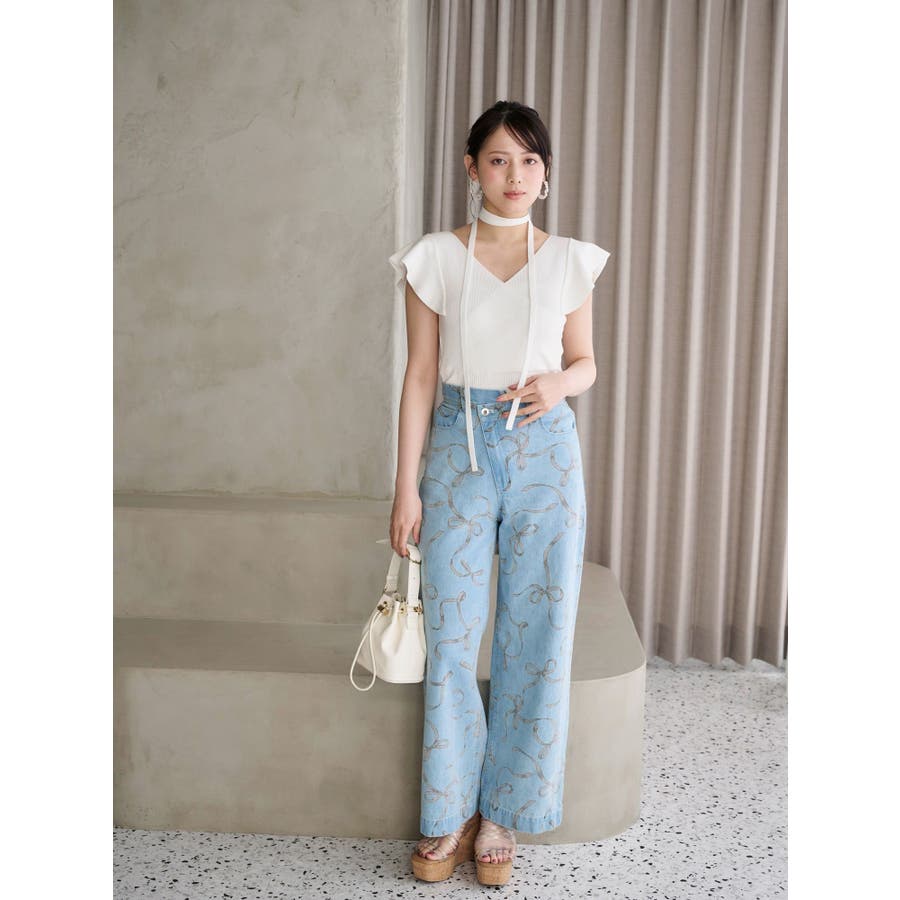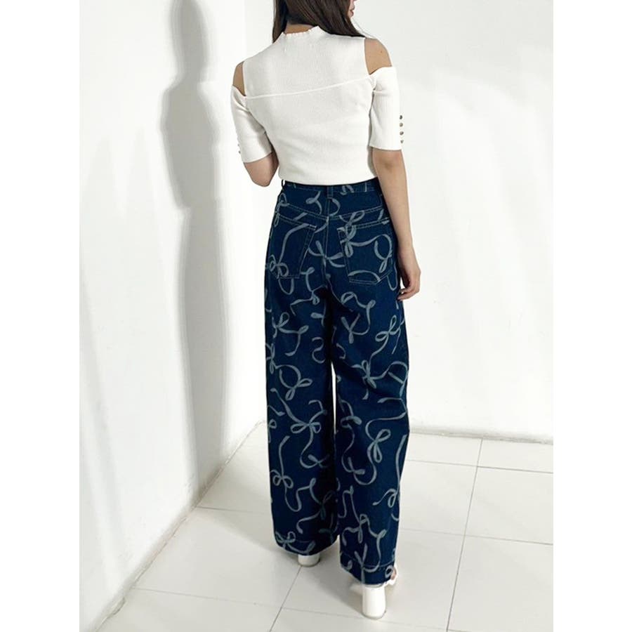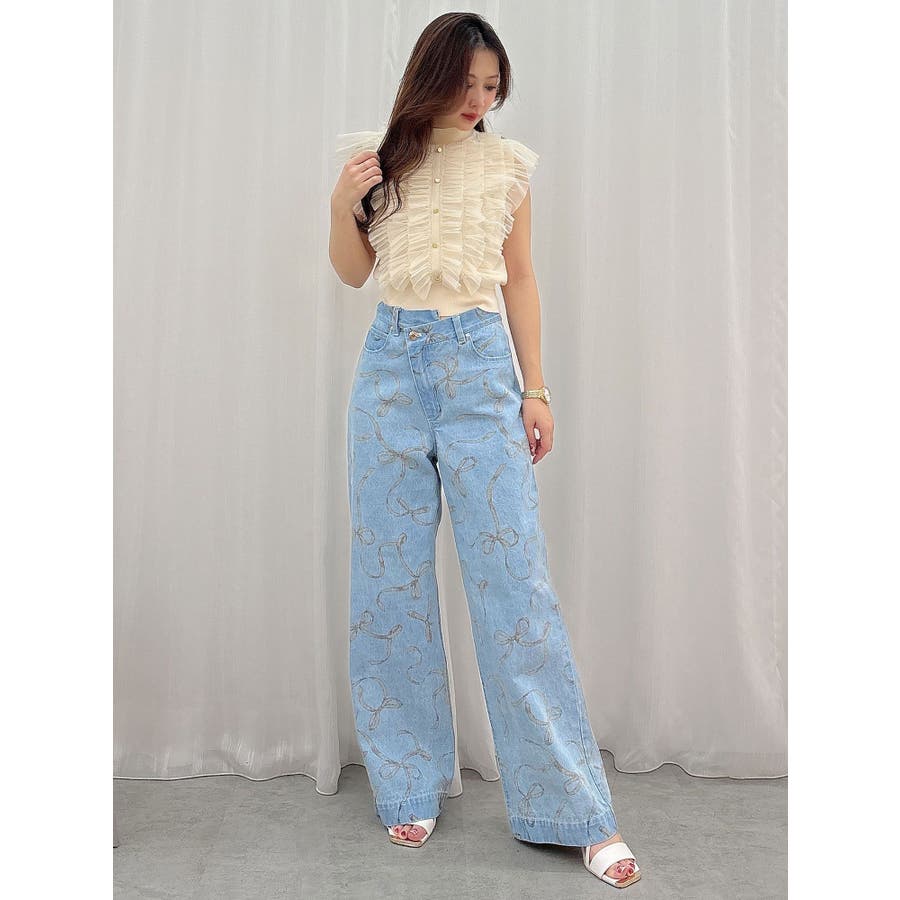 リボンプリントデニムパンツ