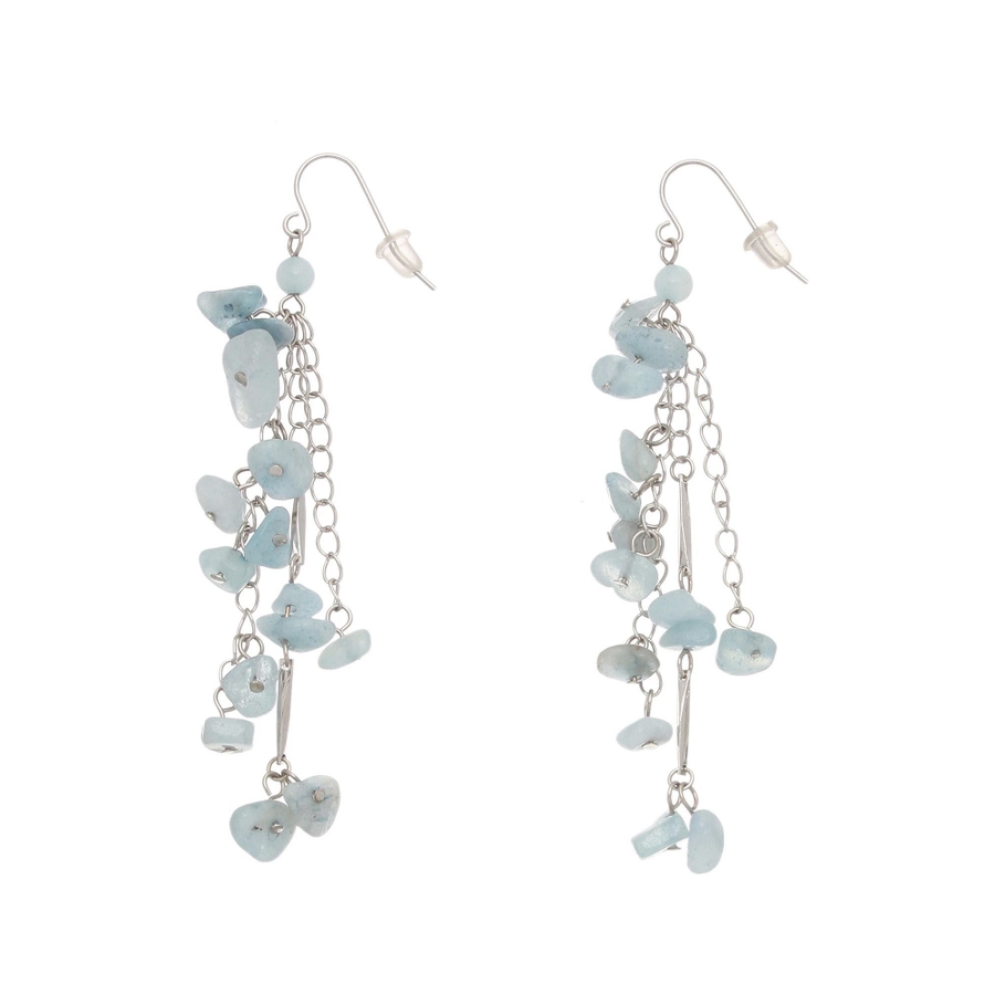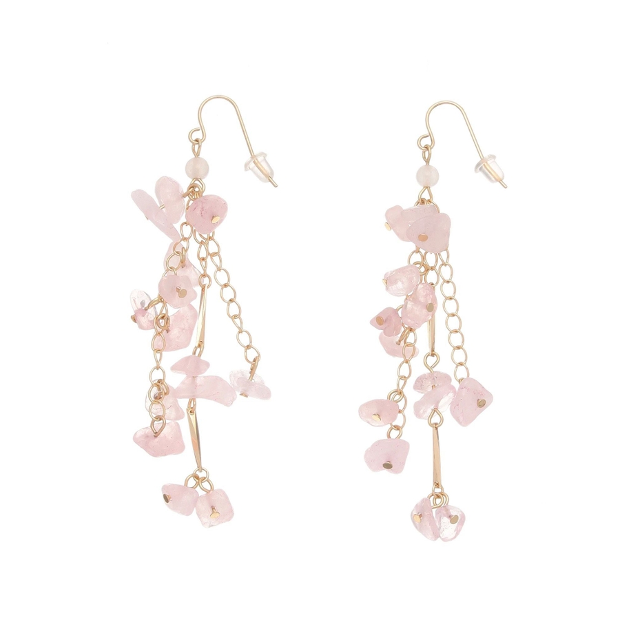 天然石とメタルパーツを組み合わせた今年らしいピアスです。 ひねりのあるメタルバーと組み合わせることで、天然石を使いつつもナチュラルすぎず女性らしい雰囲気にしました。 フープピアスなので、より揺れ感を演出してくれます。 ※天然石を使用しています。 そのため石は一つ一つサイズと色の出方が異なります。