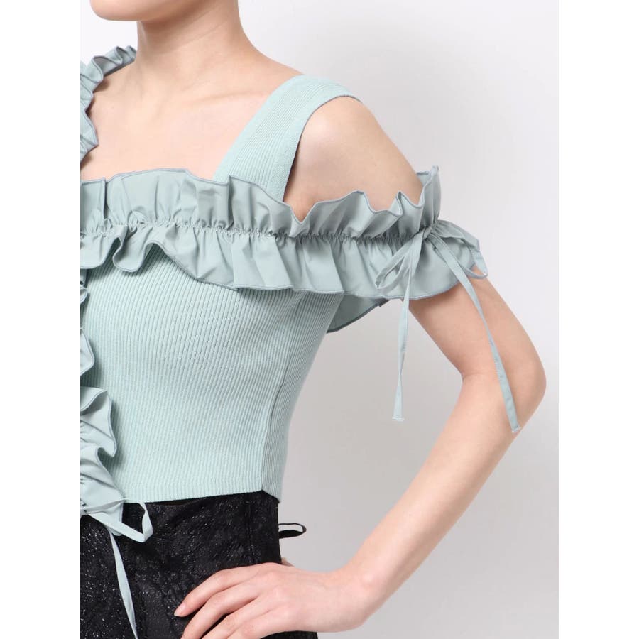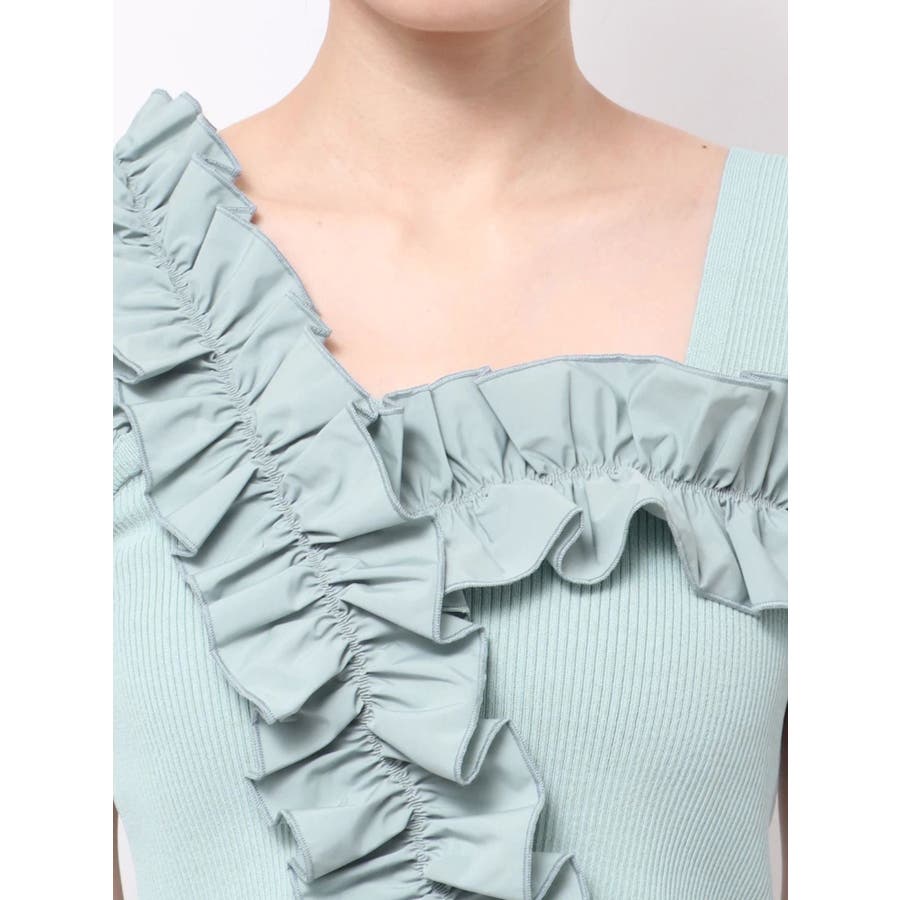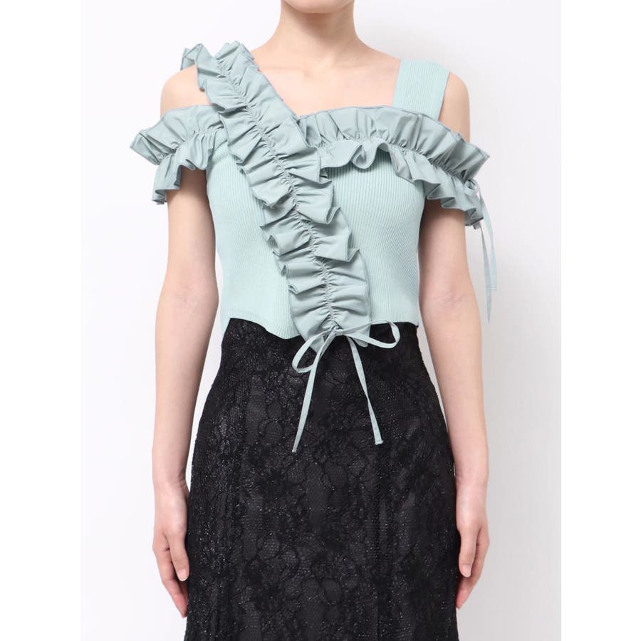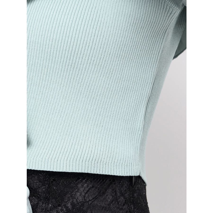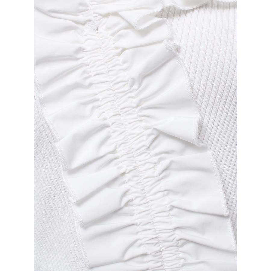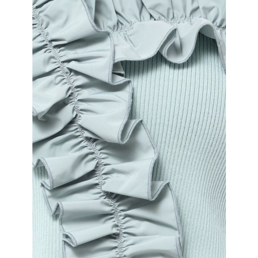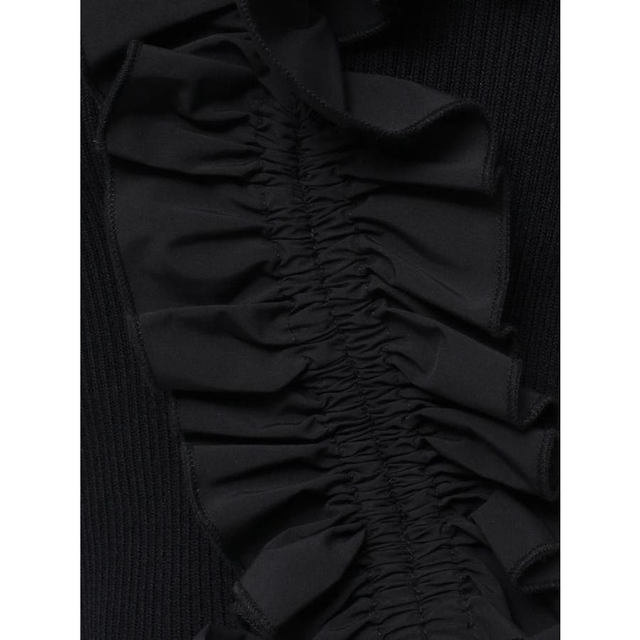 異素材シャーリングフリルニット