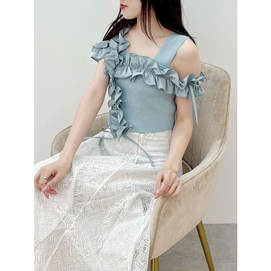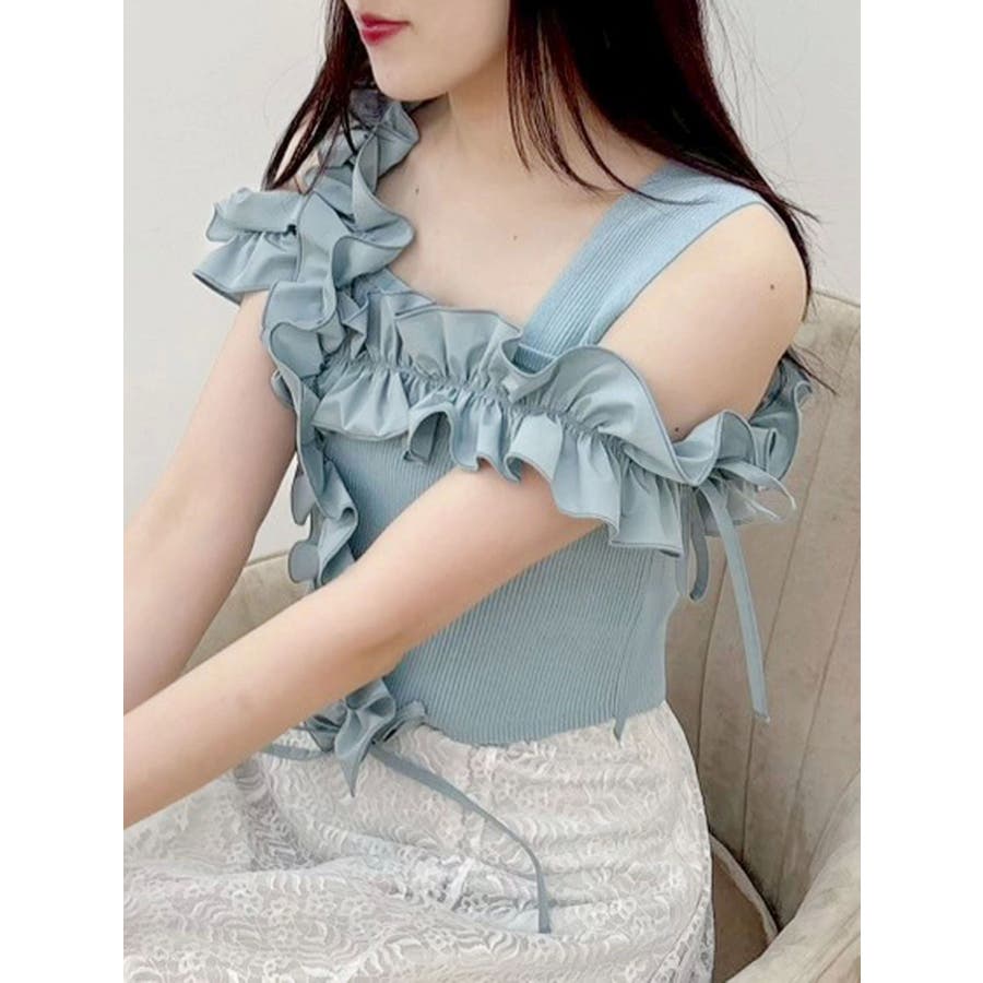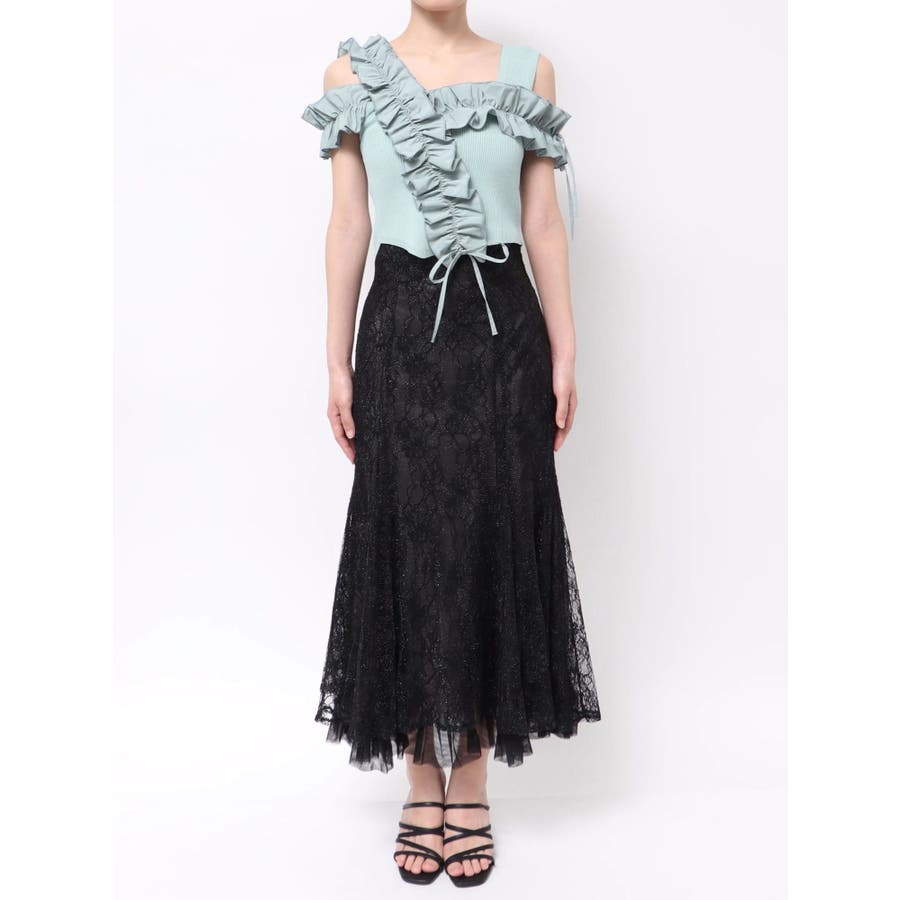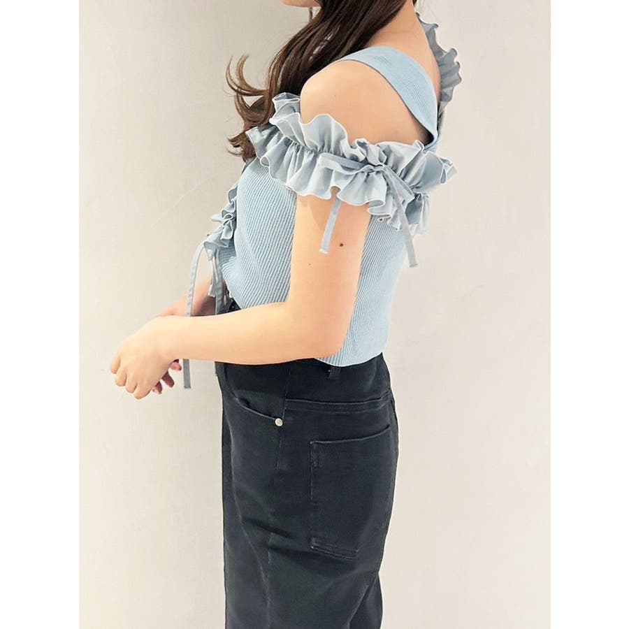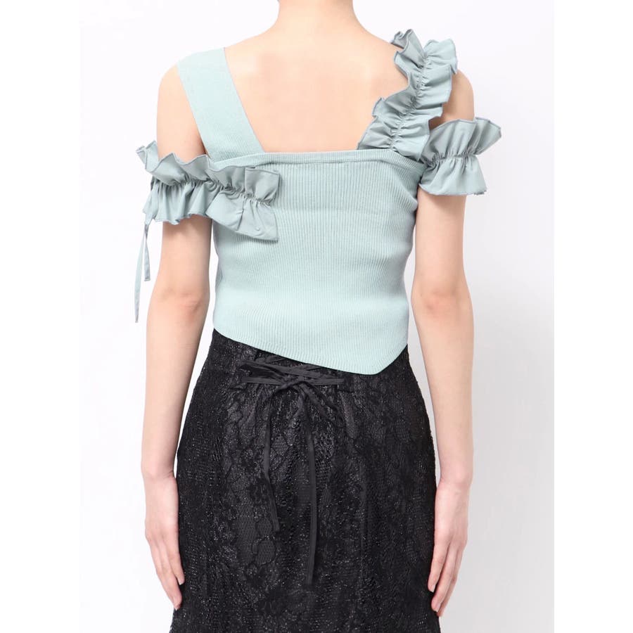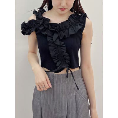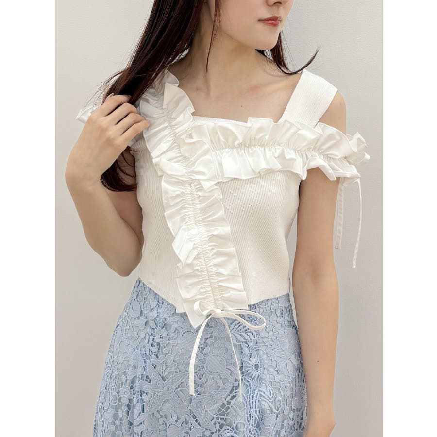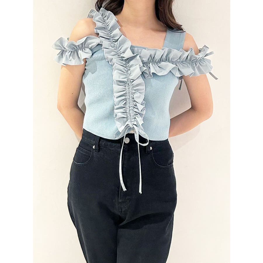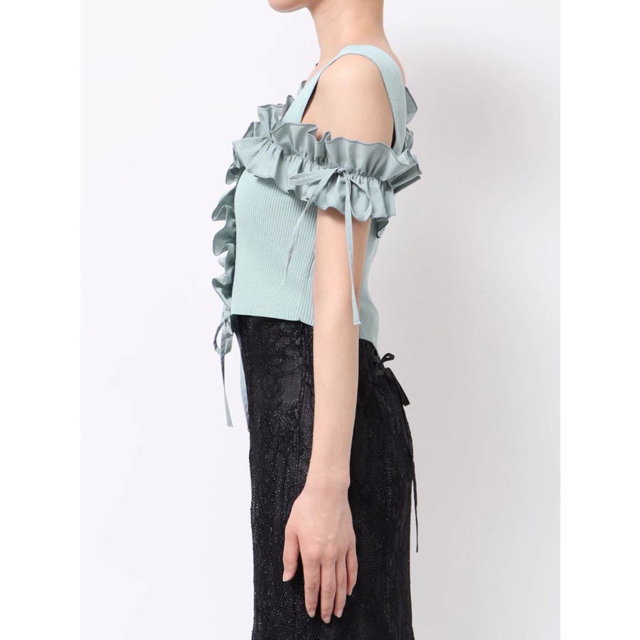 異素材シャーリングフリルニット
