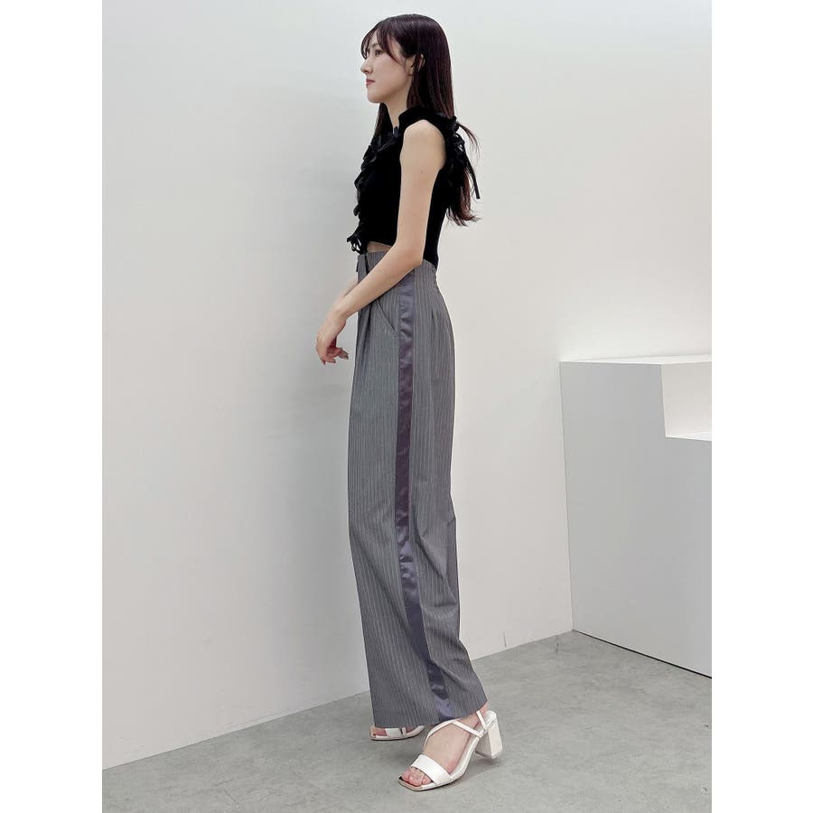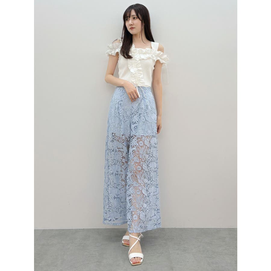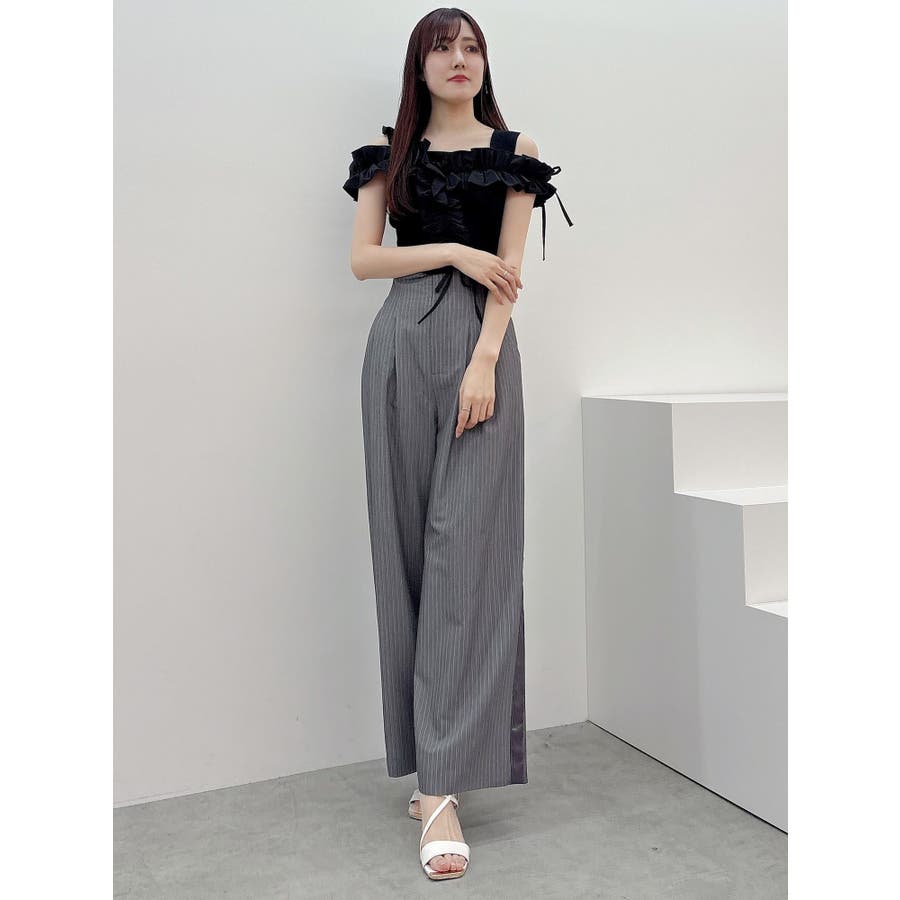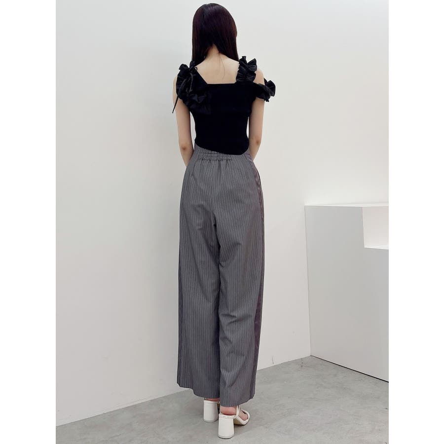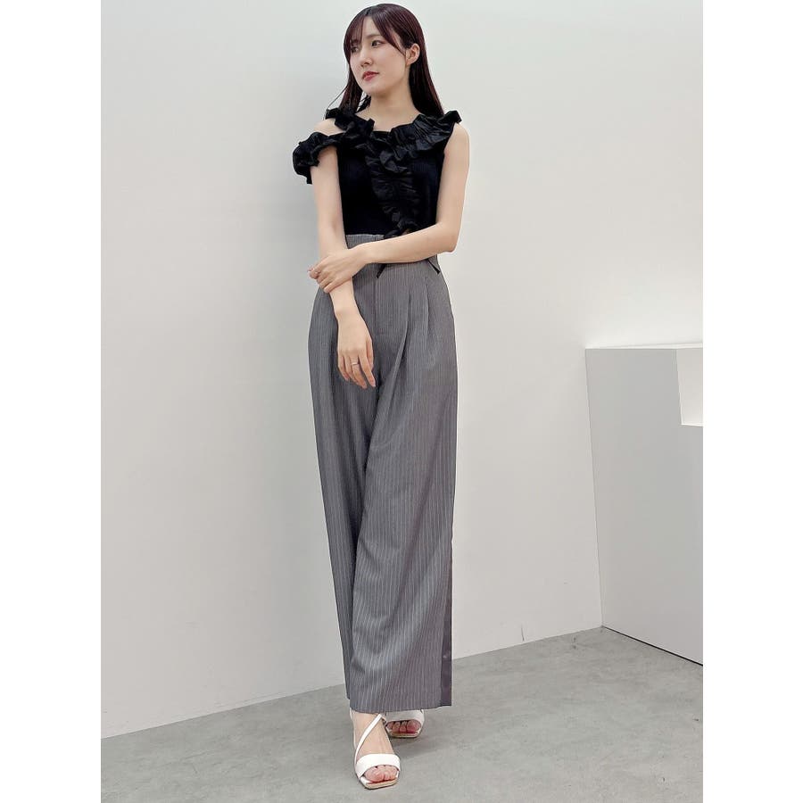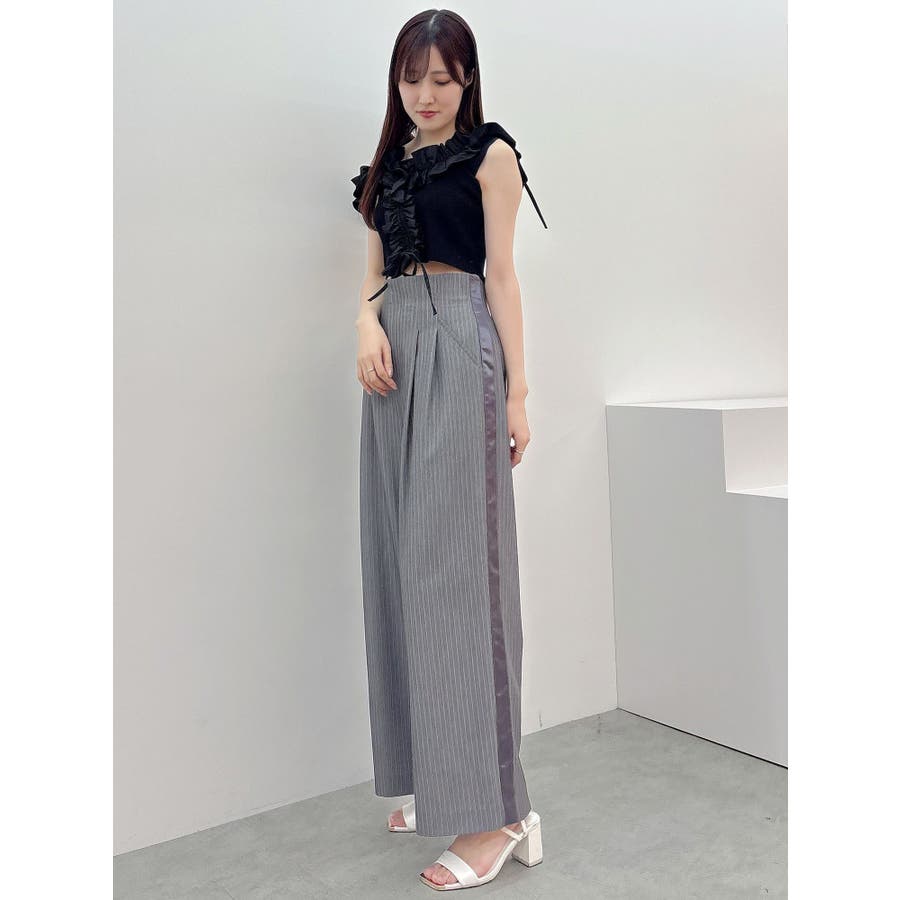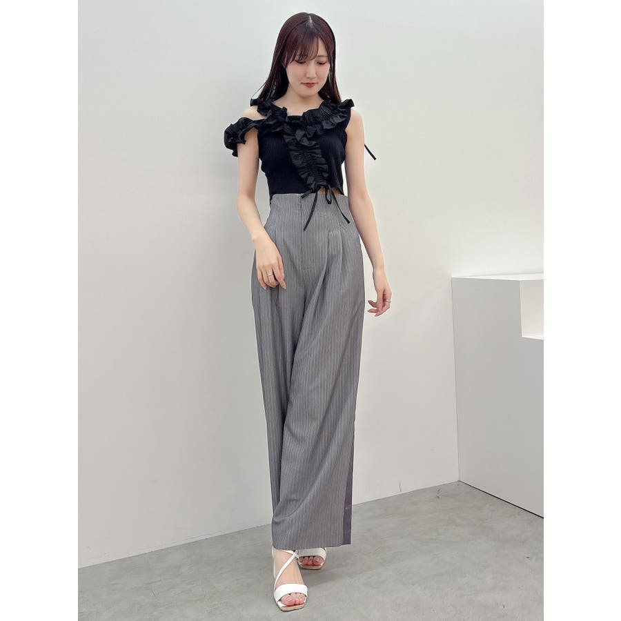異素材シャーリングフリルニット
