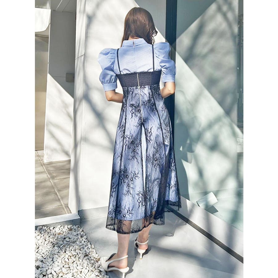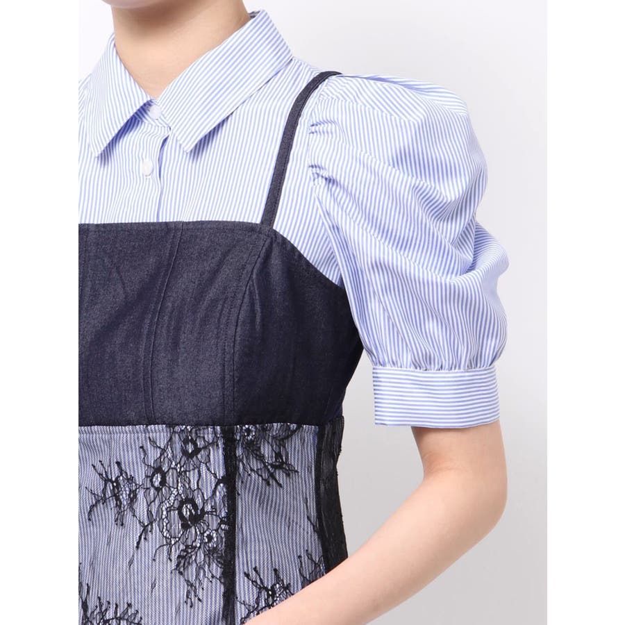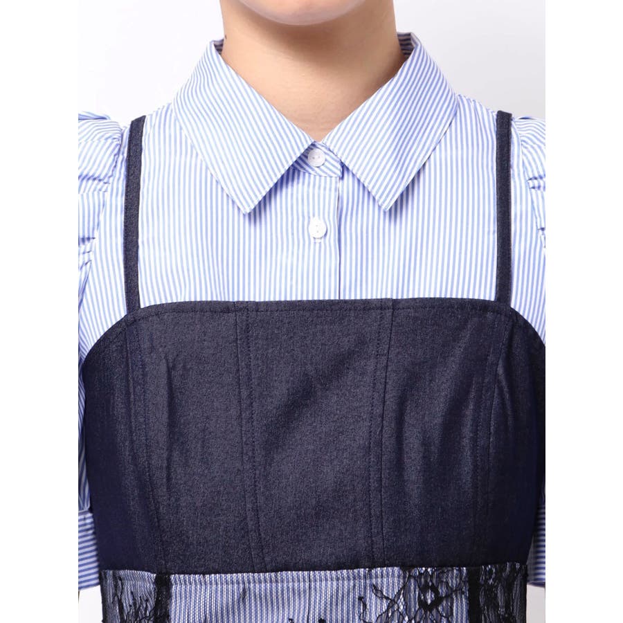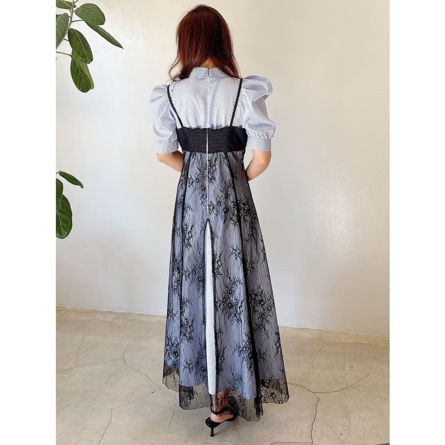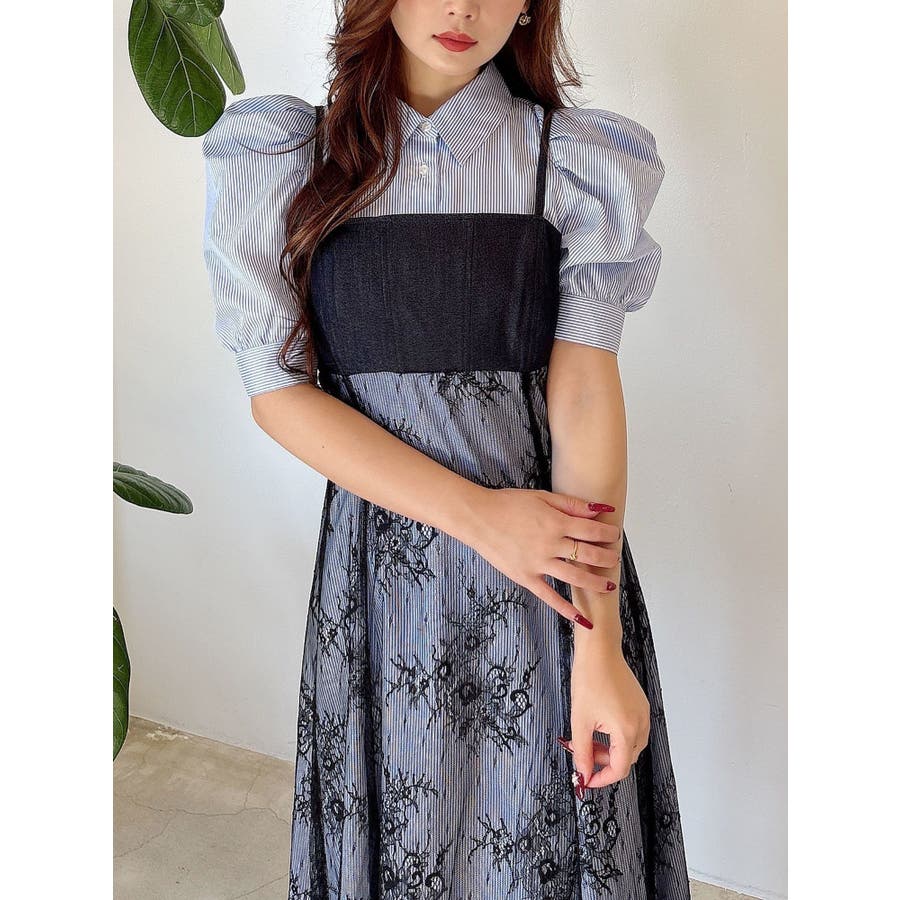 素材 | [オフホワイト]表地 無地部分:ポリエステル96% ポリウレタン4% ビスチェ:ポリエステル73% レーヨン22% ポリウレタン5% チュール:ナイロン100% 裏地:ポリエステル81% 綿19%[アイスブルー/ネイビー]表地 ストライプ部分:ポリエステル86% レーヨン14% ビスチェ:ポリエステル73% レーヨン22% ポリウレタン5% チュール:ナイロン100% 裏地:ポリエステル81% 綿19% |