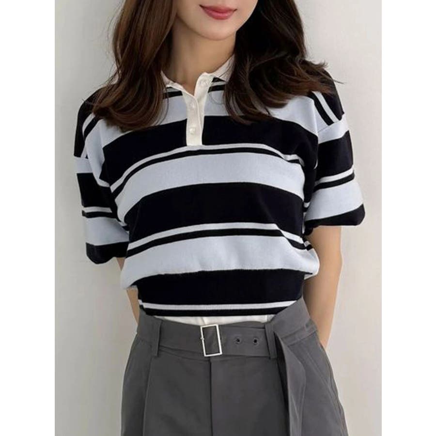 ふわっとしたフォルムが特徴のラガーニットです。カジュアルになりがちなラガーアイテムをニット素材とキレイ目な色にすることで女性らしい仕上がりにしました。クリアボタンが夏らしさを盛り上げてくれます。 ▼スタイリングナロースカートやデニムパンツ合わせがおすすめです。 ※袖リブ部分の配色ラインはなくなります。※詳細画像が正規の商品となります。※着用画像はフラッシュの加減で実際の製品と色味等が異なる場合がございますので、生地のズームアップ画像をご確認ください。※ご利用の端末画面の設定により実際の商品と色味が異なる場合がございます。【商品特徴】透け感:なし伸縮性:あり生地の厚さ:普通サイズ感:普通裏地:なしポケット:なし