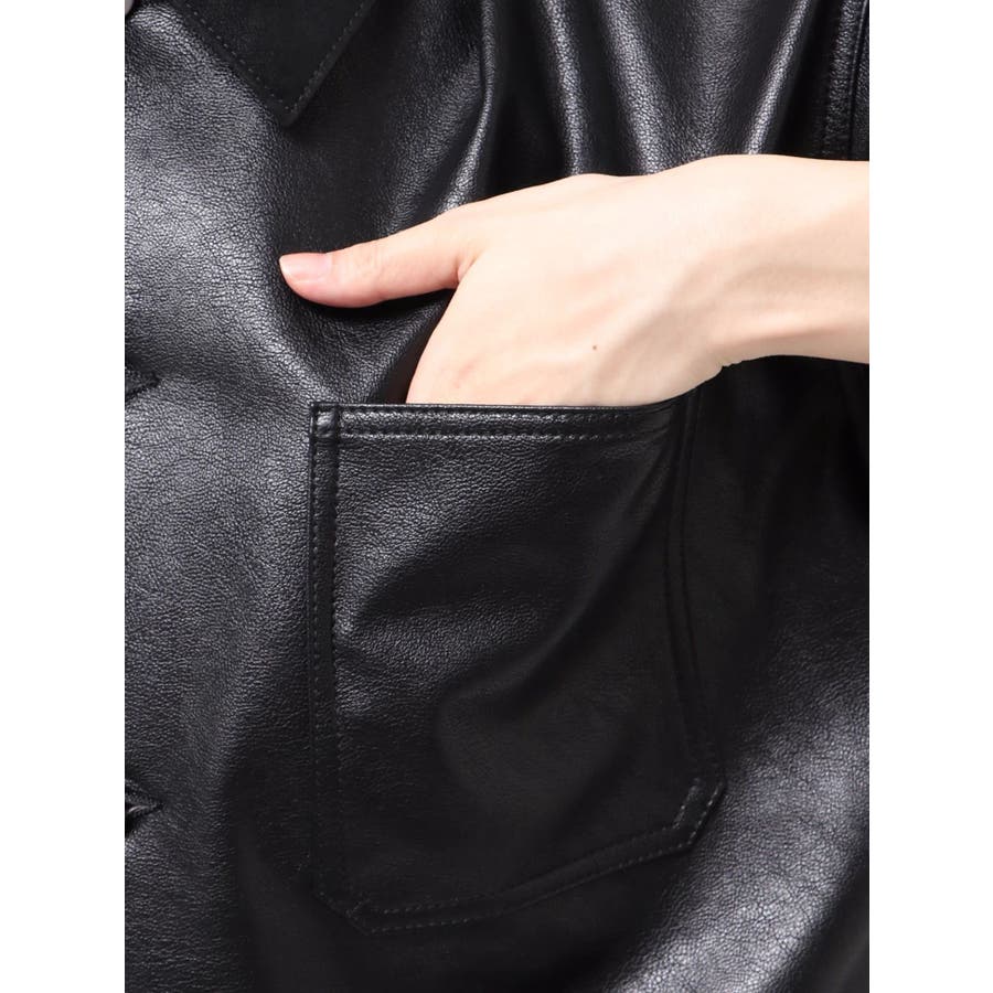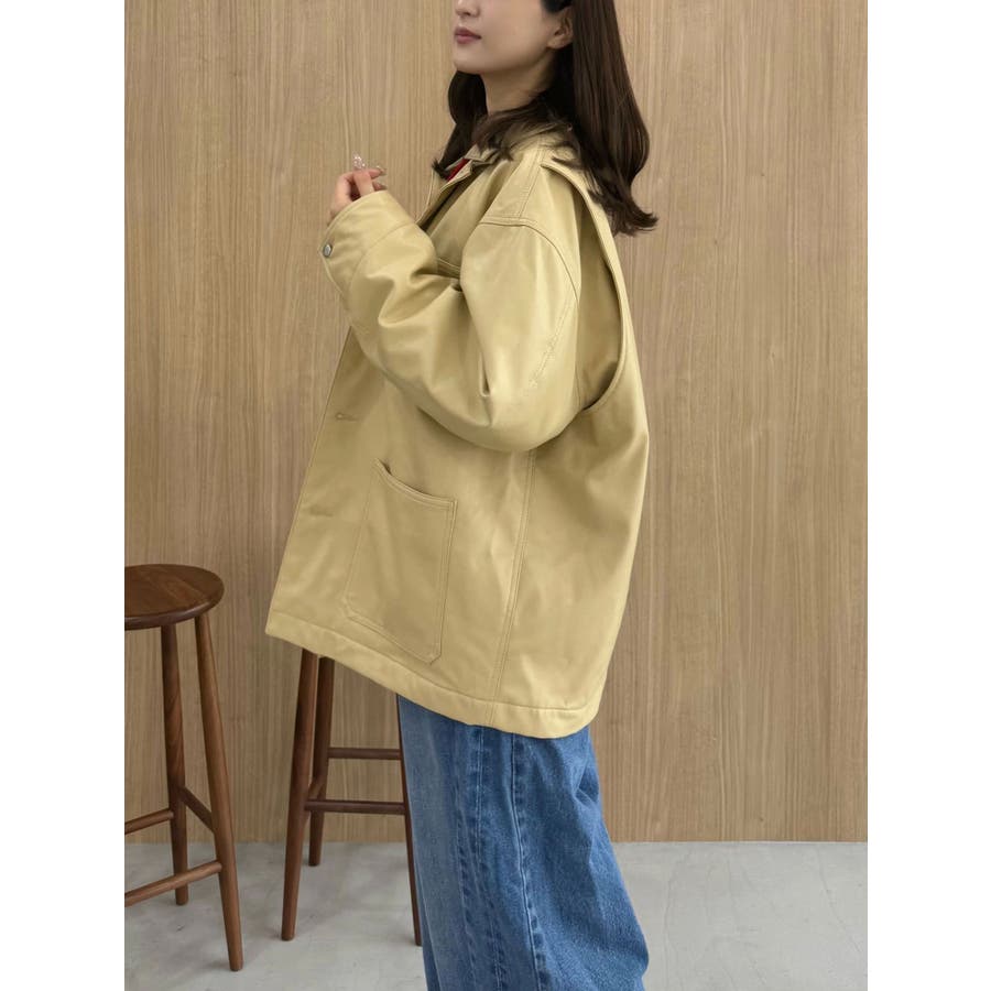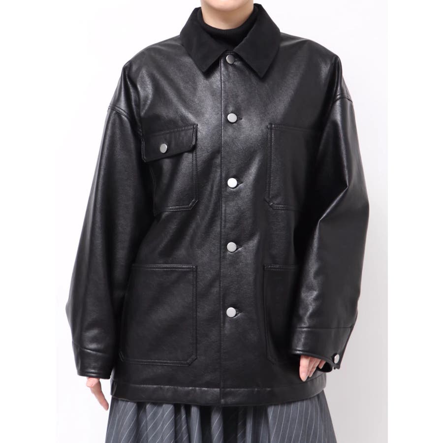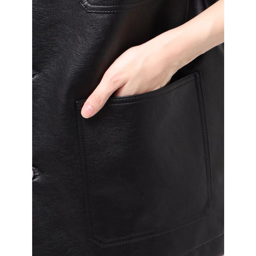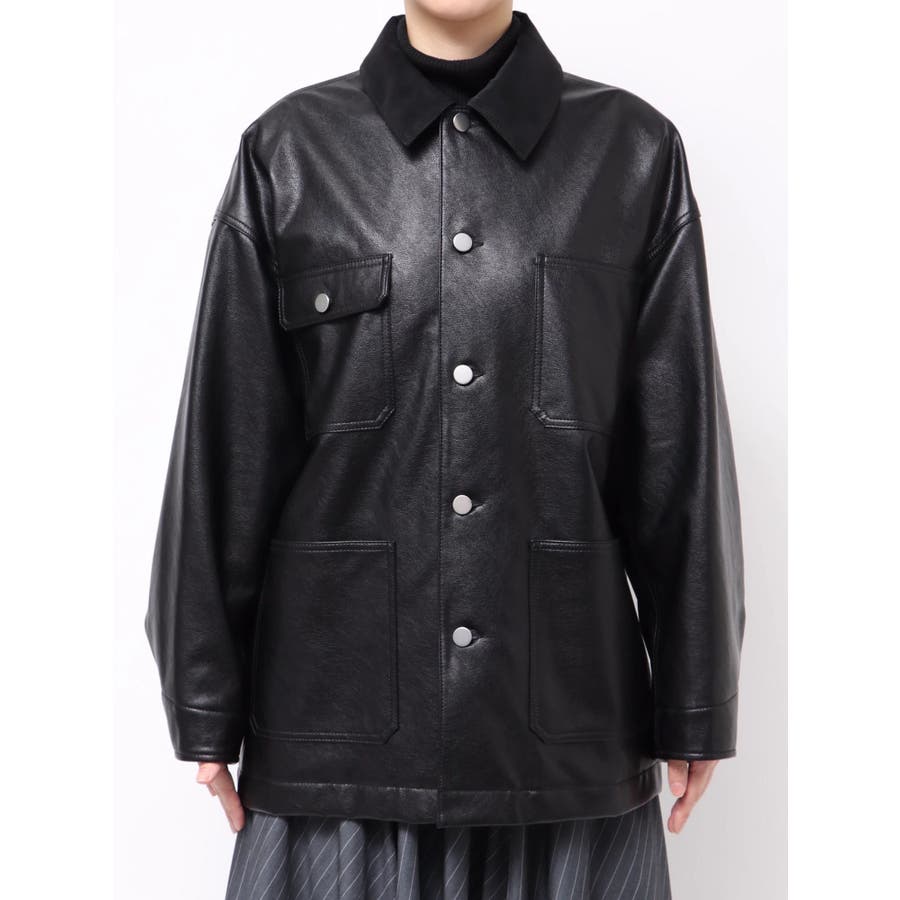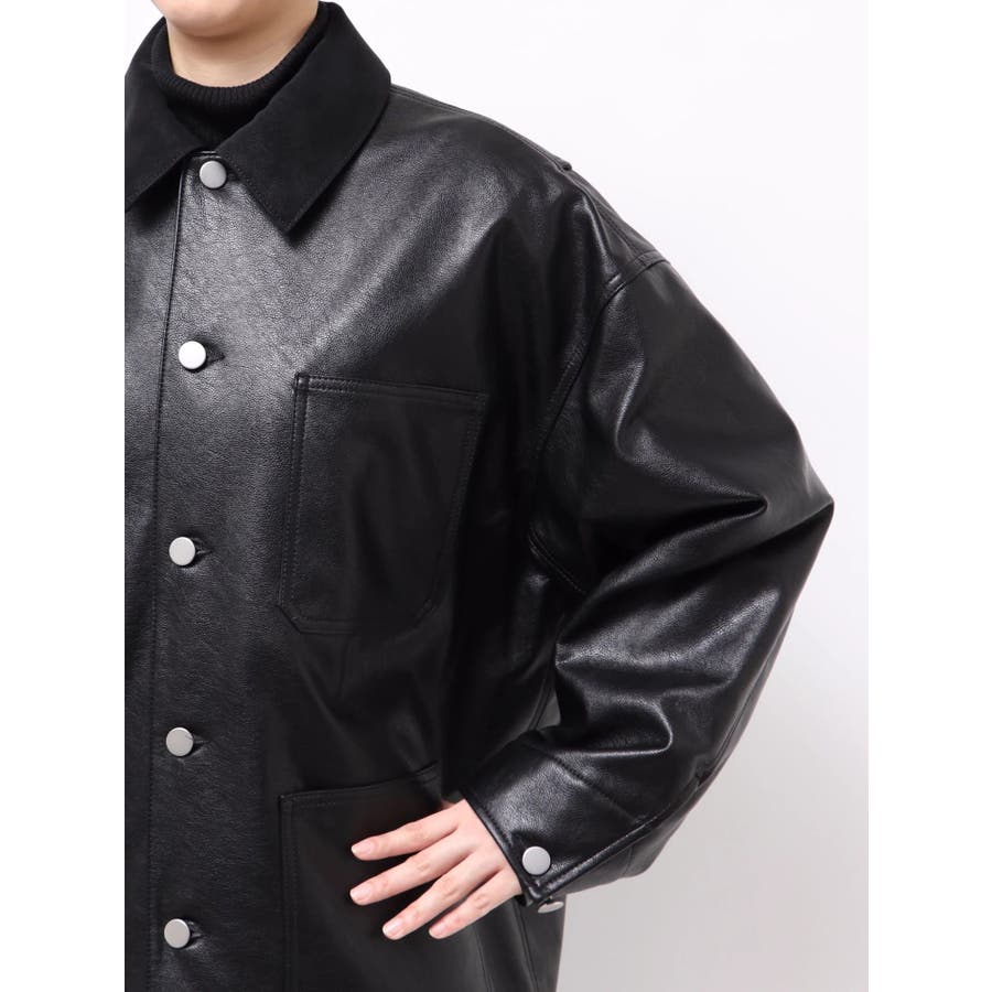存在感のあるフェイクレザーカバーオール。リアルさを追求したシボ感と表面感が、スタイリングにモードなエッジを効かせます。フェイクスエードの上衿は取り外し可能で、外すとレザーのみのクリーンな表情に。軽やかな薄手キルティング裏地付きで、ラフすぎず、洗練された大人の佇まいに。女性らしいスタイルに程よいスパイスをプラスする、今季の主役級アイテム。 ※着用画像は全てサンプルです。※釦のサイズ16.8mmに変更します。※詳細画像が正しい仕様となります。※着用画像はフラッシュの加減で実際の製品と色味等が異なる場合がございますので、生地のズームアップ画像をご確認ください。※ご利用の端末画面の設定により実際の商品と色味が異なる場合がございます。【商品特徴】透け感:なし伸縮性:なし生地の厚さ:普通サイズ感:ゆったり裏地:ありポケット:あり(前)