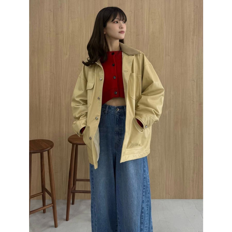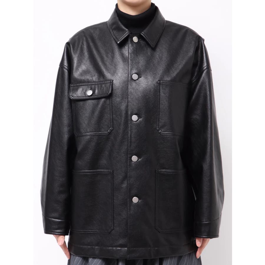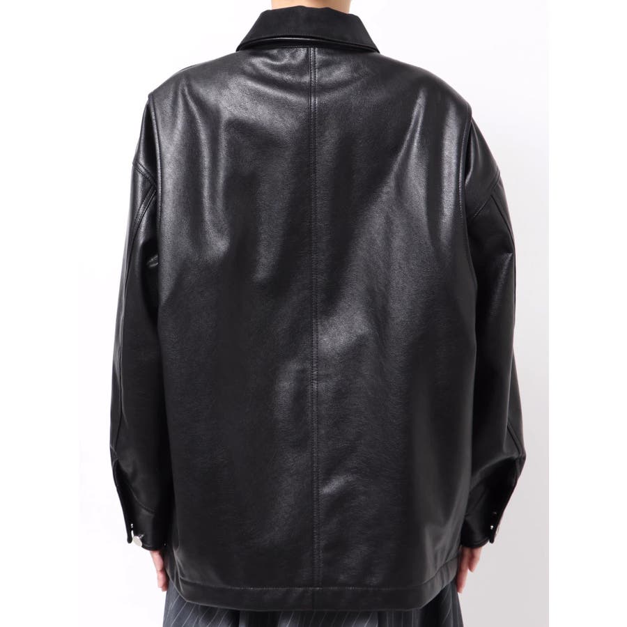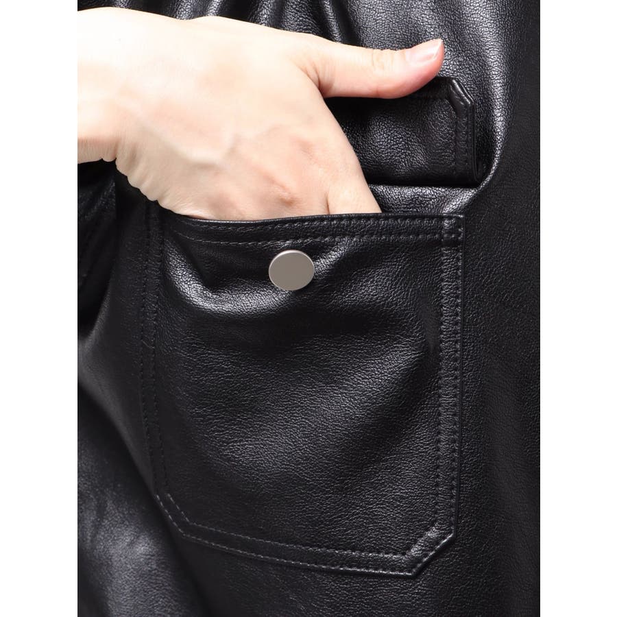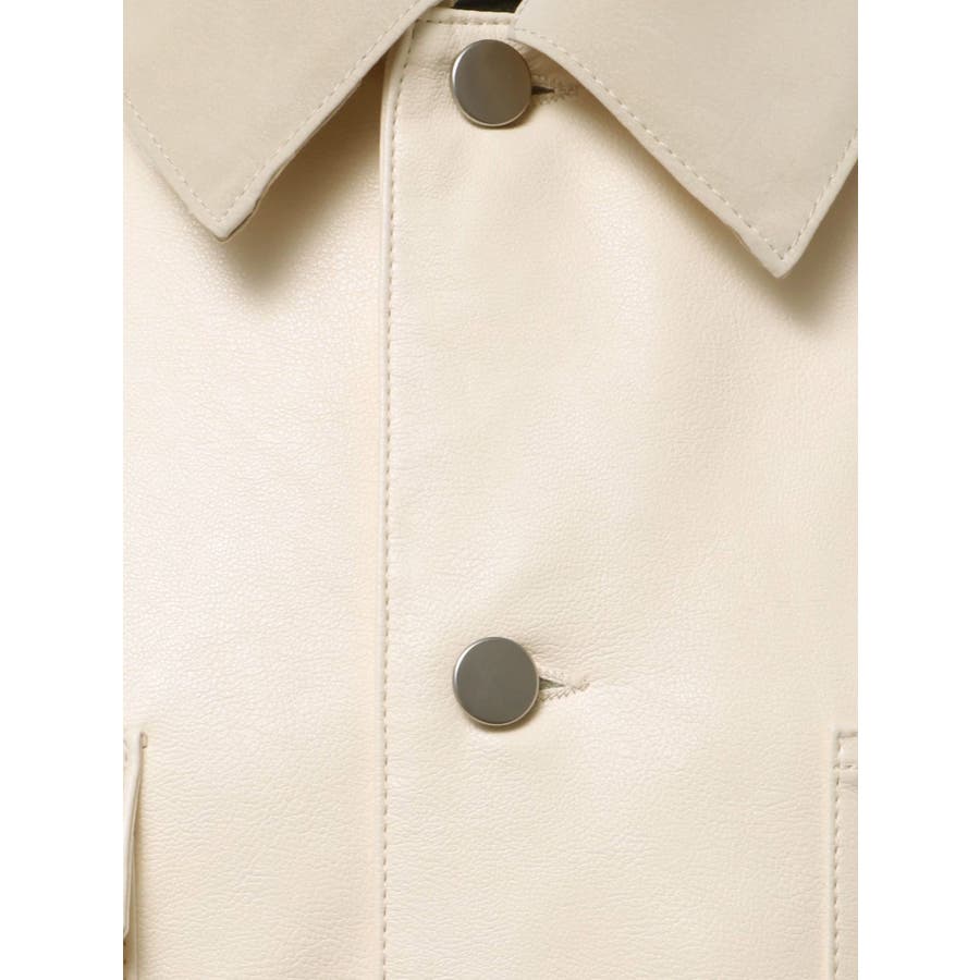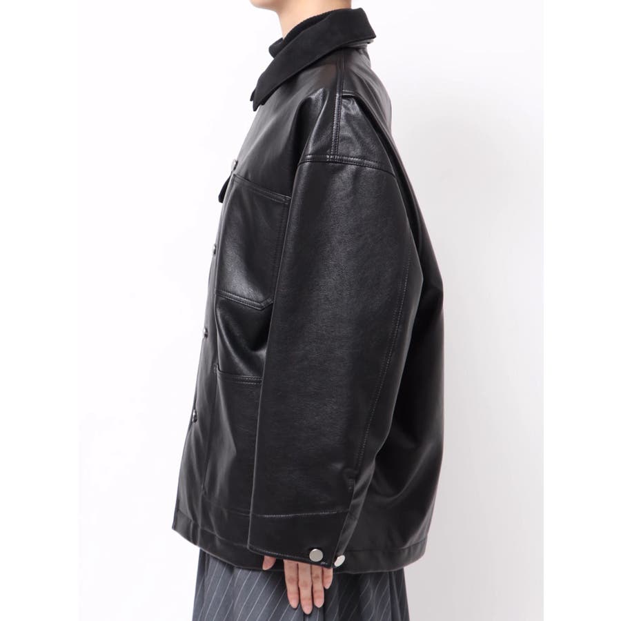 存在感のあるフェイクレザーカバーオール。リアルさを追求したシボ感と表面感が、スタイリングにモードなエッジを効かせます。フェイクスエードの上衿は取り外し可能で、外すとレザーのみのクリーンな表情に。軽やかな薄手キルティング裏地付きで、ラフすぎず、洗練された大人の佇まいに。女性らしいスタイルに程よいスパイスをプラスする、今季の主役級アイテム。 ※着用画像は全てサンプルです。※釦のサイズ16.8mmに変更します。※詳細画像が正しい仕様となります。※着用画像はフラッシュの加減で実際の製品と色味等が異なる場合がございますので、生地のズームアップ画像をご確認ください。※ご利用の端末画面の設定により実際の商品と色味が異なる場合がございます。【商品特徴】透け感:なし伸縮性:なし生地の厚さ:普通サイズ感:ゆったり裏地:ありポケット:あり(前)