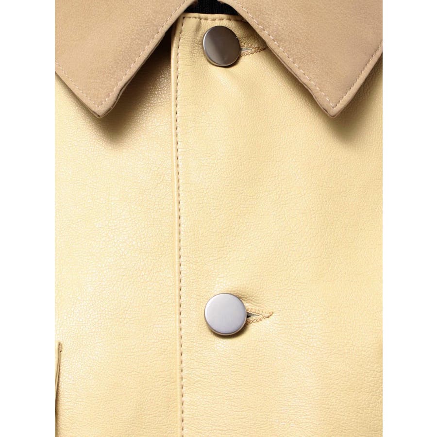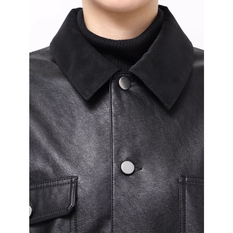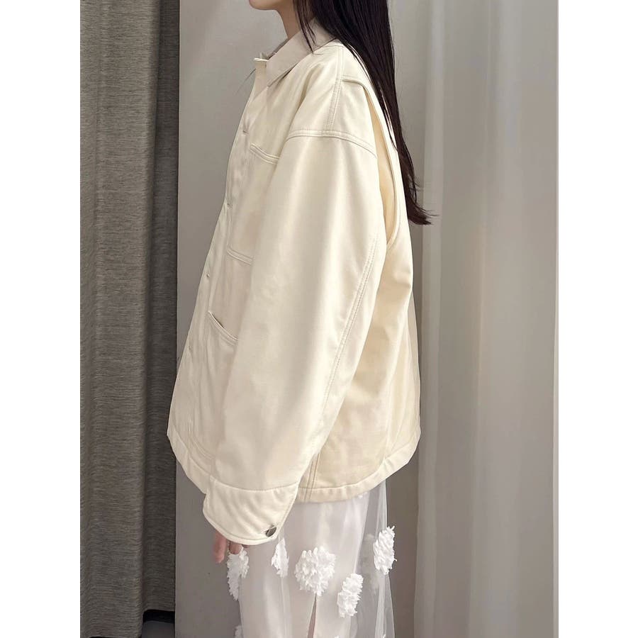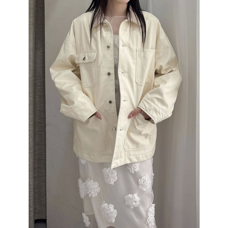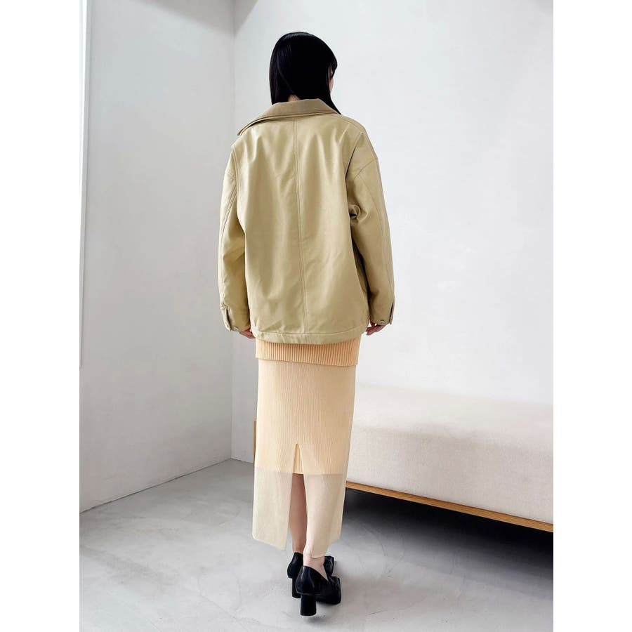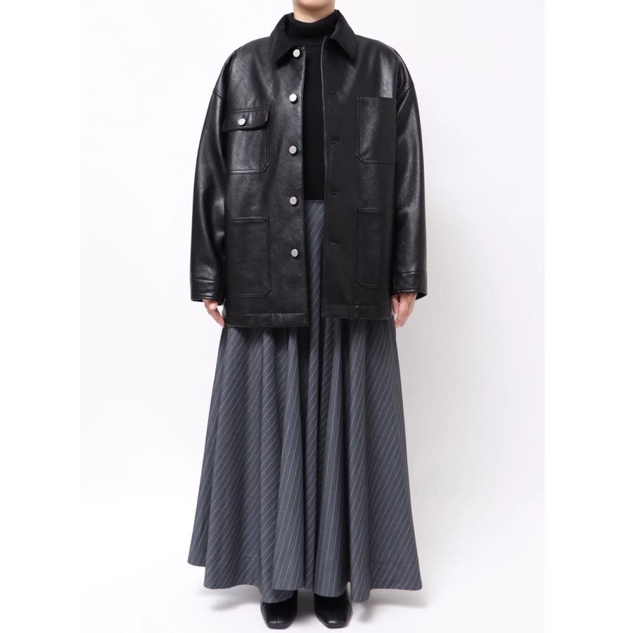 存在感のあるフェイクレザーカバーオール。リアルさを追求したシボ感と表面感が、スタイリングにモードなエッジを効かせます。フェイクスエードの上衿は取り外し可能で、外すとレザーのみのクリーンな表情に。軽やかな薄手キルティング裏地付きで、ラフすぎず、洗練された大人の佇まいに。女性らしいスタイルに程よいスパイスをプラスする、今季の主役級アイテム。 ※着用画像は全てサンプルです。※釦のサイズ16.8mmに変更します。※詳細画像が正しい仕様となります。※着用画像はフラッシュの加減で実際の製品と色味等が異なる場合がございますので、生地のズームアップ画像をご確認ください。※ご利用の端末画面の設定により実際の商品と色味が異なる場合がございます。【商品特徴】透け感:なし伸縮性:なし生地の厚さ:普通サイズ感:ゆったり裏地:ありポケット:あり(前)