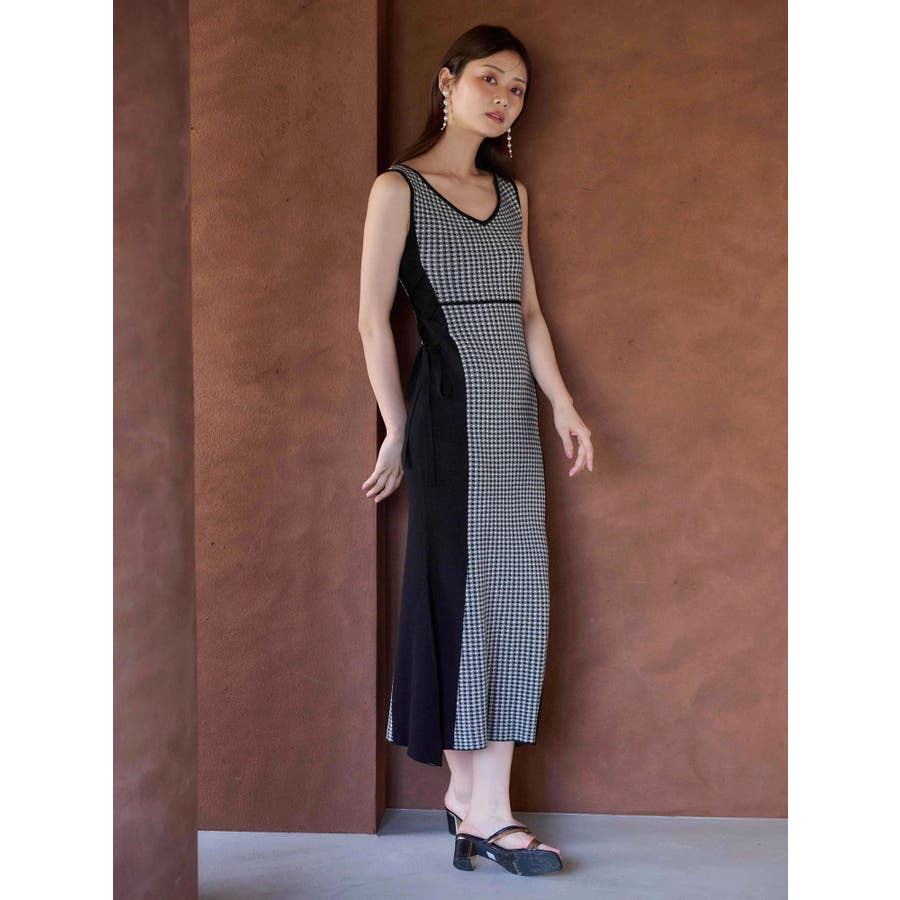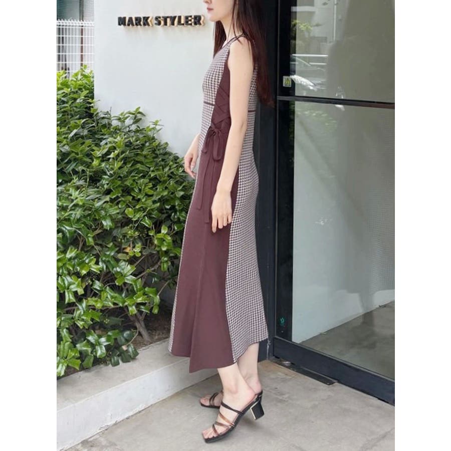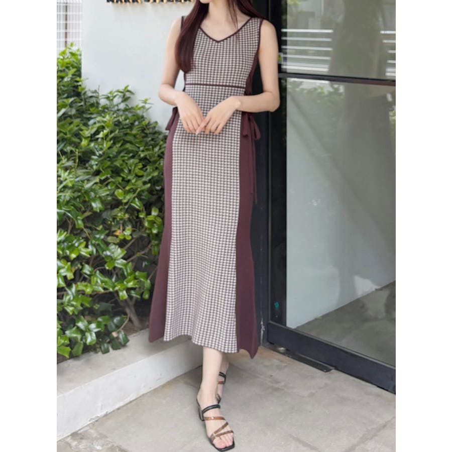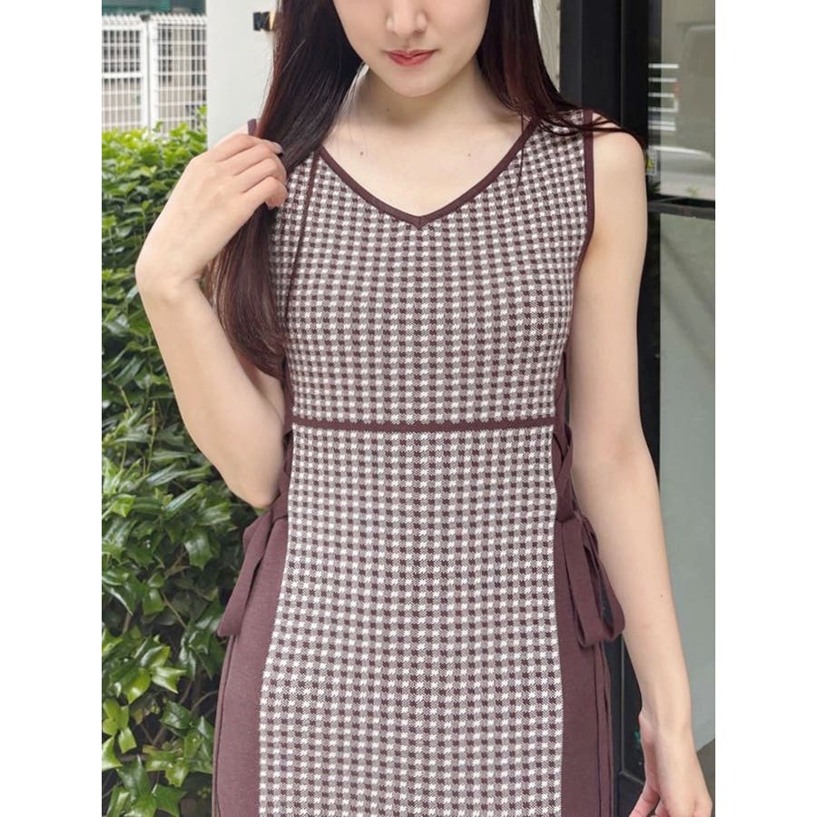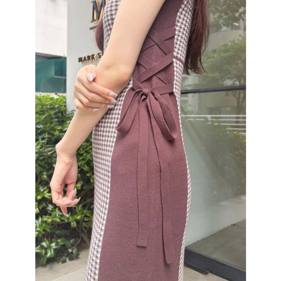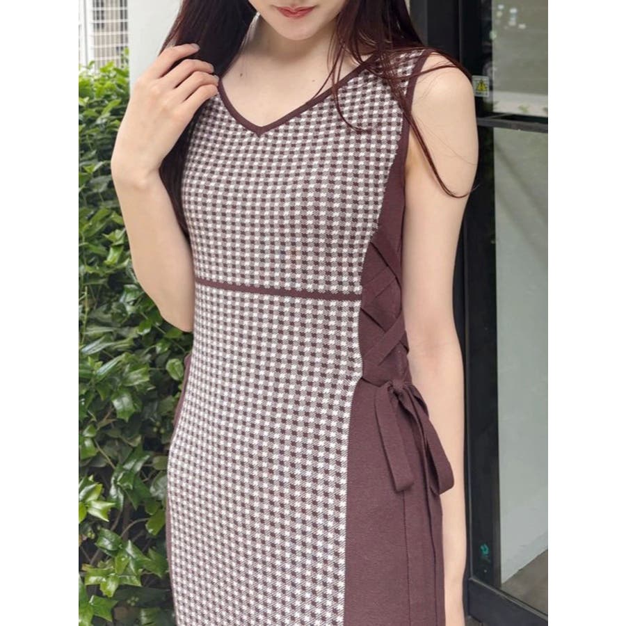 チェックサイドレースアップニットワンピース