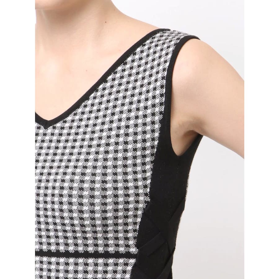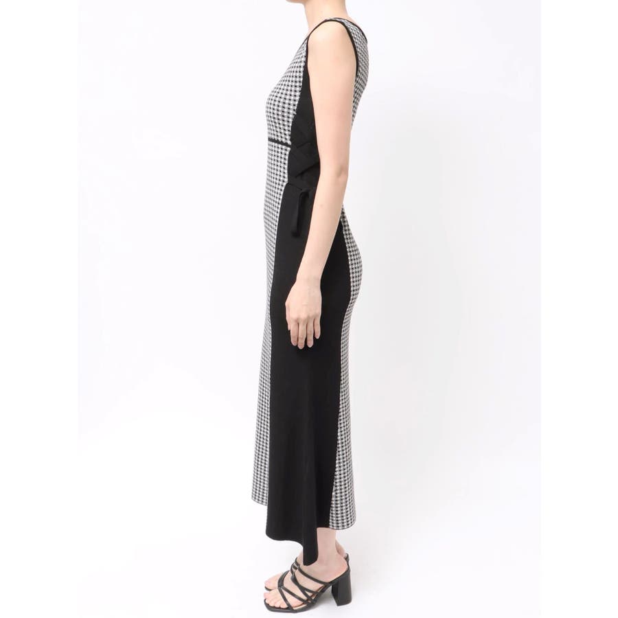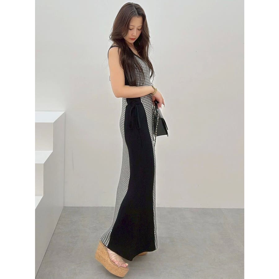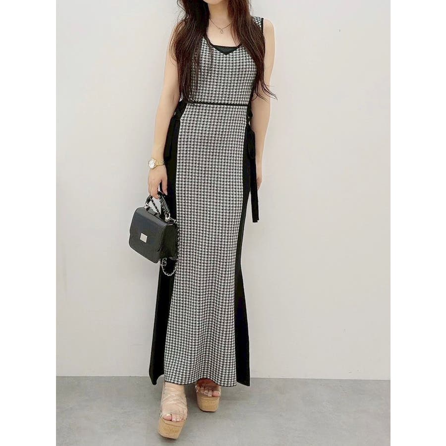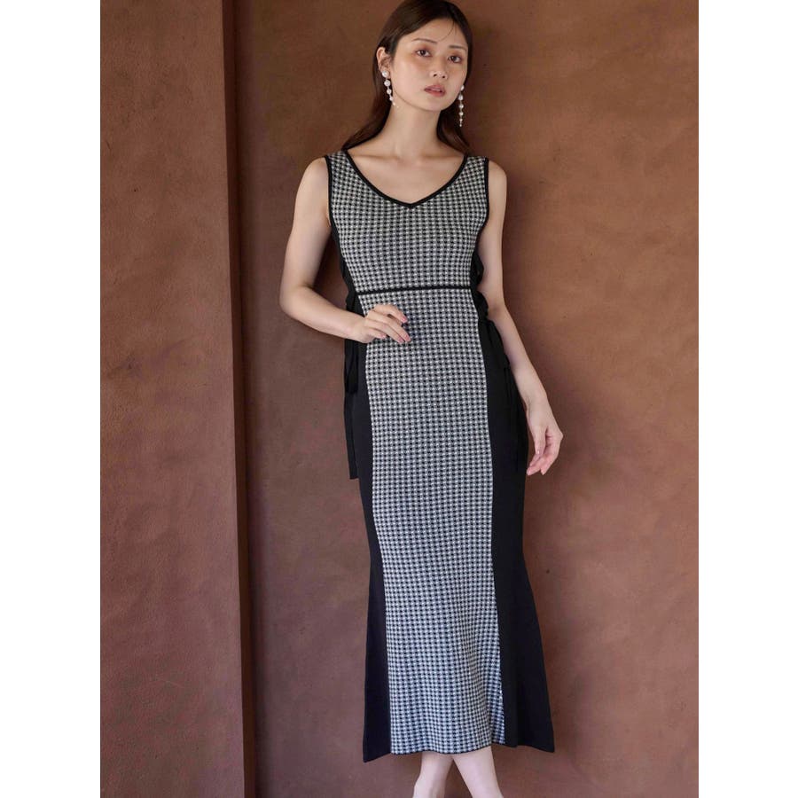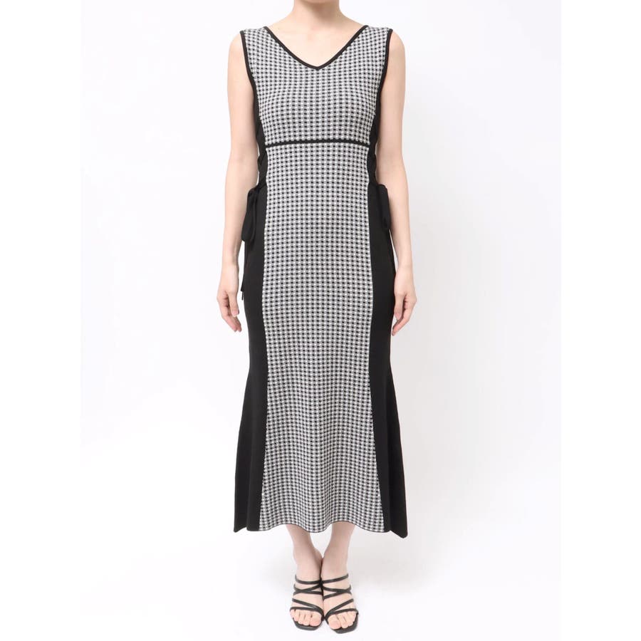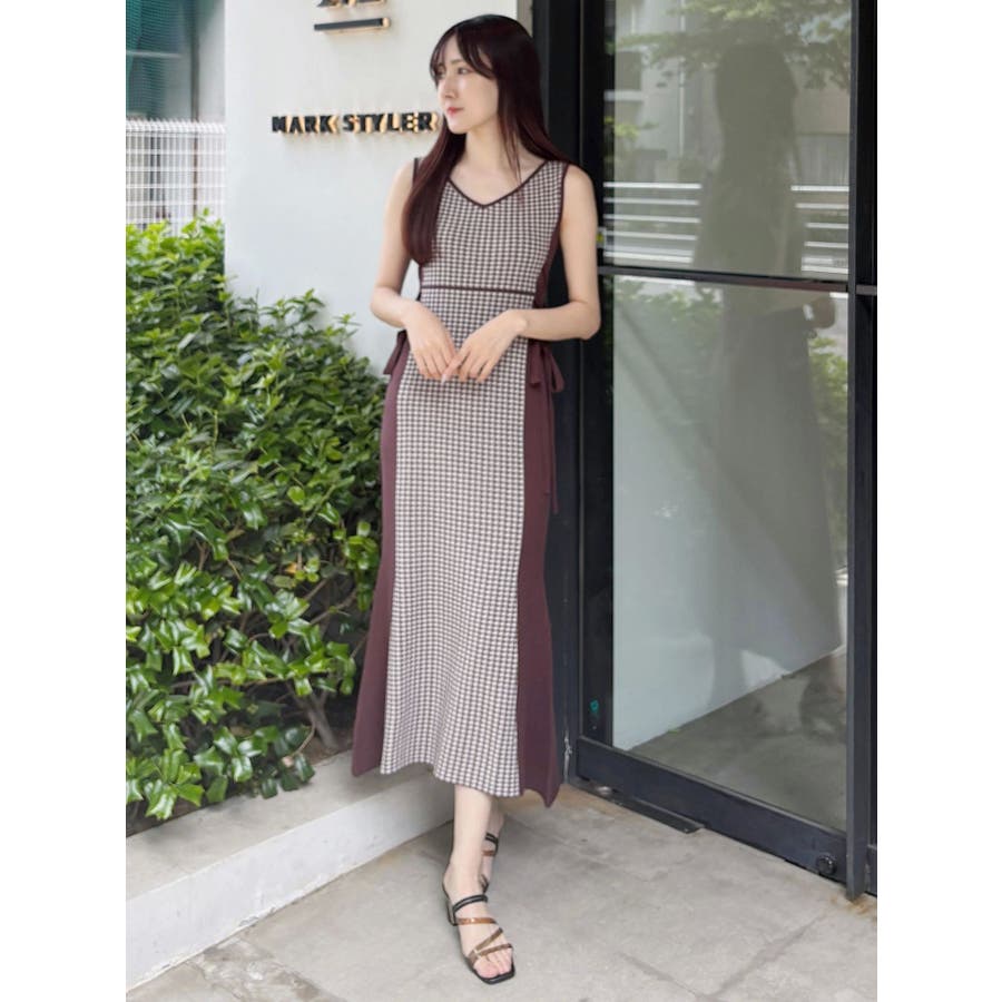 チェックサイドレースアップニットワンピース