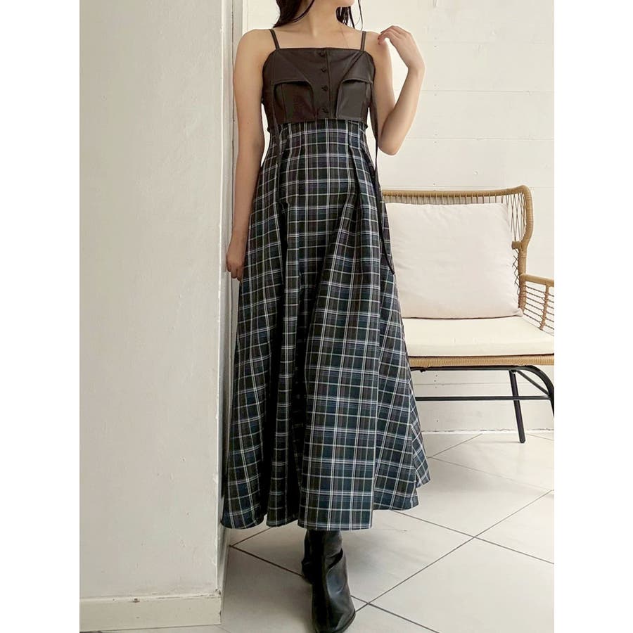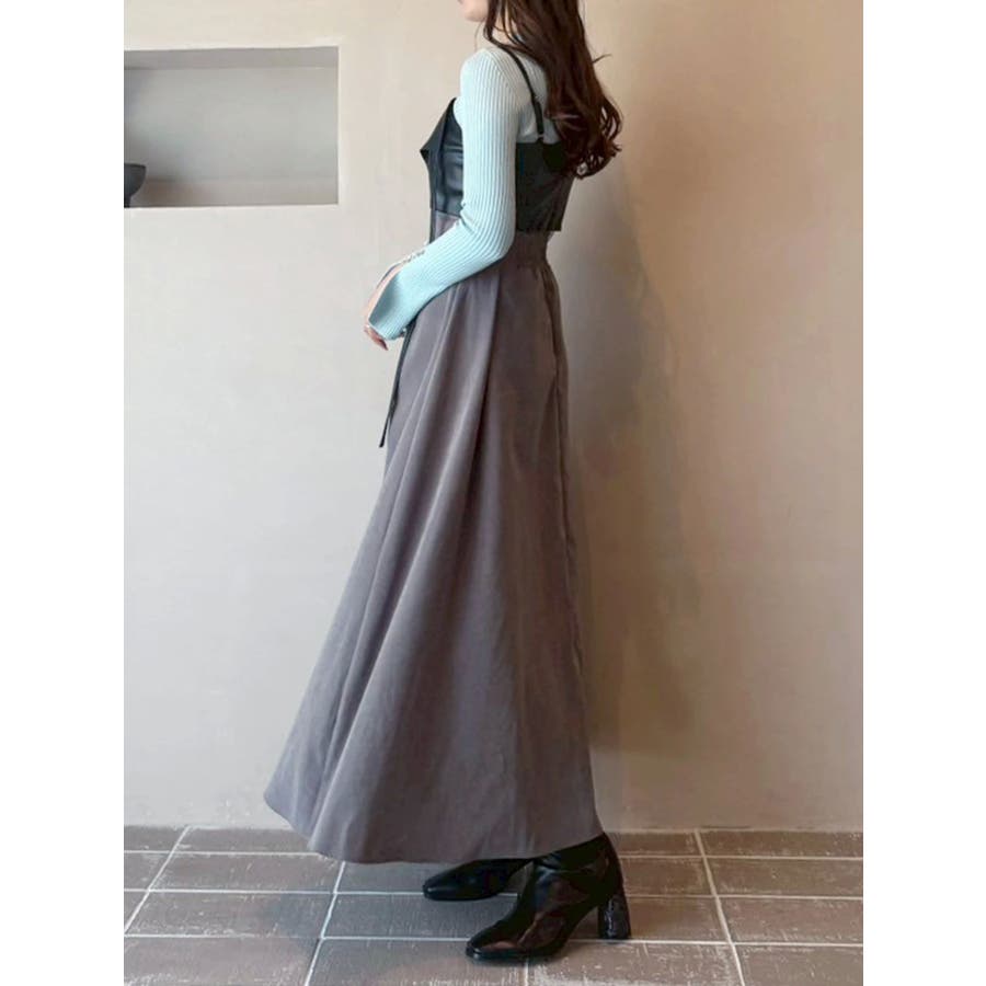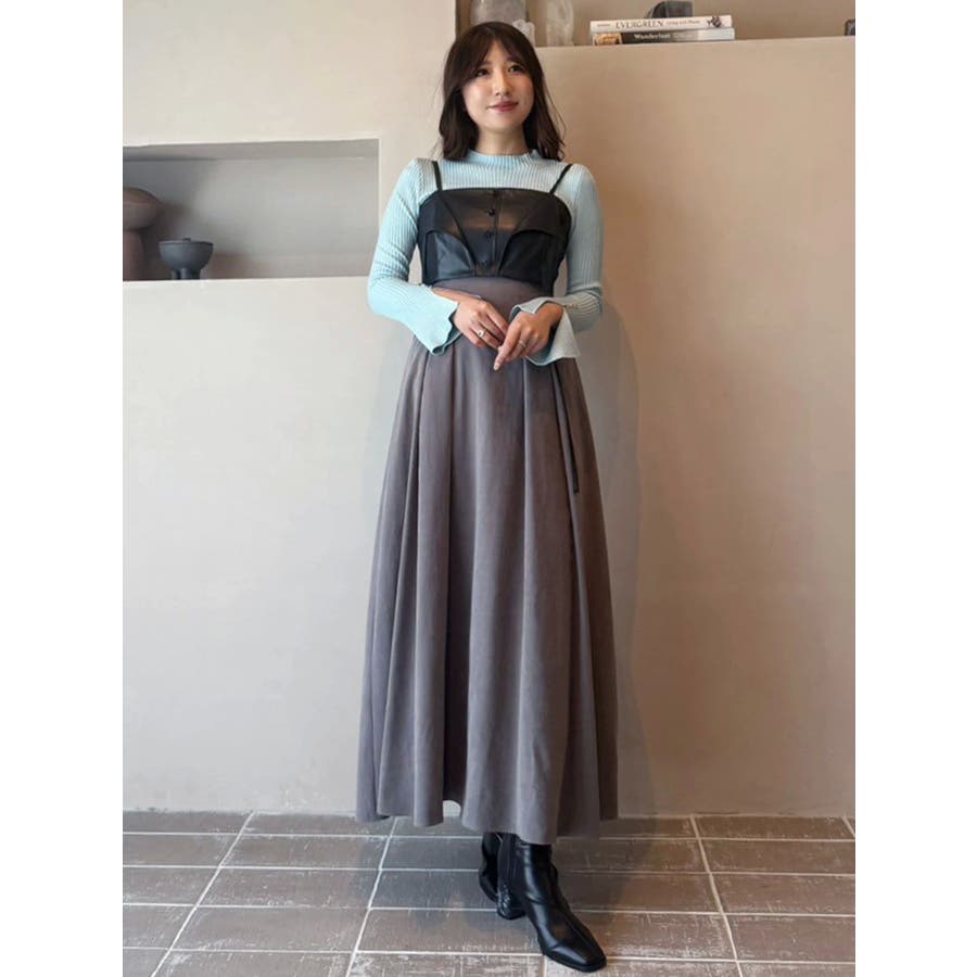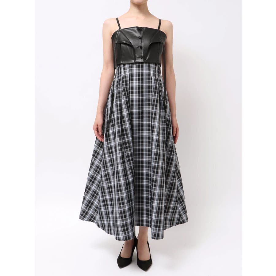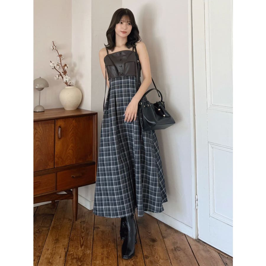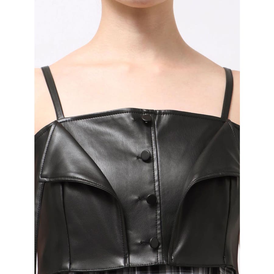 フェイクレザービスチェドッキングキャミワンピース
