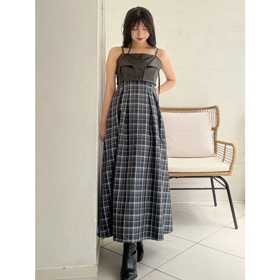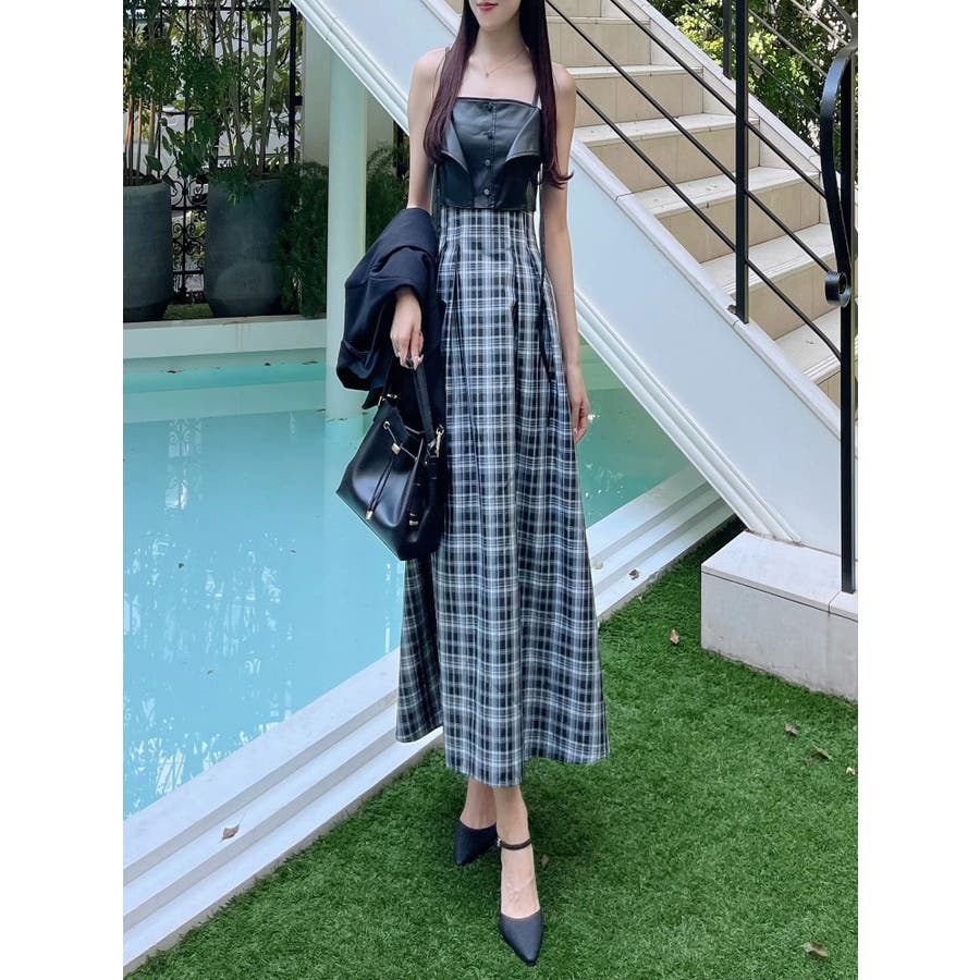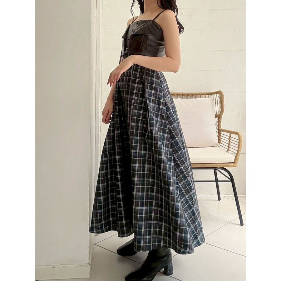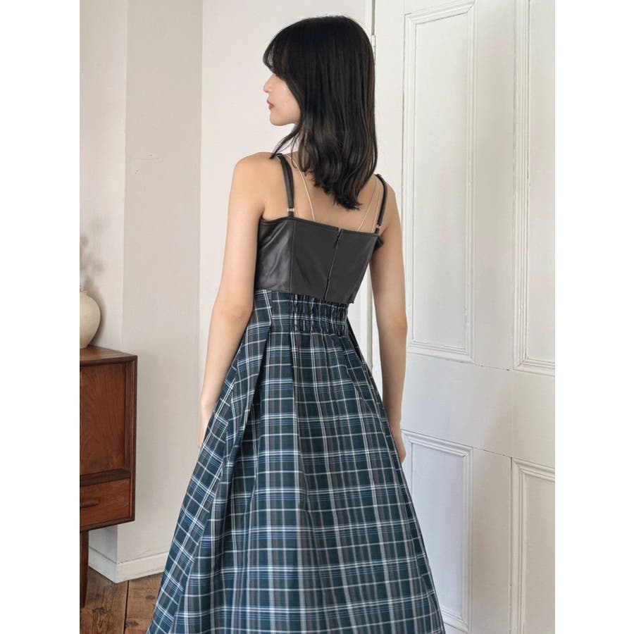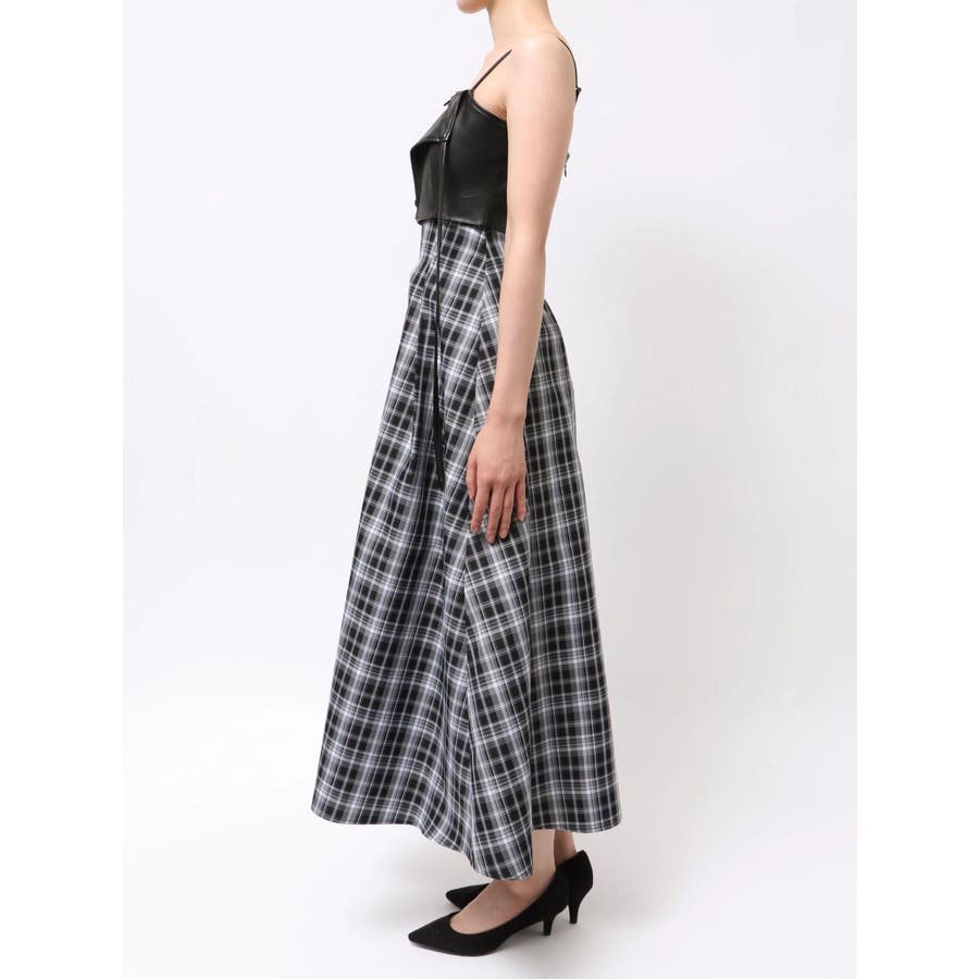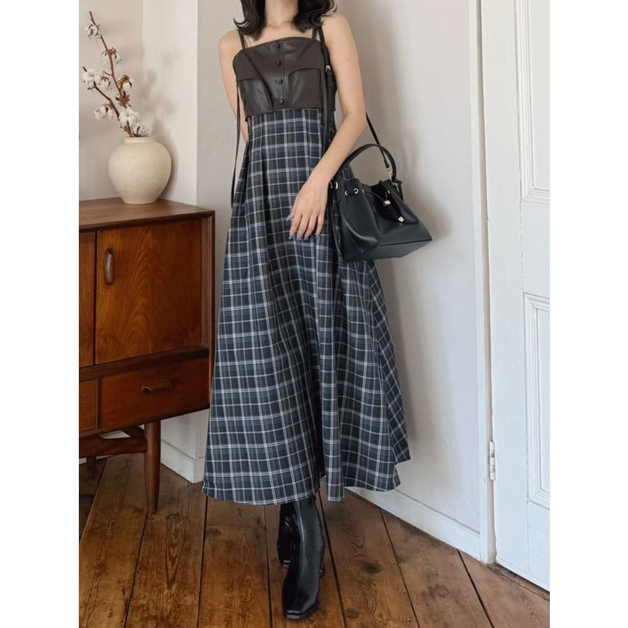 フェイクレザービスチェドッキングキャミワンピース
