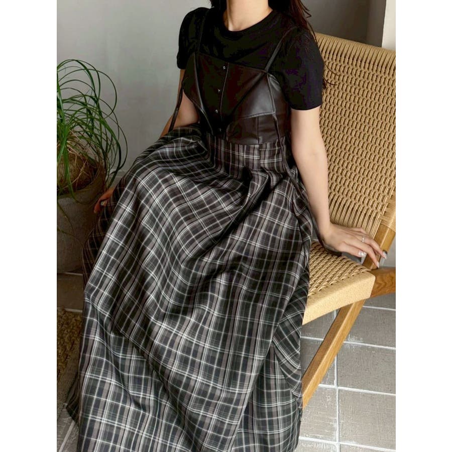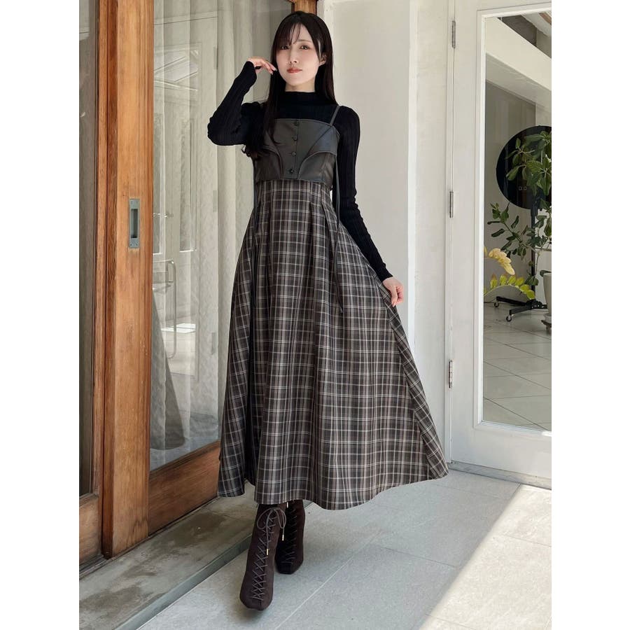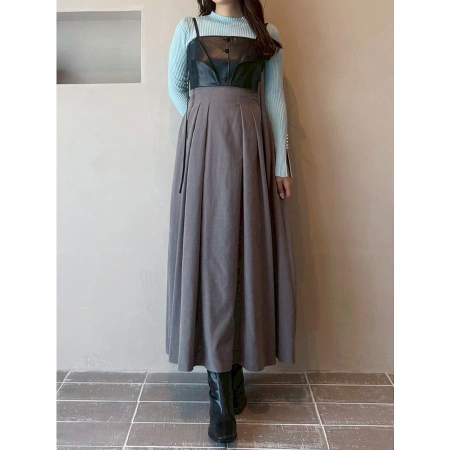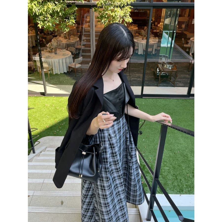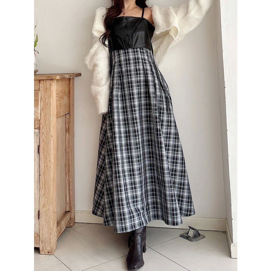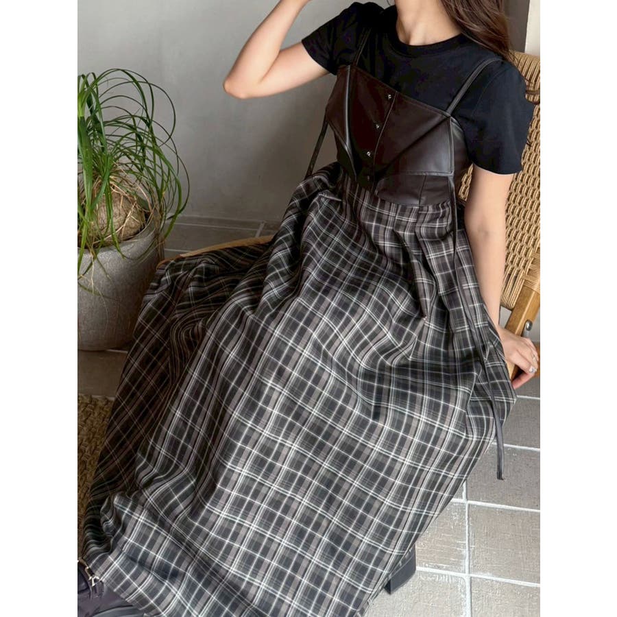 フェイクレザービスチェドッキングキャミワンピース