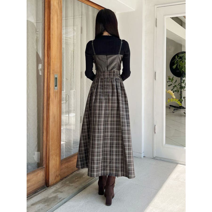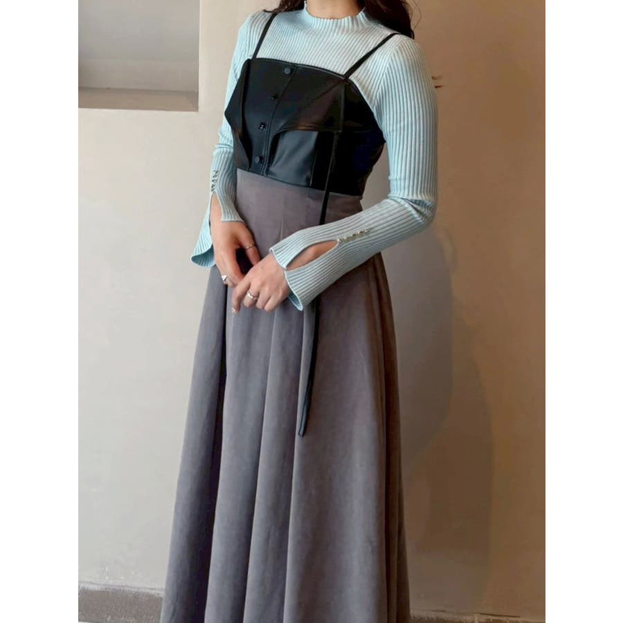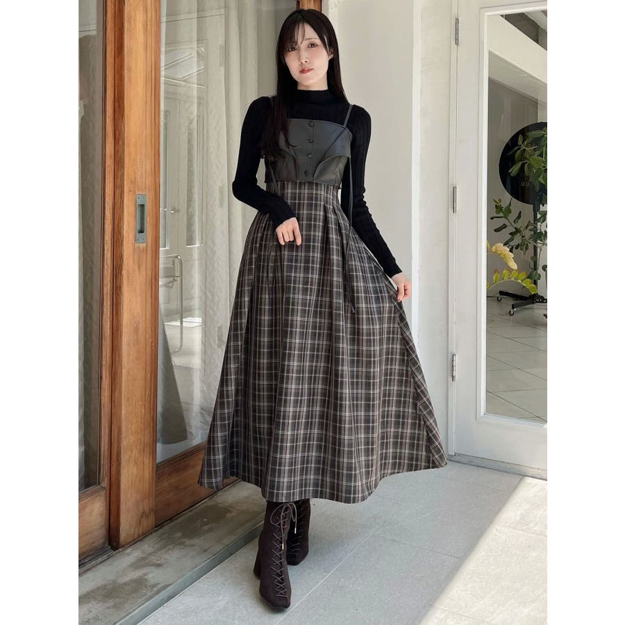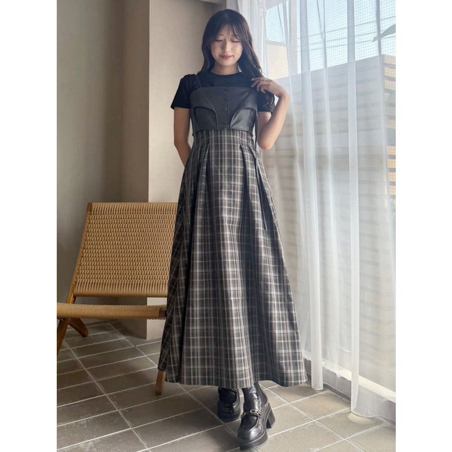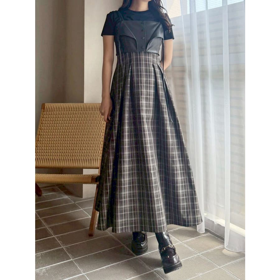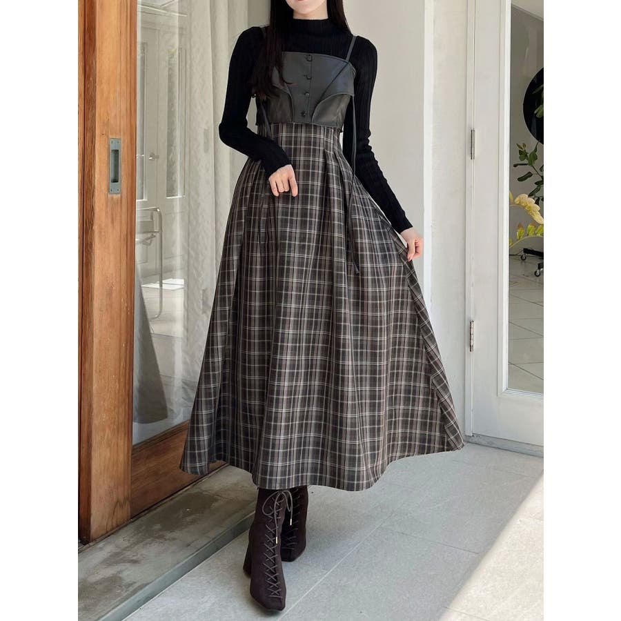 フェイクレザービスチェドッキングキャミワンピース