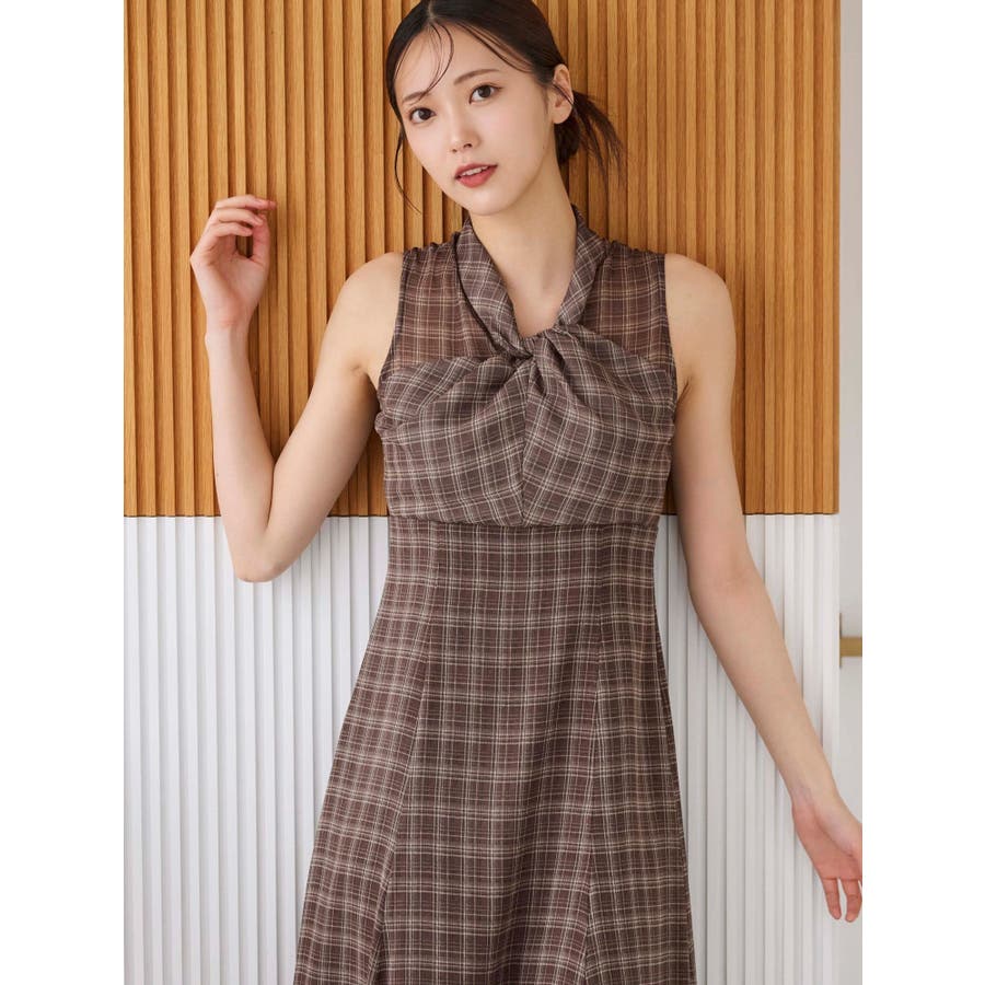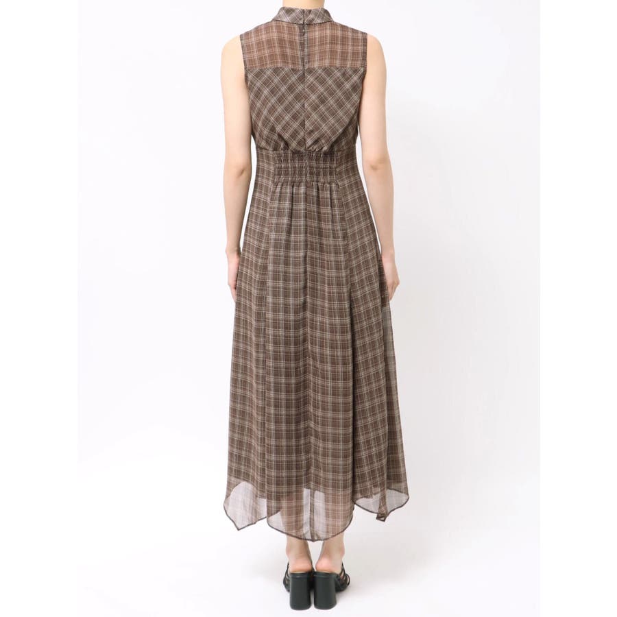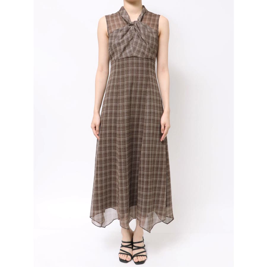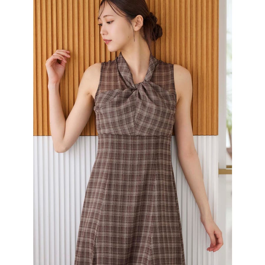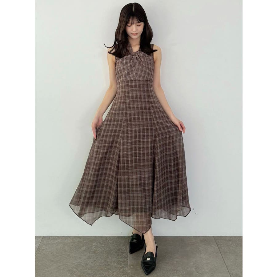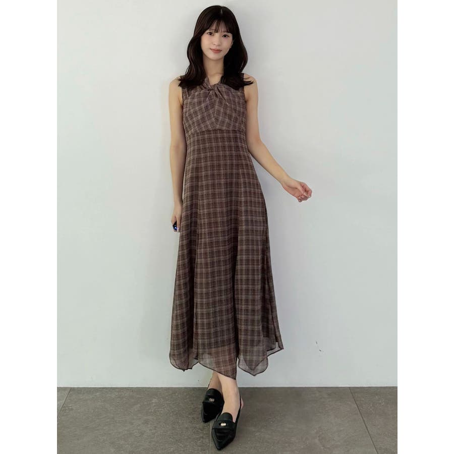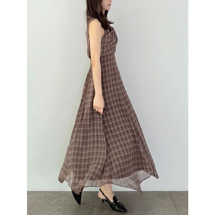 秋らしいダークトーンのチェック生地を使ったワンピースです。 ツイストした襟元から繋がるビスチェディテールはバイアスに柄をとって透ける部分とのコントラストがより強調されるようになっています。 裾はイレギュラーヘムにすることでトレンド感のある仕上がりになっています。 ▼スタイリング ボレロを肩を落として羽織ると抜け感が出ます。 足元はショートブーツやミュールがおすすめです。 ※着用画像はフラッシュの加減で実際の製品と色味等が異なる場合がございますので、生地のズームアップ画像をご確認ください。※ご利用の端末画面の設定により実際の商品と色味が異なる場合がございます。【商品特徴】透け感:なし伸縮性:なし生地の厚さ:薄手サイズ感:普通裏地:ありポケット:なしファスナー:あり(後)