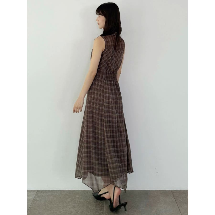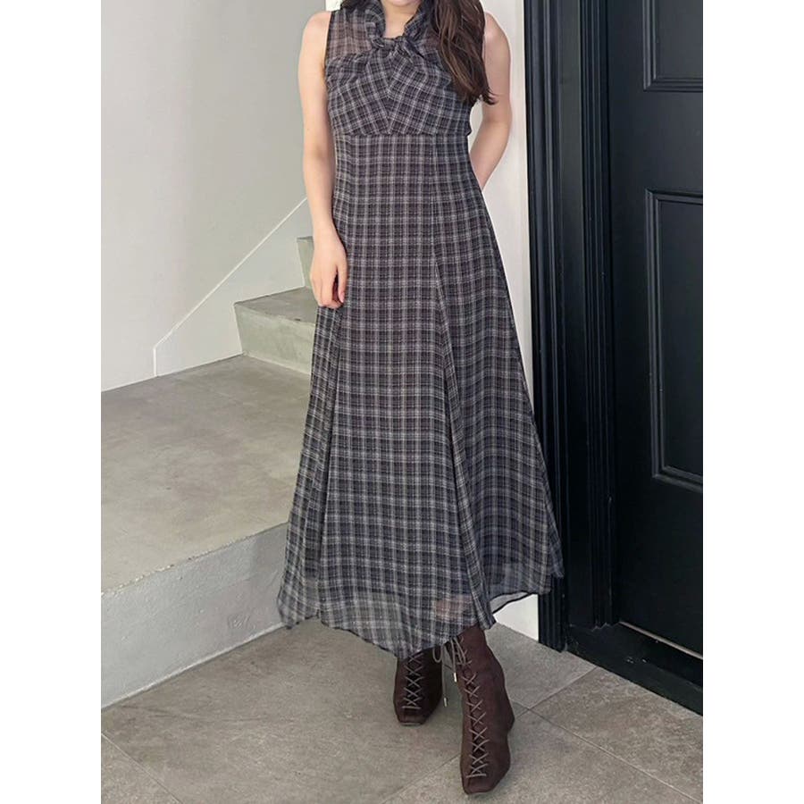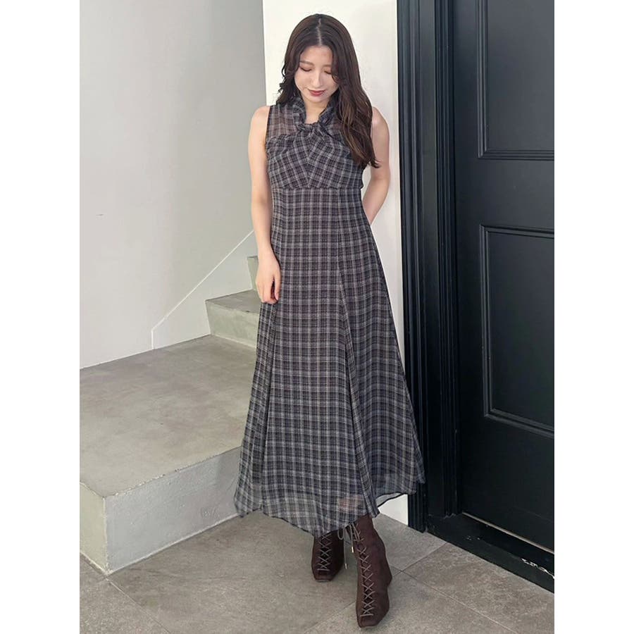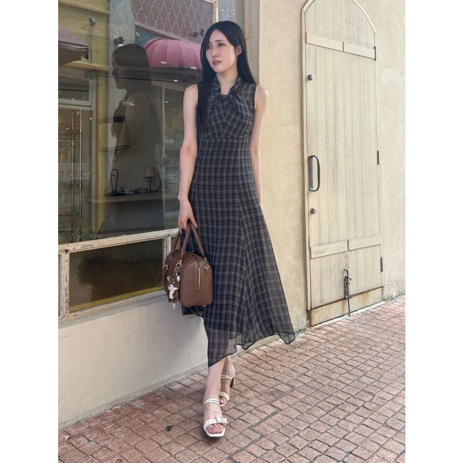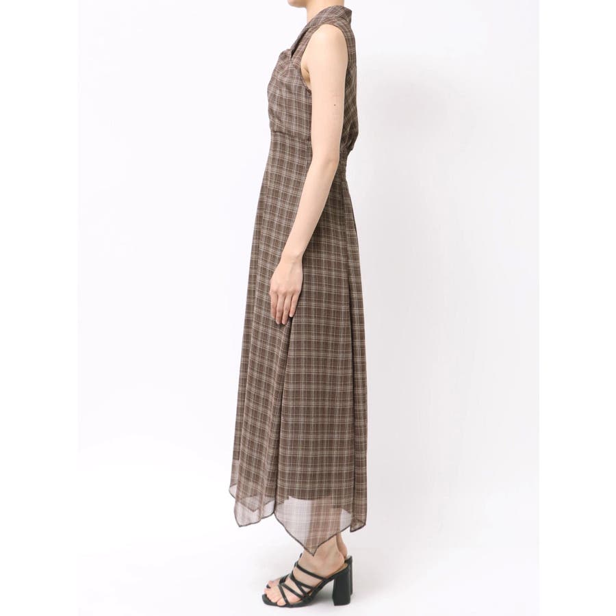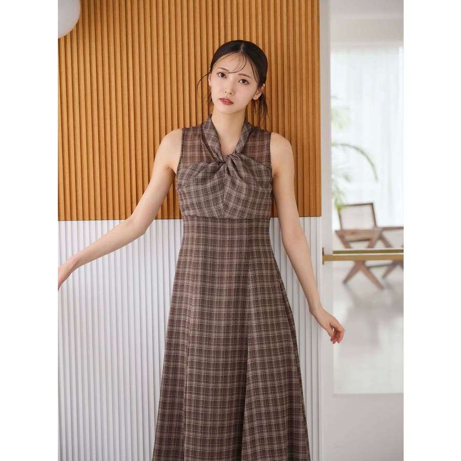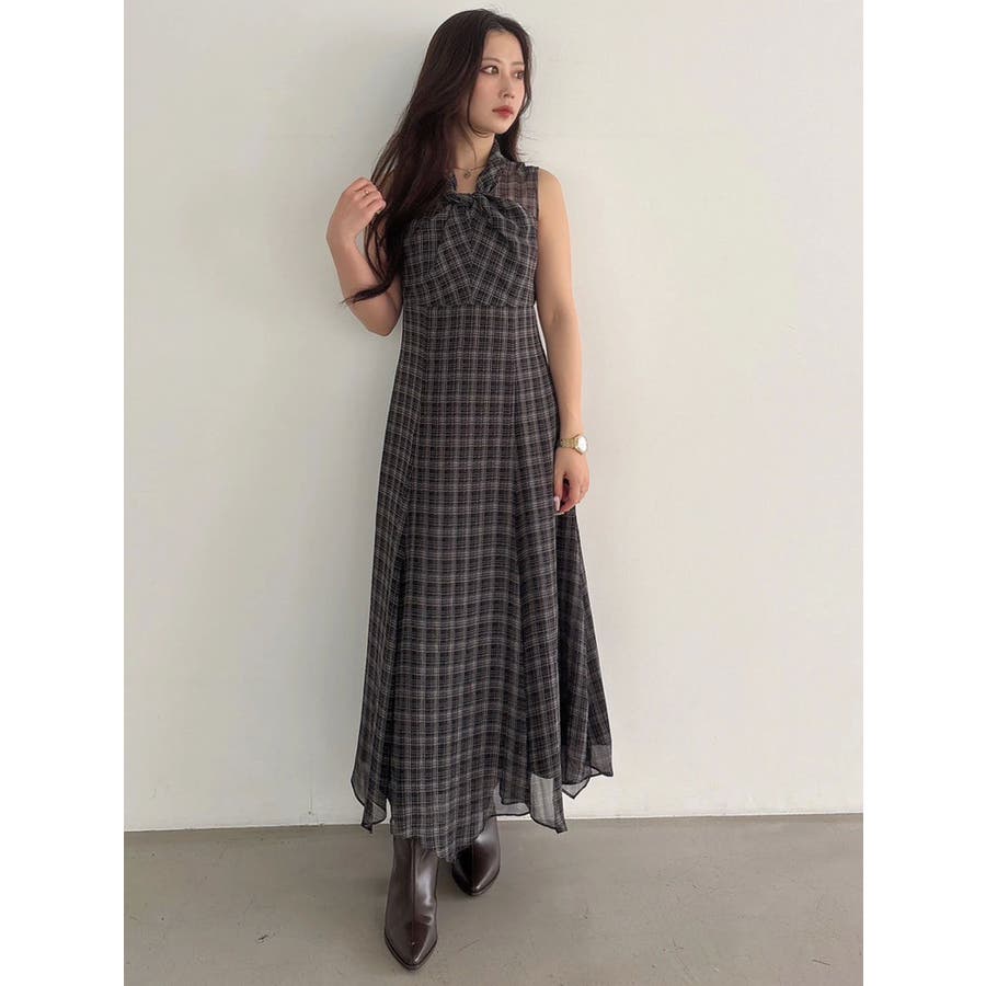 秋らしいダークトーンのチェック生地を使ったワンピースです。 ツイストした襟元から繋がるビスチェディテールはバイアスに柄をとって透ける部分とのコントラストがより強調されるようになっています。 裾はイレギュラーヘムにすることでトレンド感のある仕上がりになっています。 ▼スタイリング ボレロを肩を落として羽織ると抜け感が出ます。 足元はショートブーツやミュールがおすすめです。 ※着用画像はフラッシュの加減で実際の製品と色味等が異なる場合がございますので、生地のズームアップ画像をご確認ください。※ご利用の端末画面の設定により実際の商品と色味が異なる場合がございます。【商品特徴】透け感:なし伸縮性:なし生地の厚さ:薄手サイズ感:普通裏地:ありポケット:なしファスナー:あり(後)
