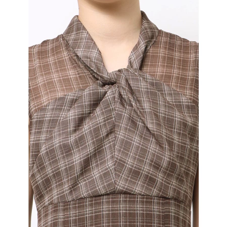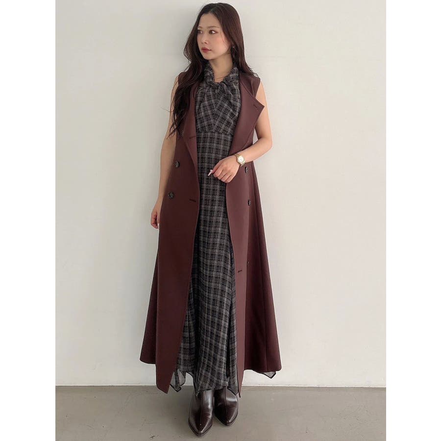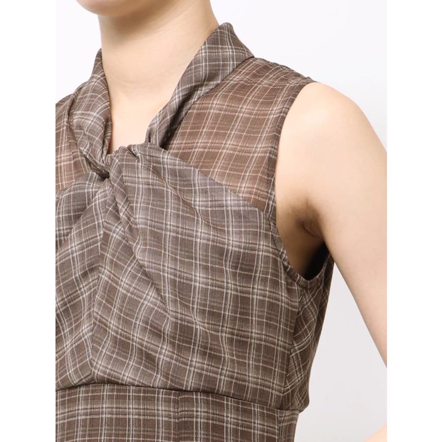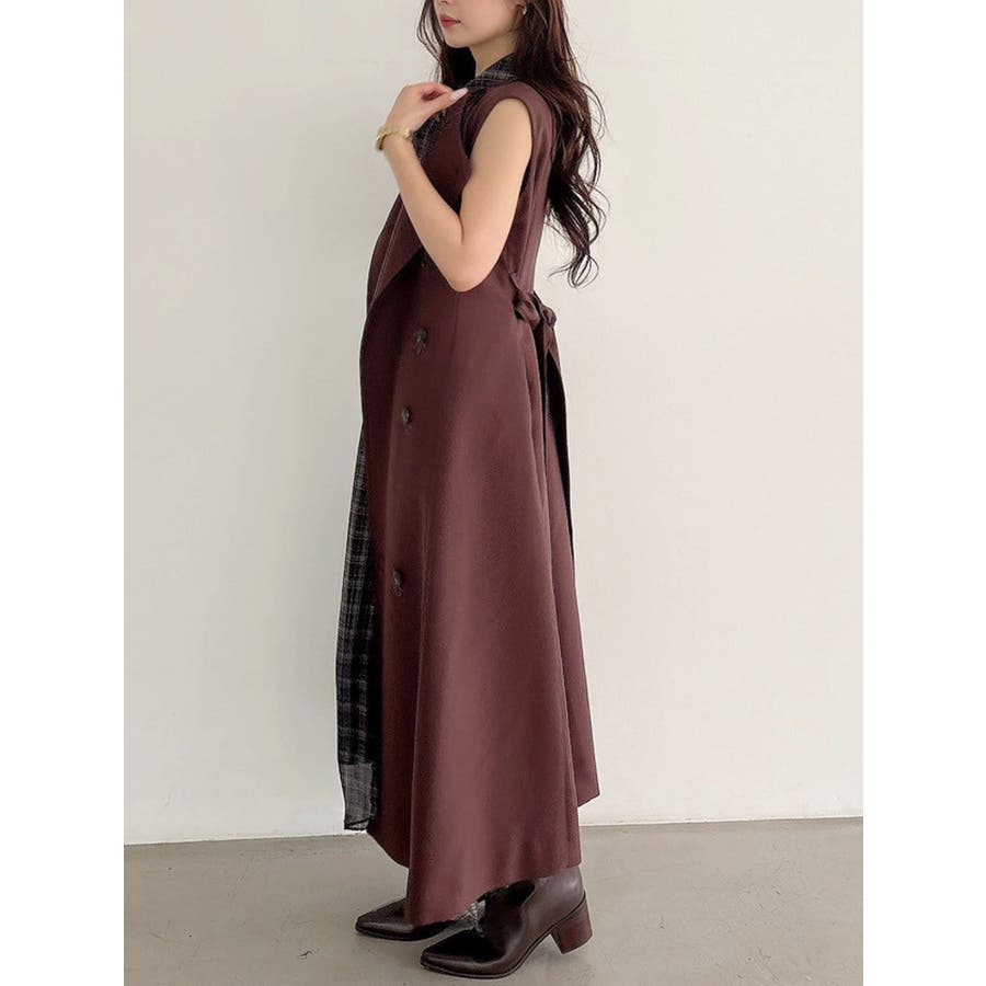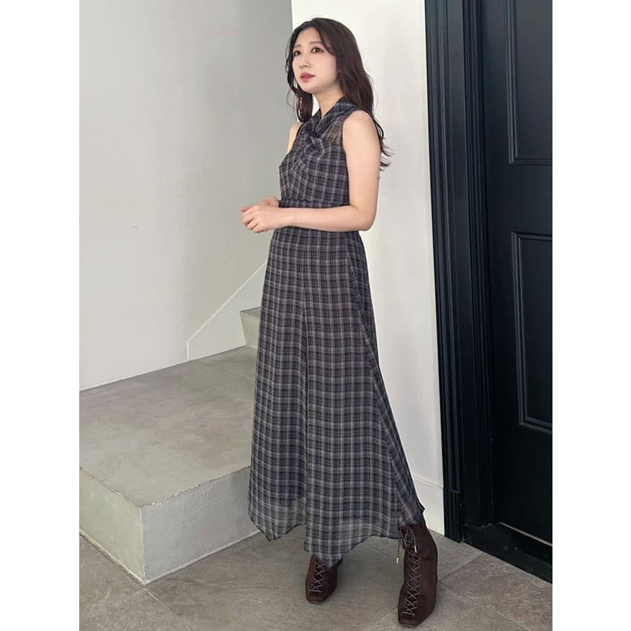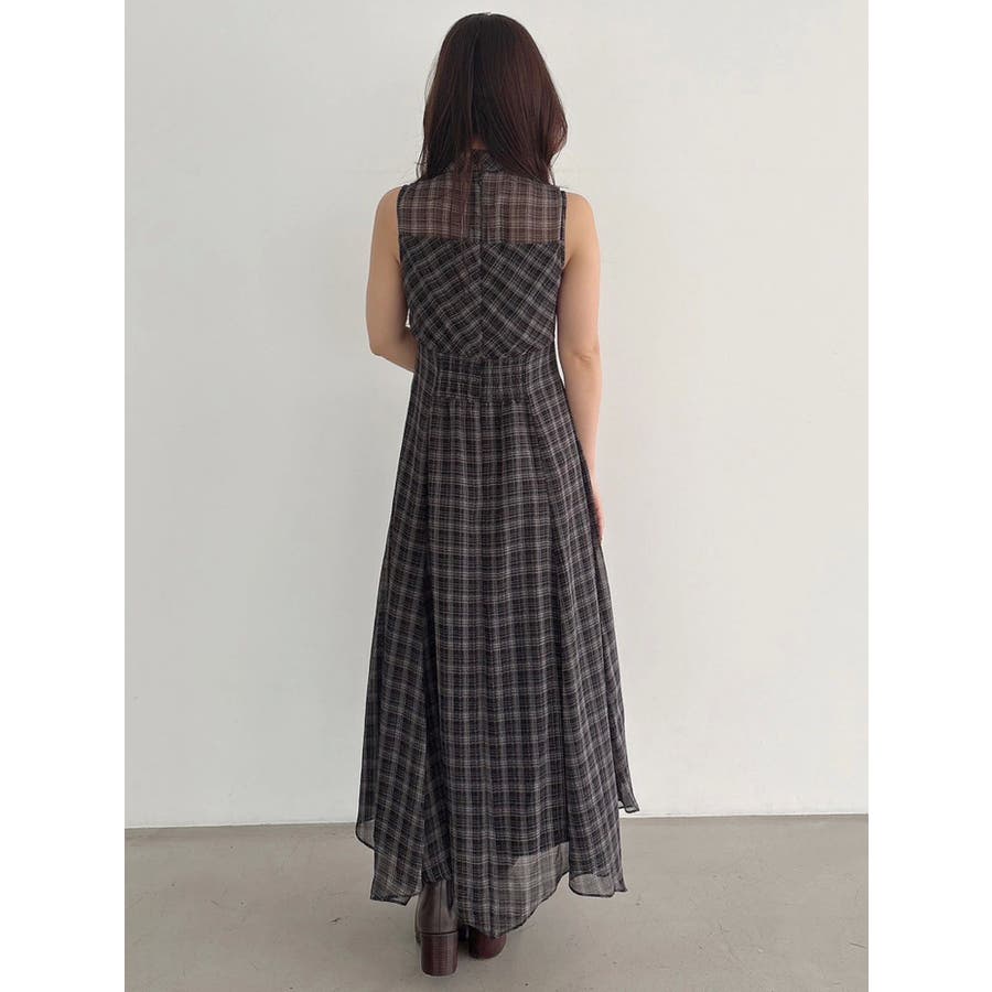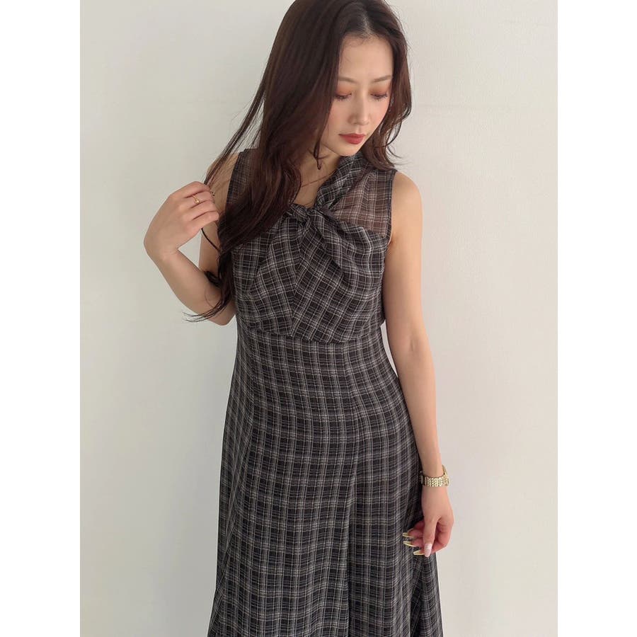 秋らしいダークトーンのチェック生地を使ったワンピースです。 ツイストした襟元から繋がるビスチェディテールはバイアスに柄をとって透ける部分とのコントラストがより強調されるようになっています。 裾はイレギュラーヘムにすることでトレンド感のある仕上がりになっています。 ▼スタイリング ボレロを肩を落として羽織ると抜け感が出ます。 足元はショートブーツやミュールがおすすめです。 ※着用画像はフラッシュの加減で実際の製品と色味等が異なる場合がございますので、生地のズームアップ画像をご確認ください。※ご利用の端末画面の設定により実際の商品と色味が異なる場合がございます。【商品特徴】透け感:なし伸縮性:なし生地の厚さ:薄手サイズ感:普通裏地:ありポケット:なしファスナー:あり(後)