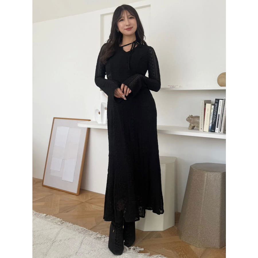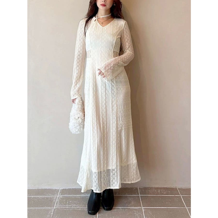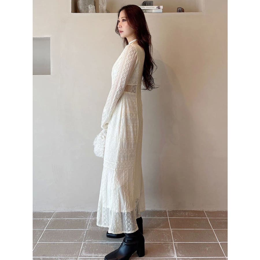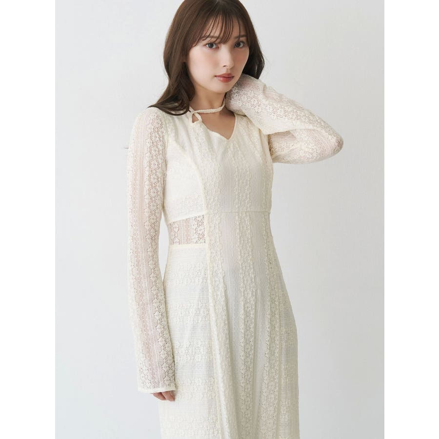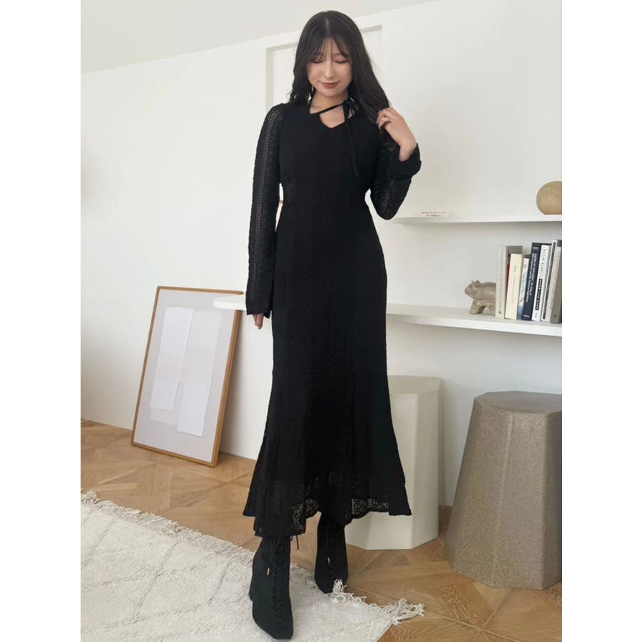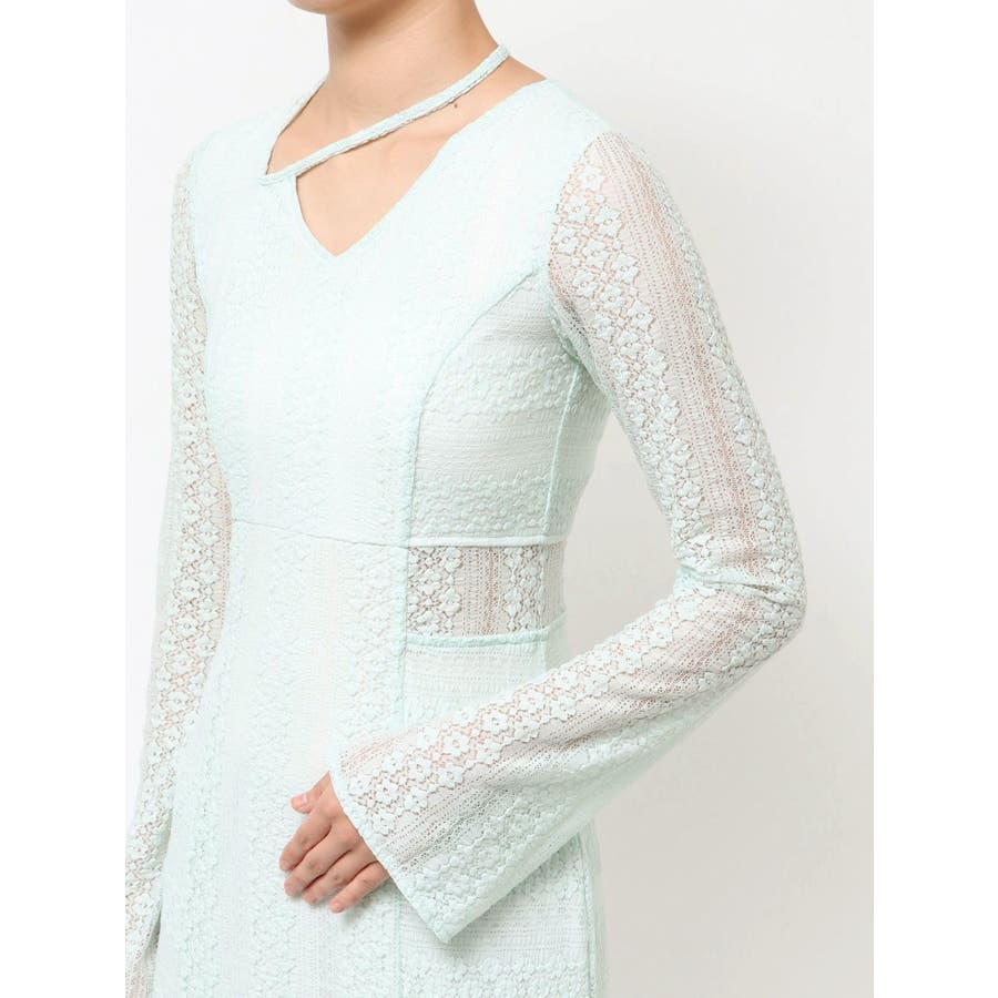 カットレースブロッキングフレアスリーブマーメイドワンピース