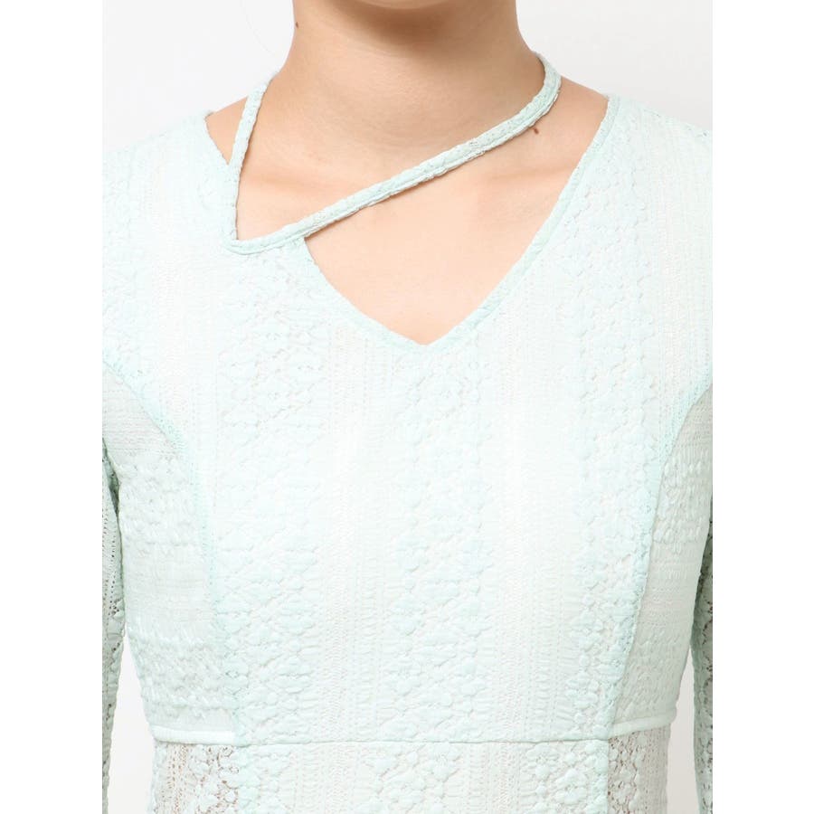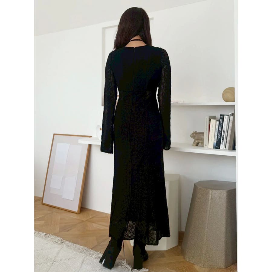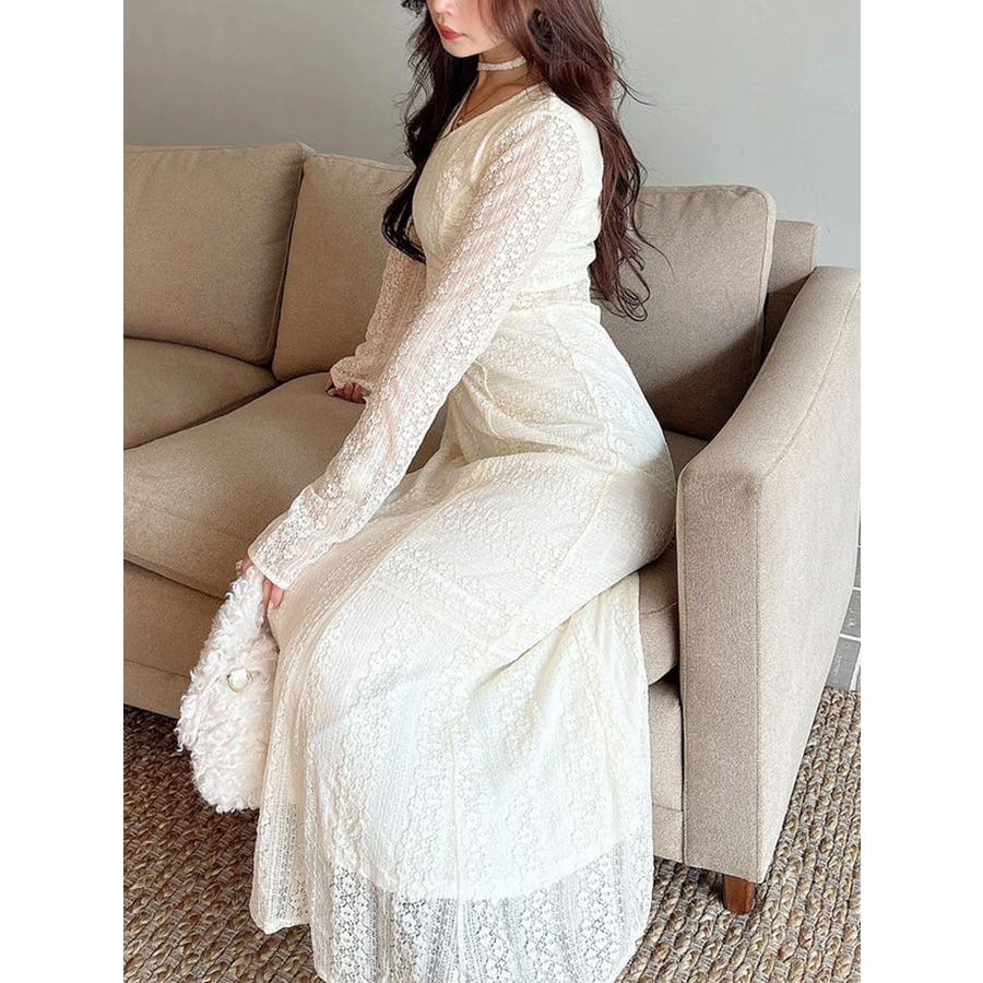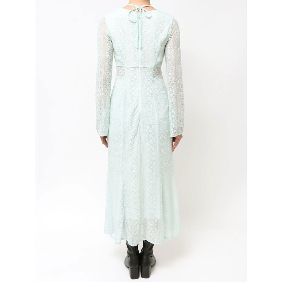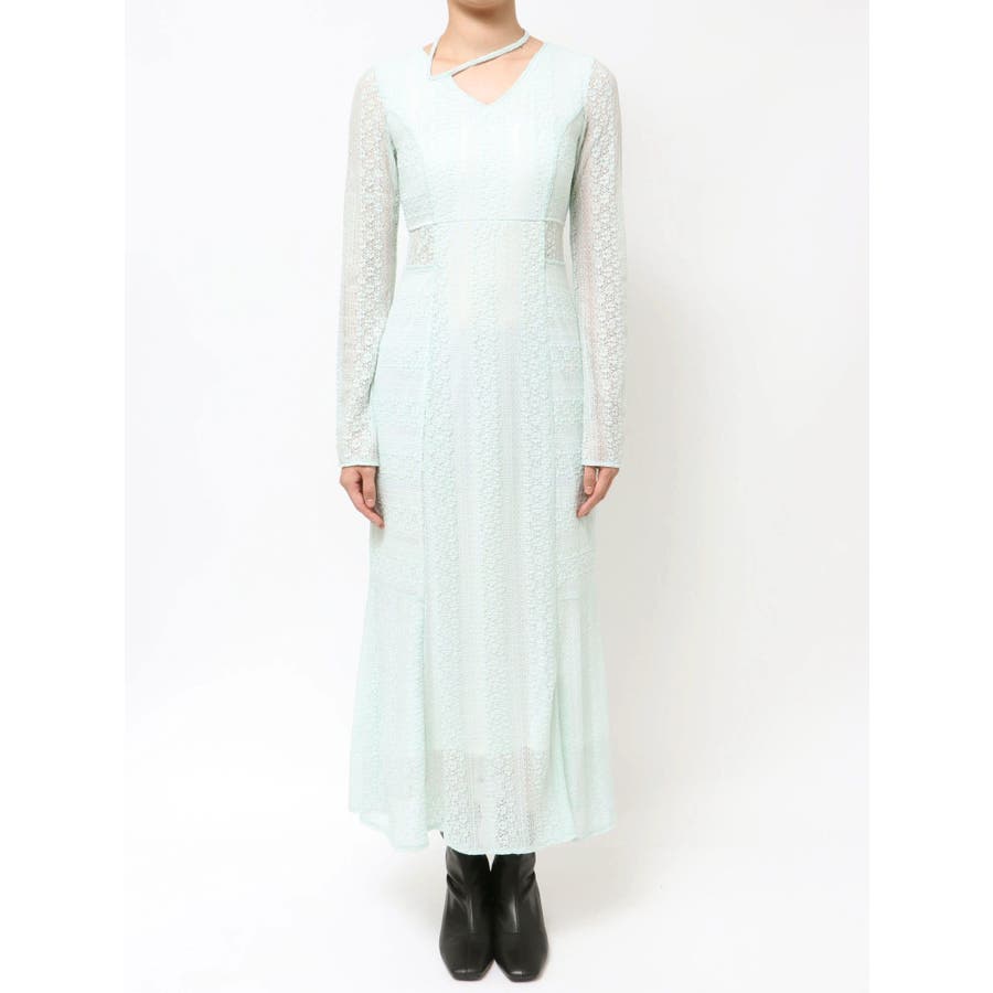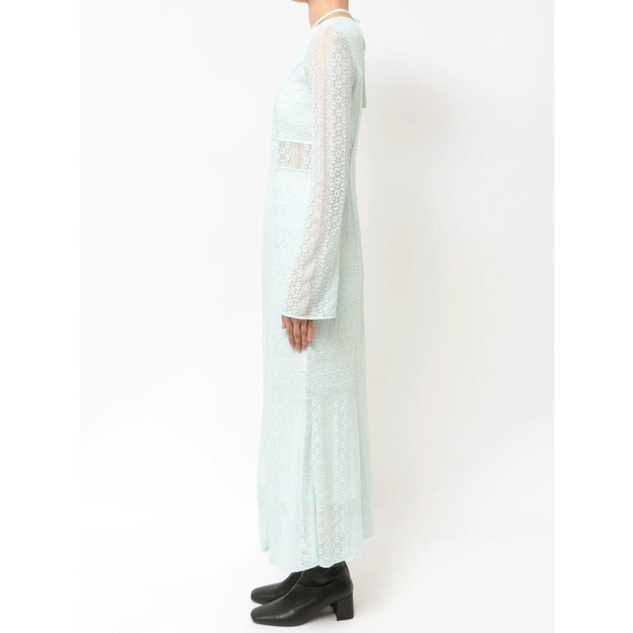 カットレースブロッキングフレアスリーブマーメイドワンピース