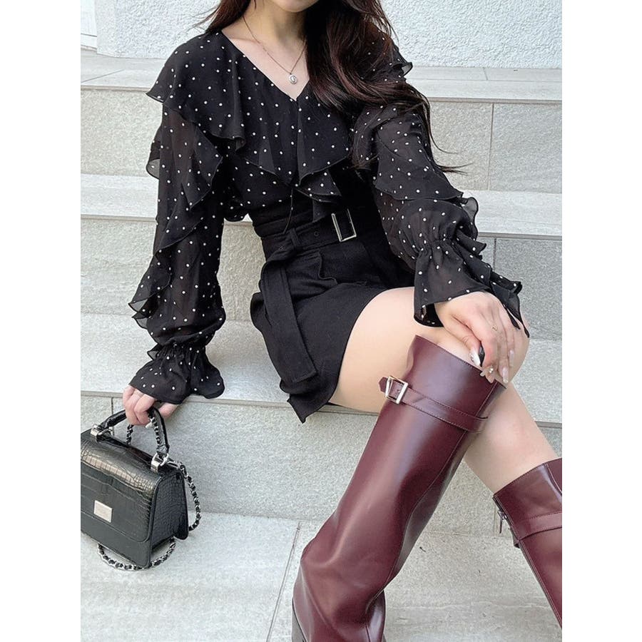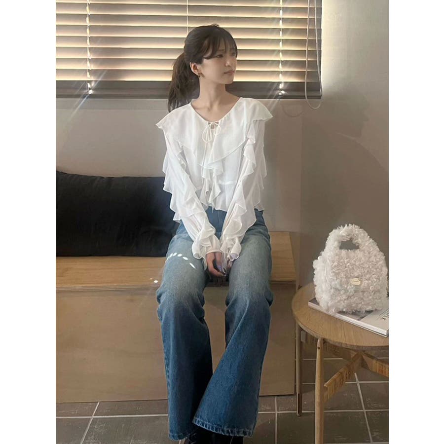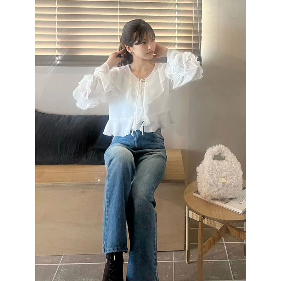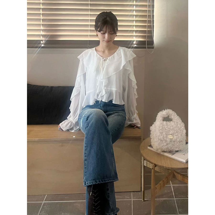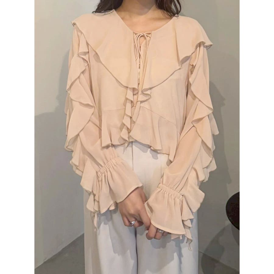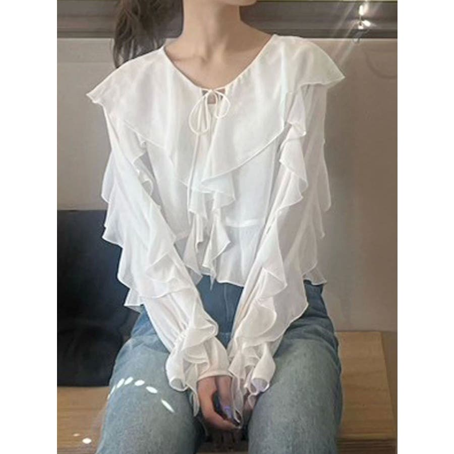 シフォンラッフルブラウス