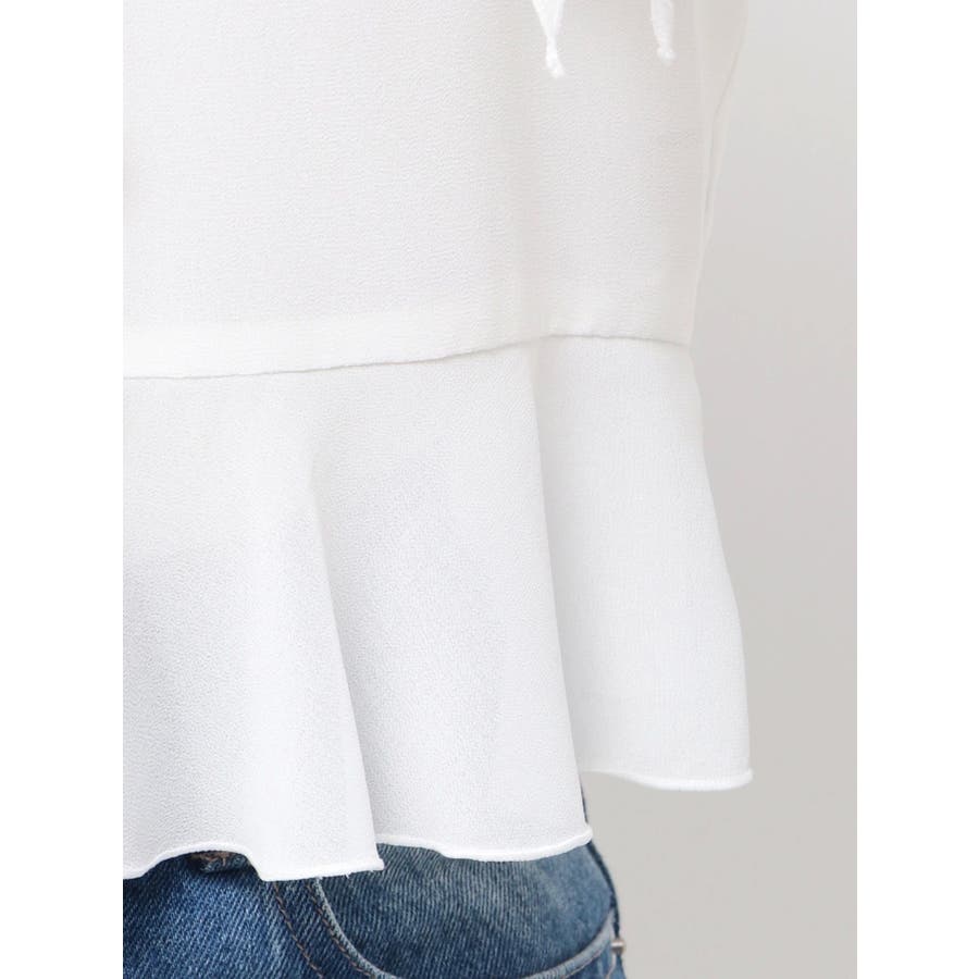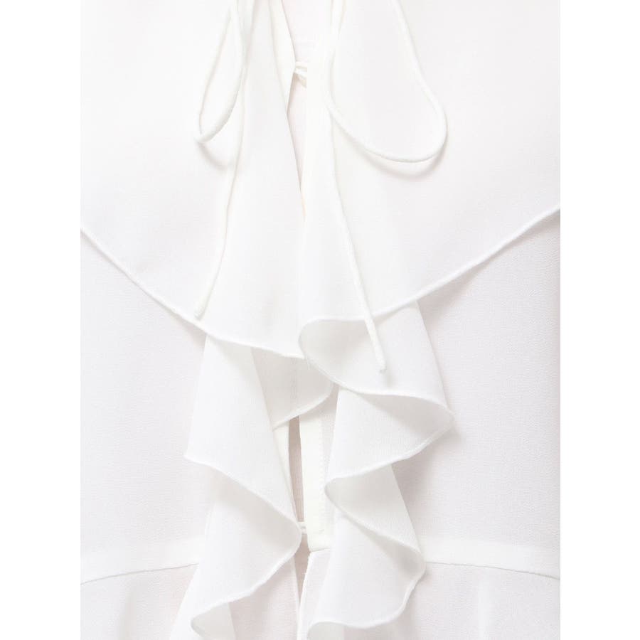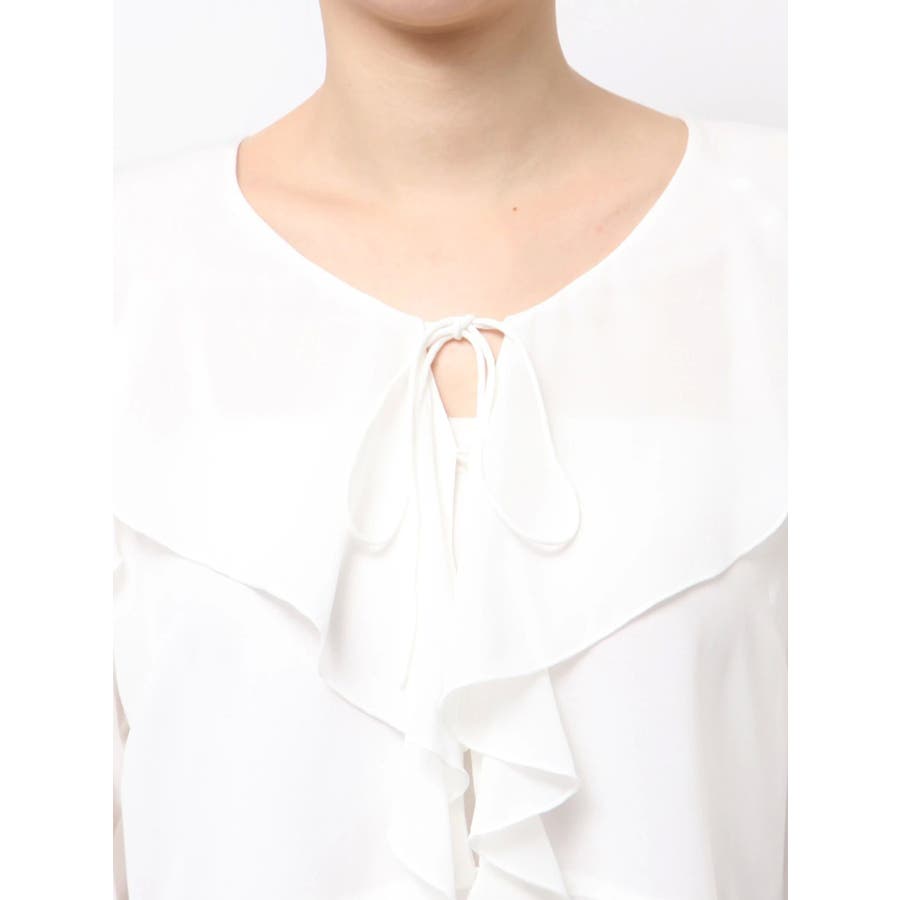 トレンドのラッフルデザインを柔らかなシフォンで表現したブラウスです。端をメロー始末にすることで柔らかい雰囲気に仕上がるようにしました。袖口にゴムが入っているのでその日の気温や気分に合わせて袖丈を調整できます。襟元のリボンがアクセントになっています。ボタンは表から見えないように裏側で留める仕様です。▼スタイリングハイウエストのデニムパンツと合わせると今っぽいコーディネートになっておすすめです。※写真はすべてサンプルです。※詳細画像が正しい仕様となります。 ※着用画像はフラッシュの加減で実際の製品と色味等が異なる場合がございますので、生地のズームアップ画像をご確認ください。※ご利用の端末画面の設定により実際の商品と色味が異なる場合がございます。【商品特徴】透け感:あり伸縮性:なし生地の厚さ:普通サイズ感:普通裏地:なしポケット:なし