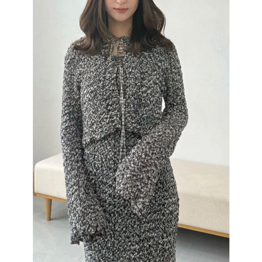 【OUNNOUN】シュリンクシャーリングクロップドブラウス