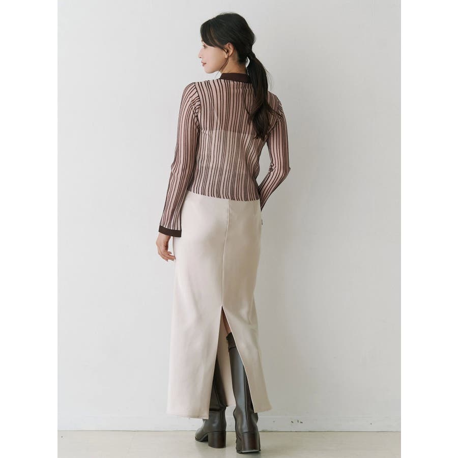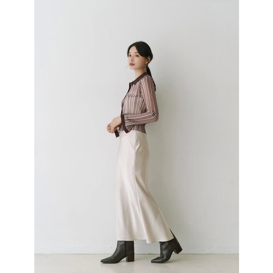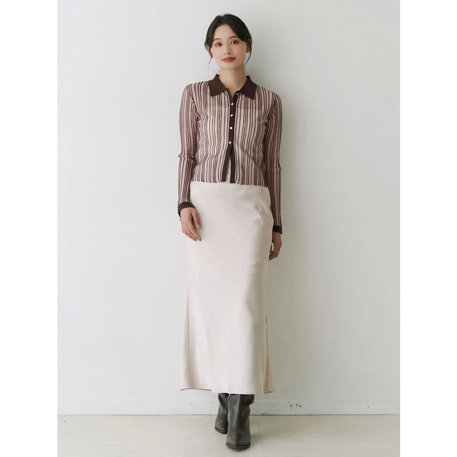 シンプルなナローシルエットながら、バイヤスカットを取り入れることで身体にほどよくフィットし、女性らしいラインを美しく引き立てるスカート。 伸縮性があるので動きやすく、快適な着心地も魅力です。 ウエストの内側にはゴムを仕込んでおり、見た目はすっきりとしたまま、2~3cmほど伸びて体に優しくフィット。 ▼スタイリング シャツやシアーニットを合わせてキレイめに、足元はミュールで女っぽく、ローファーやスニーカーで抜け感を出すなど、 1着でスタイリングの幅が広がります。