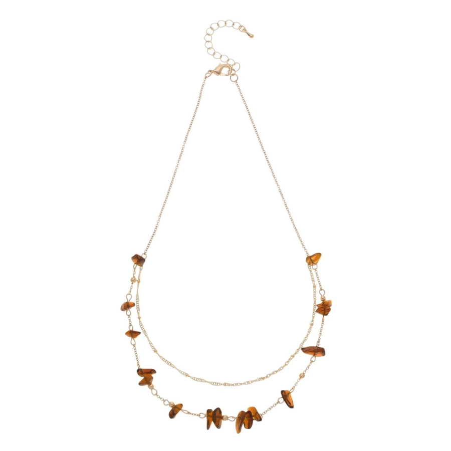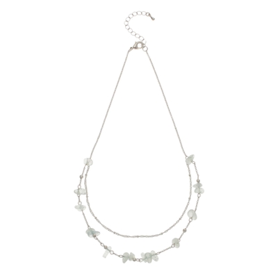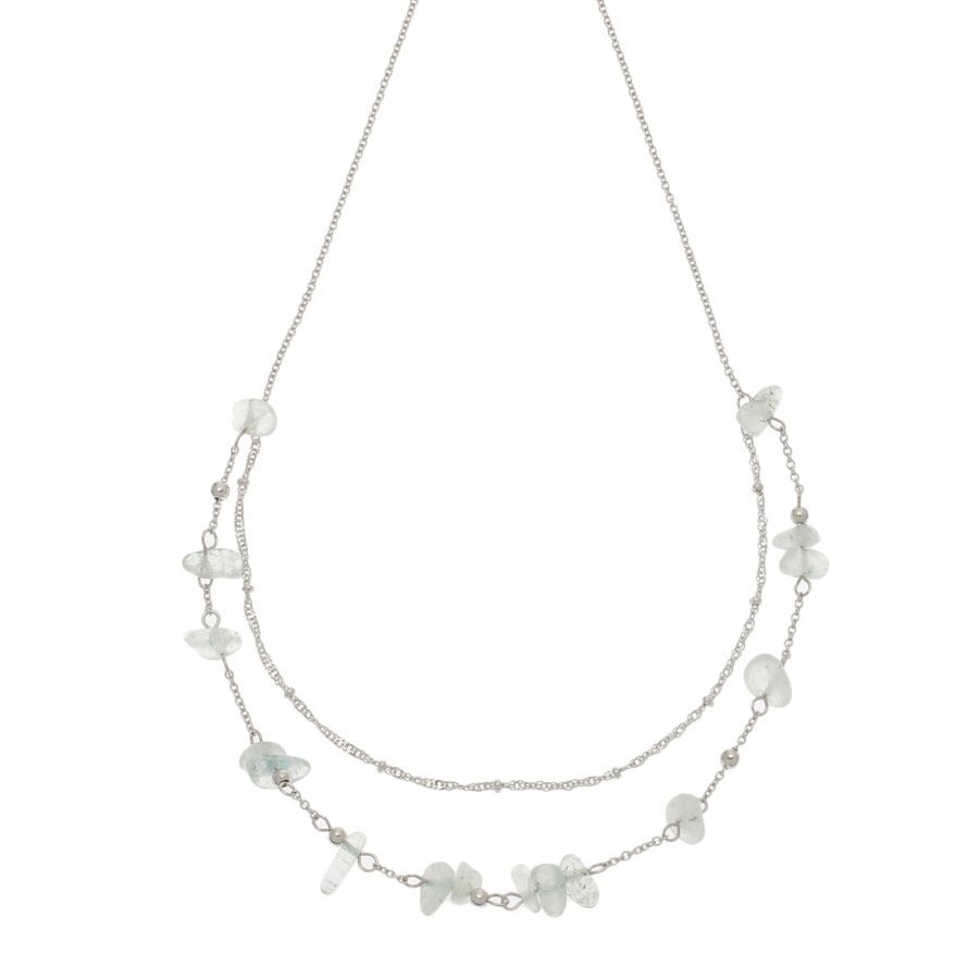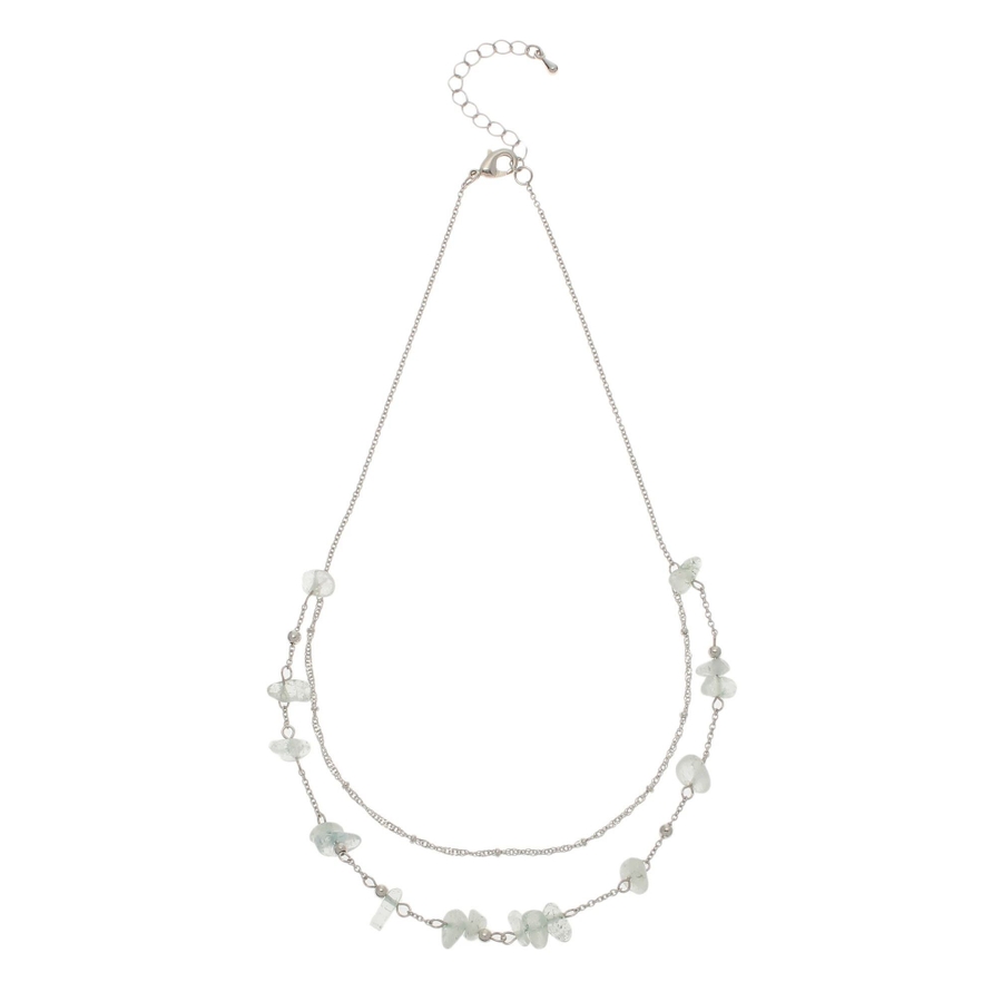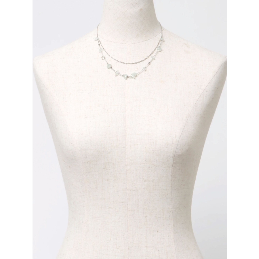 さざれ石とチェーンで2連にしたネックレスです。石はランダムに配置し、間にメタルボールをはさむことで動きの出るデザインになっています。ブラウン系の石にはゴールドパーツを組み合わせて温かみを、ミント系の石にはシルバーパーツを組み合わせることですっきりとした印象をそれぞれ演出しています。※写真はすべてサンプルです。※詳細画像が正しい仕様となります。