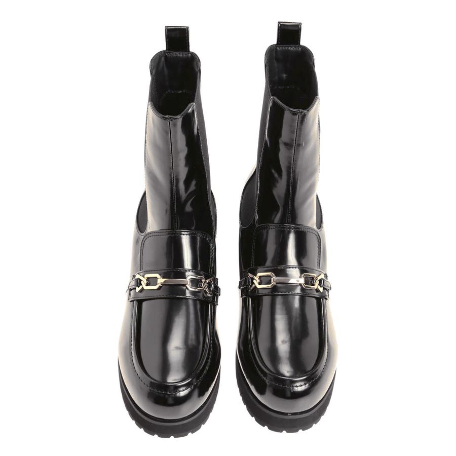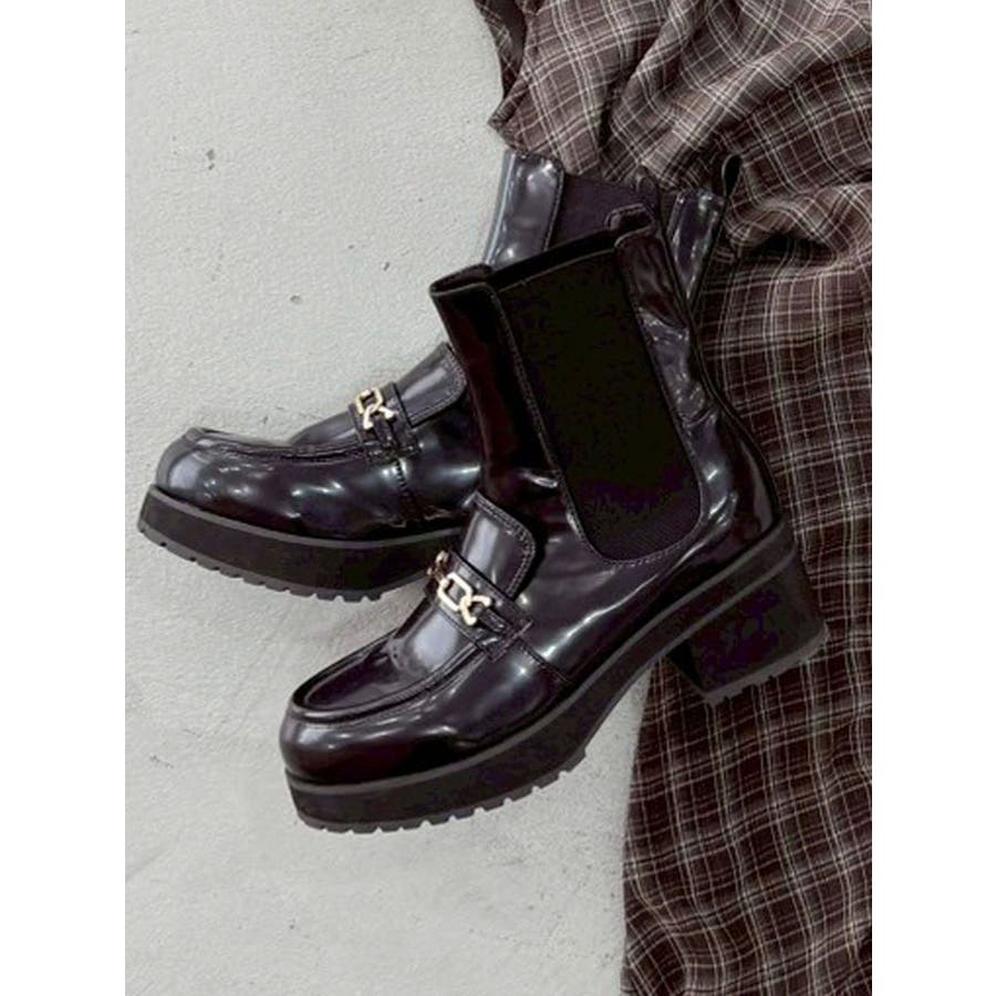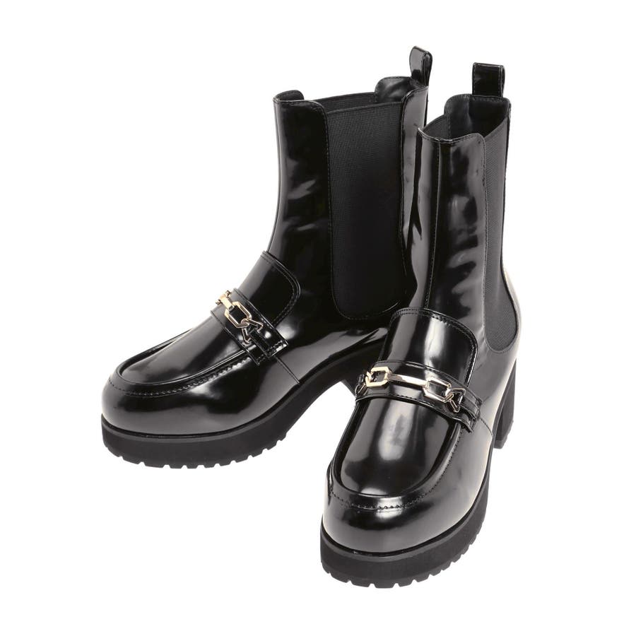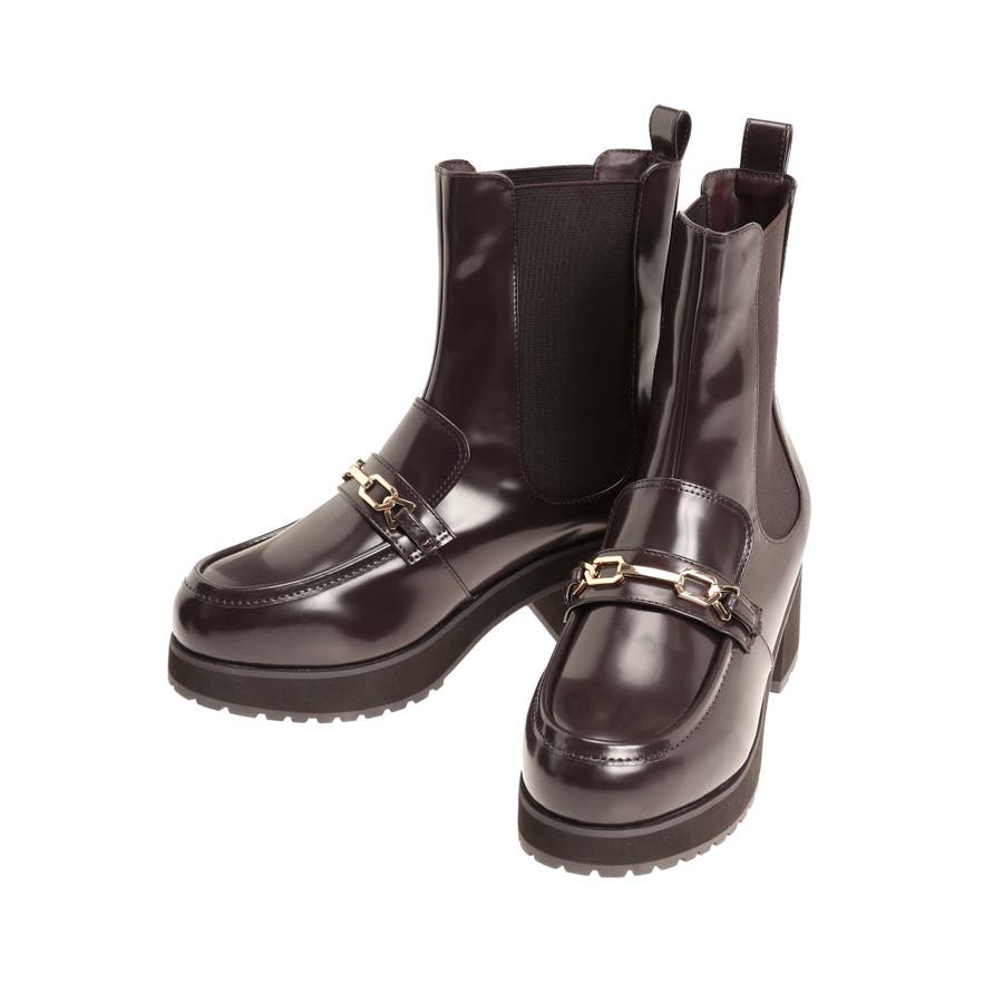 ローファーがサイドゴアブーツとドッキングしたローファーブーツ。 両側にゴムが付いており、足首に程よくフィットするので足元をスッキリと見せてくれます。 取り入れるだけで程よいトレンド感とモード感を演出してくれます。 前にもソールが付いているので、ヒールの高低差が気にならなく、履きやすく作っております。 ※写真はすべてサンプルです。※詳細画像が正しい仕様となります。【スタッフ着用レビュー】 スタッフB(普段のサイズ: 24.5cm/足の幅: 9.8cm/甲の高さ: 5.6cm/ふくらはぎ周り:34cm)38サイズ着用で少し足先に余裕がありました。フィット感があり、安定したヒールなので歩きやすいのが嬉しいです。足幅も少し余裕がありました。