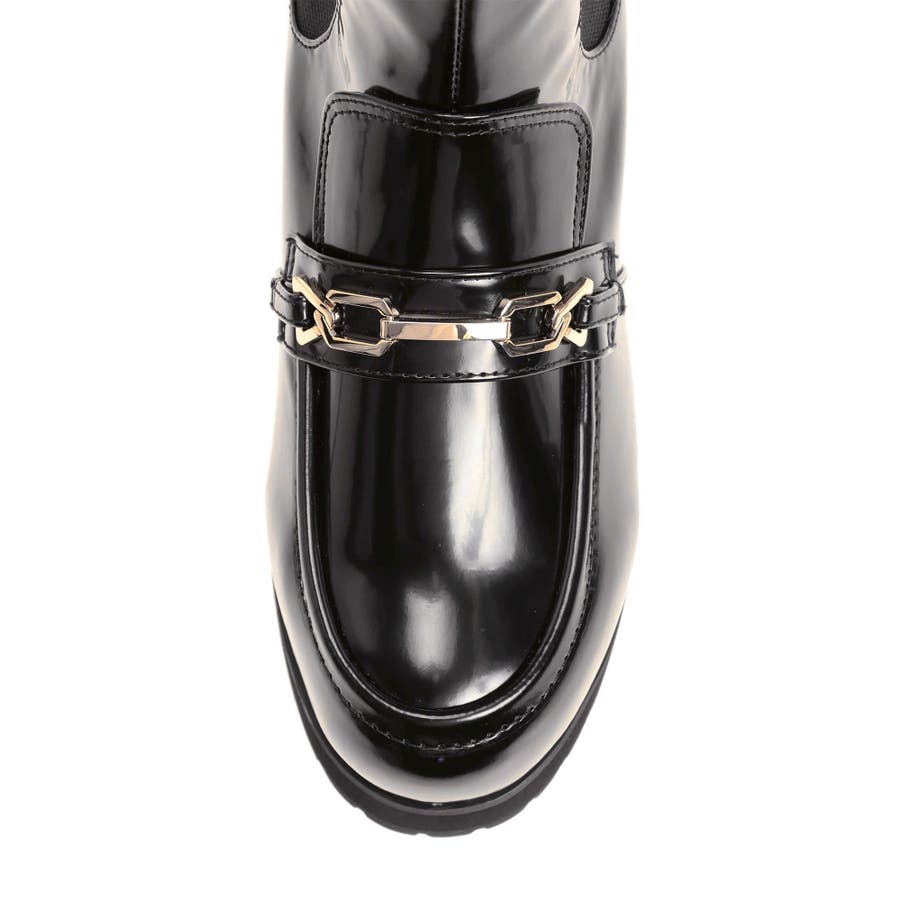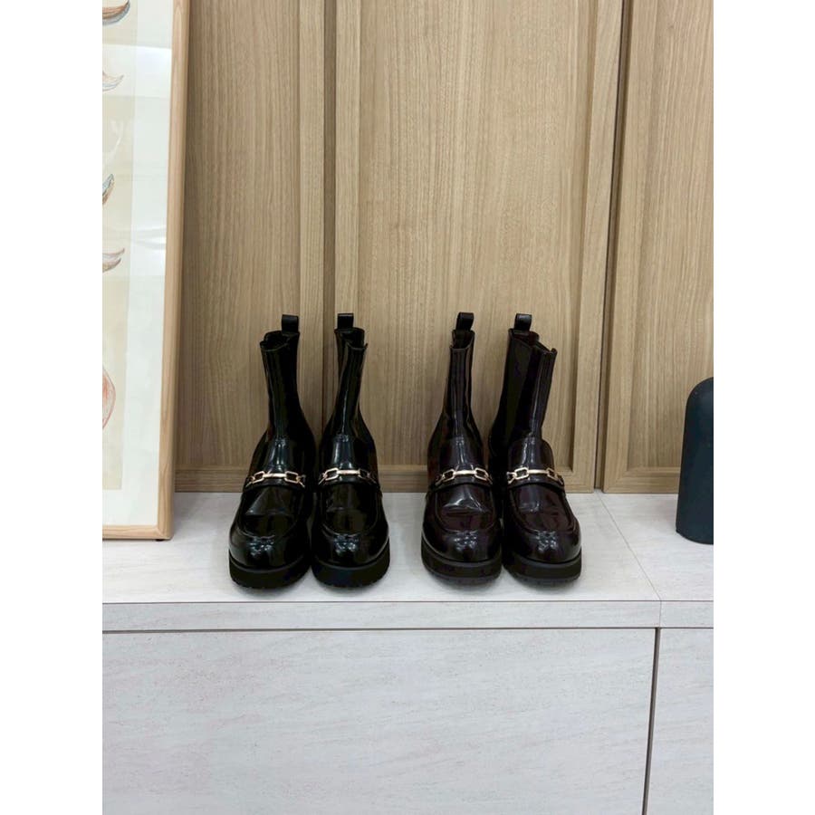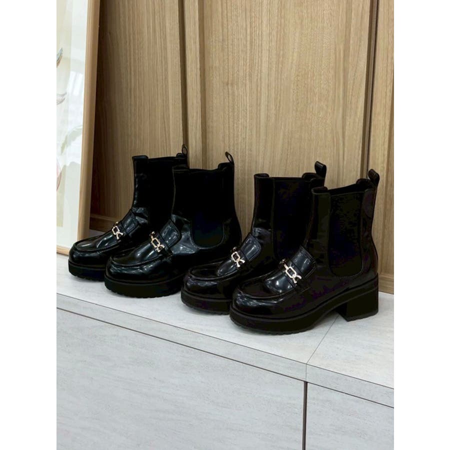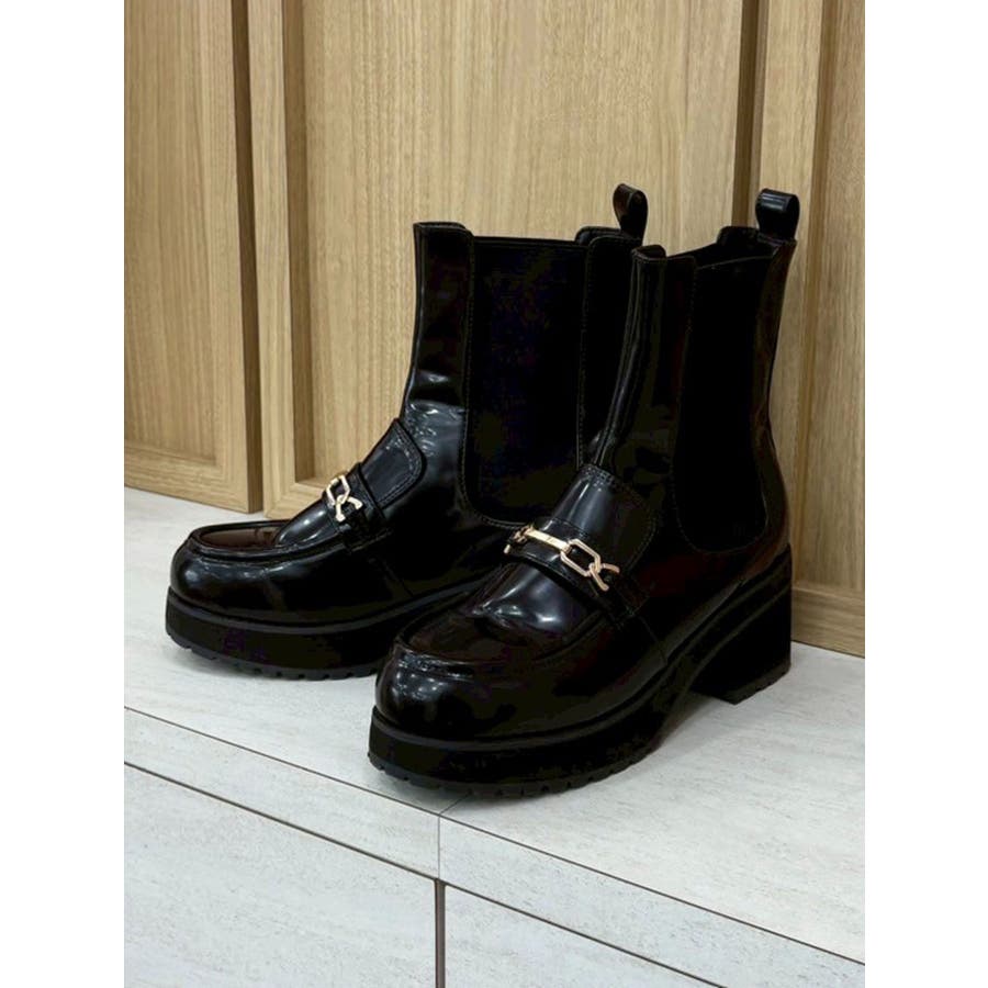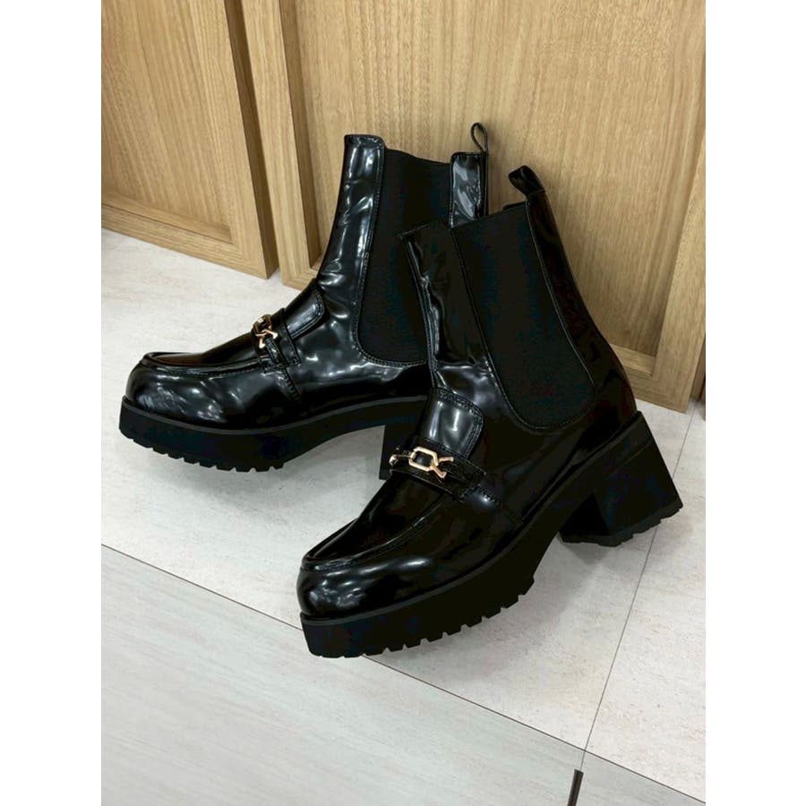 ローファーがサイドゴアブーツとドッキングしたローファーブーツ。 両側にゴムが付いており、足首に程よくフィットするので足元をスッキリと見せてくれます。 取り入れるだけで程よいトレンド感とモード感を演出してくれます。 前にもソールが付いているので、ヒールの高低差が気にならなく、履きやすく作っております。 ※写真はすべてサンプルです。※詳細画像が正しい仕様となります。【スタッフ着用レビュー】 スタッフB(普段のサイズ: 24.5cm/足の幅: 9.8cm/甲の高さ: 5.6cm/ふくらはぎ周り:34cm)38サイズ着用で少し足先に余裕がありました。フィット感があり、安定したヒールなので歩きやすいのが嬉しいです。足幅も少し余裕がありました。