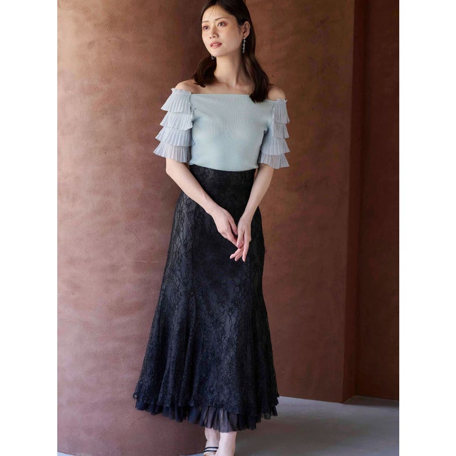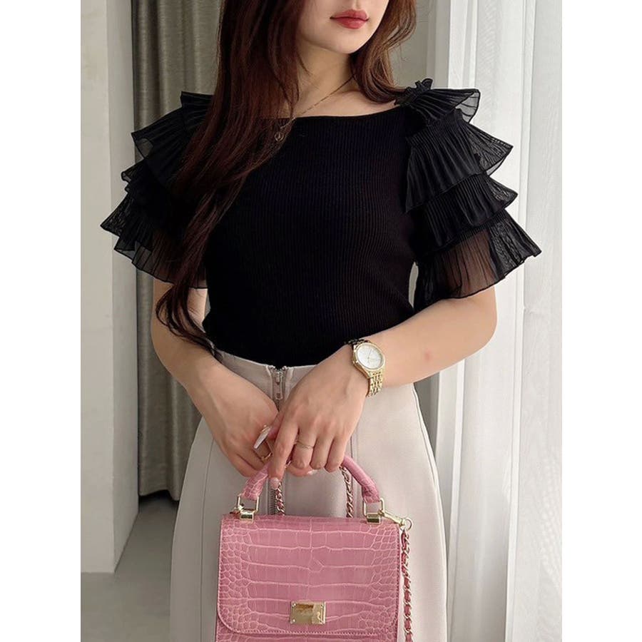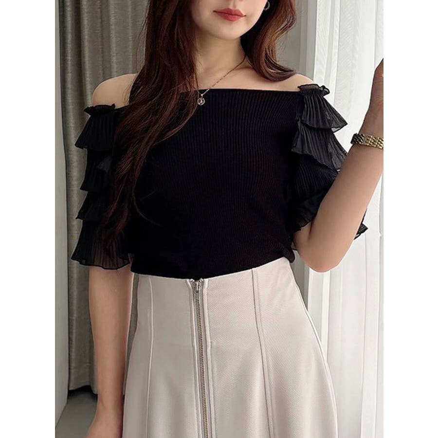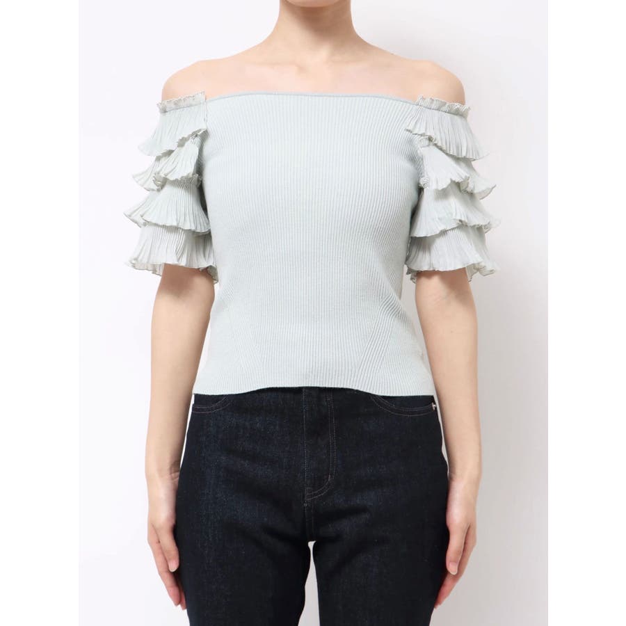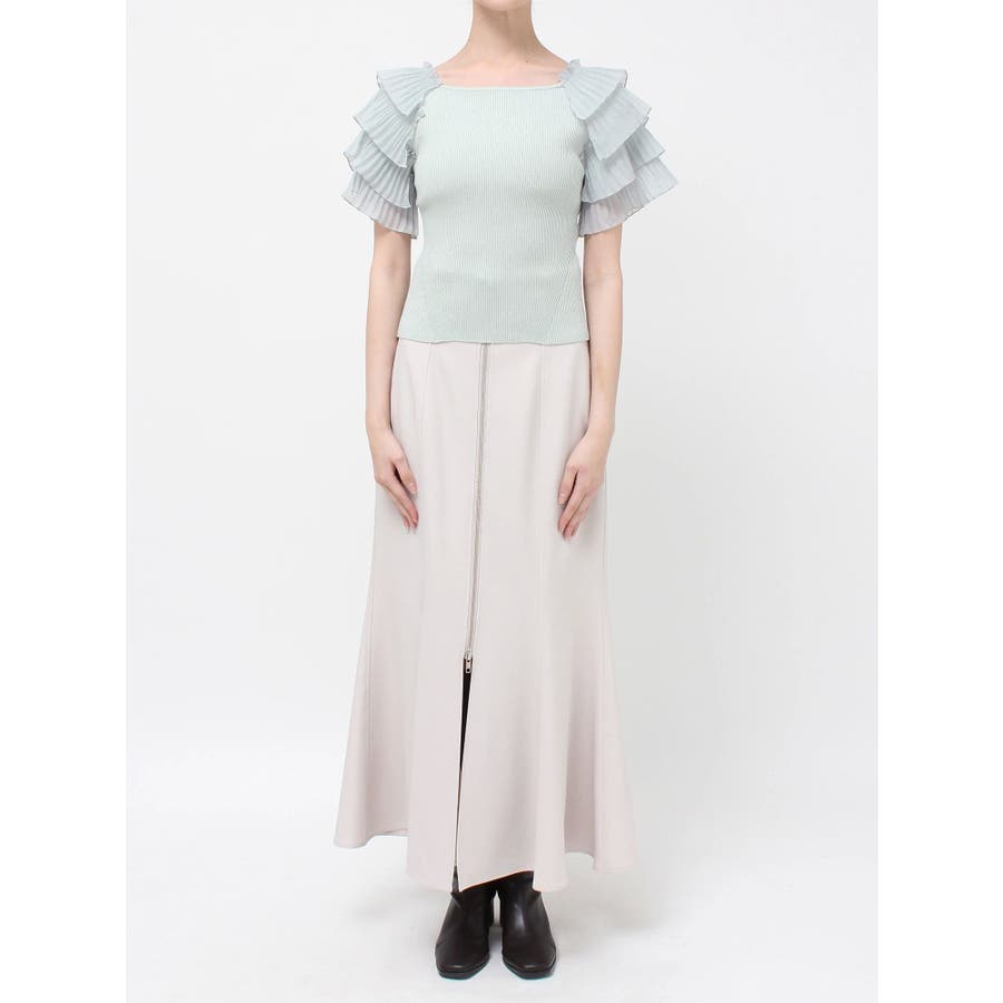 異素材ティアードスリーブニット