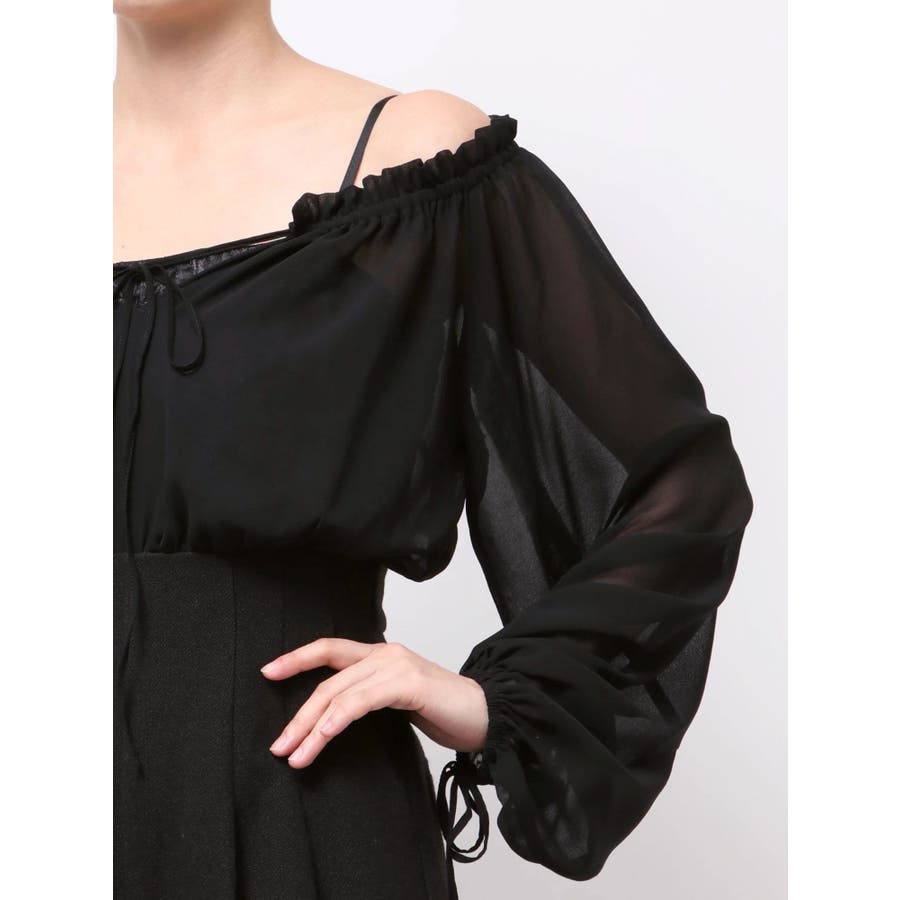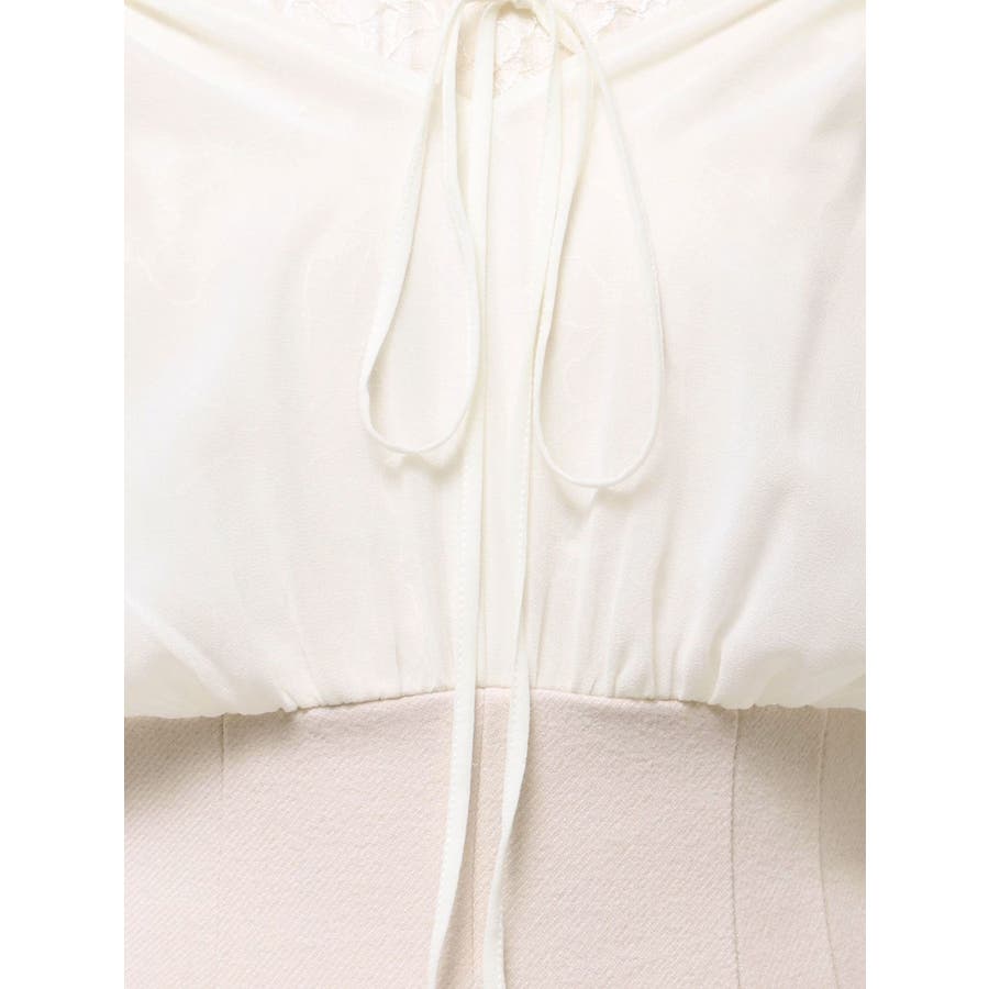 | 素材 | 表地 上身頃:ポリエステル100% 下身頃:ポリエステル78% レーヨン12% アクリル10% レース:ナイロン100% 別布:ポリエステル81% 綿19% 裏地:ポリエステル100% |