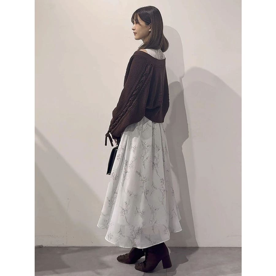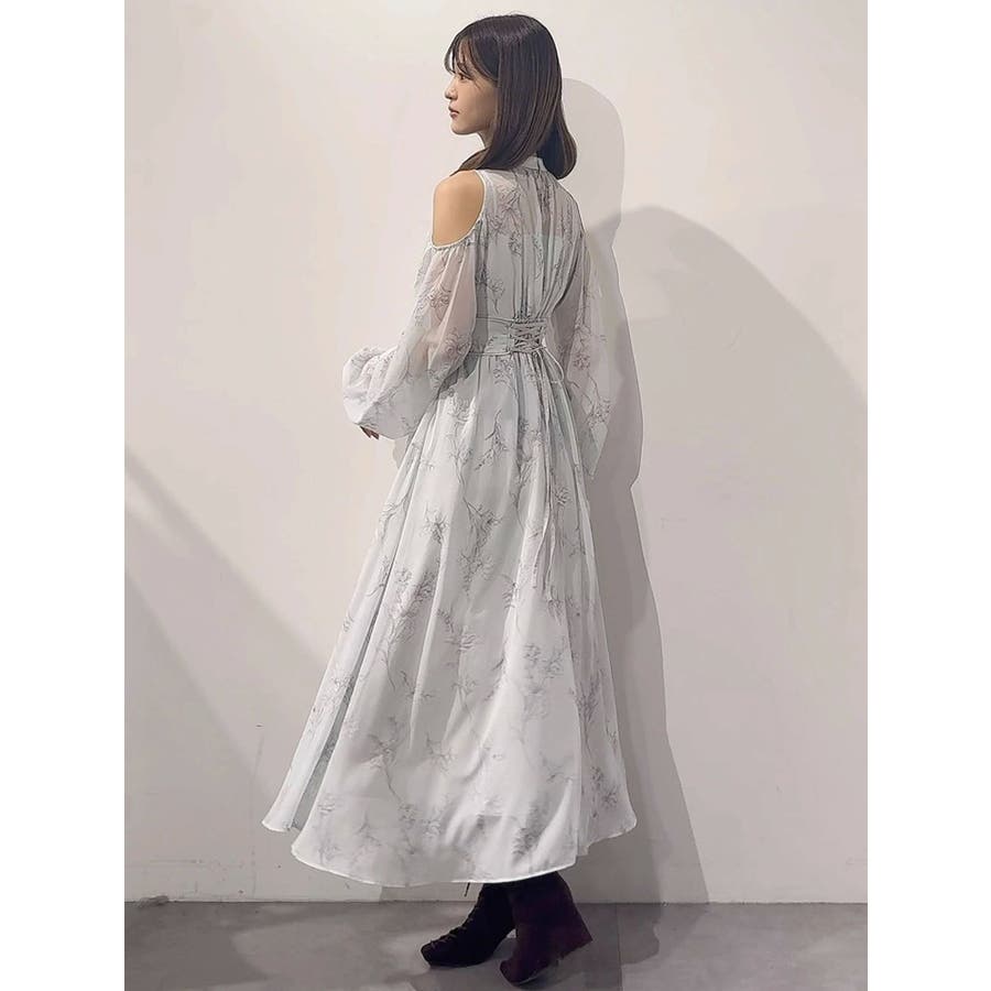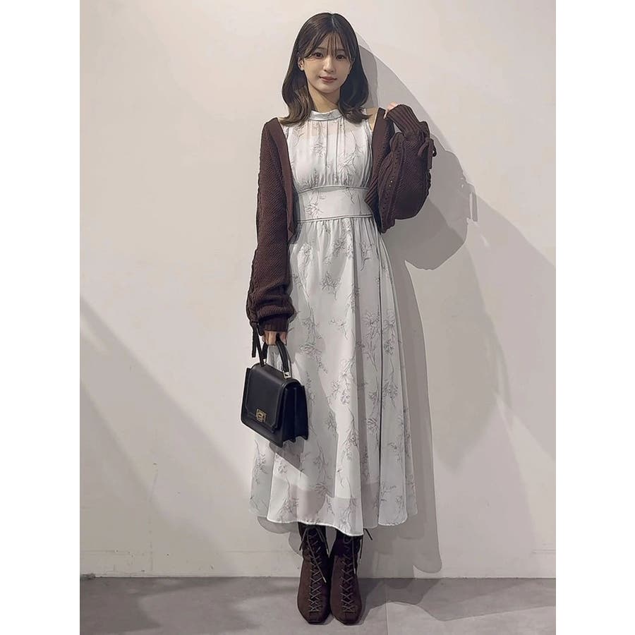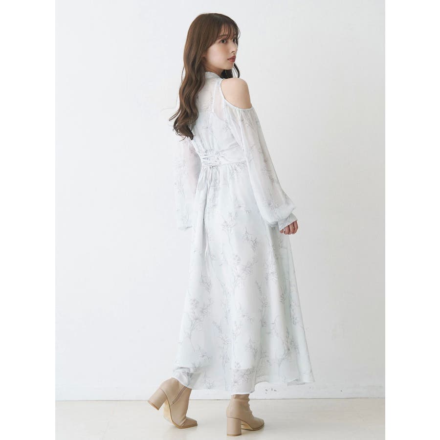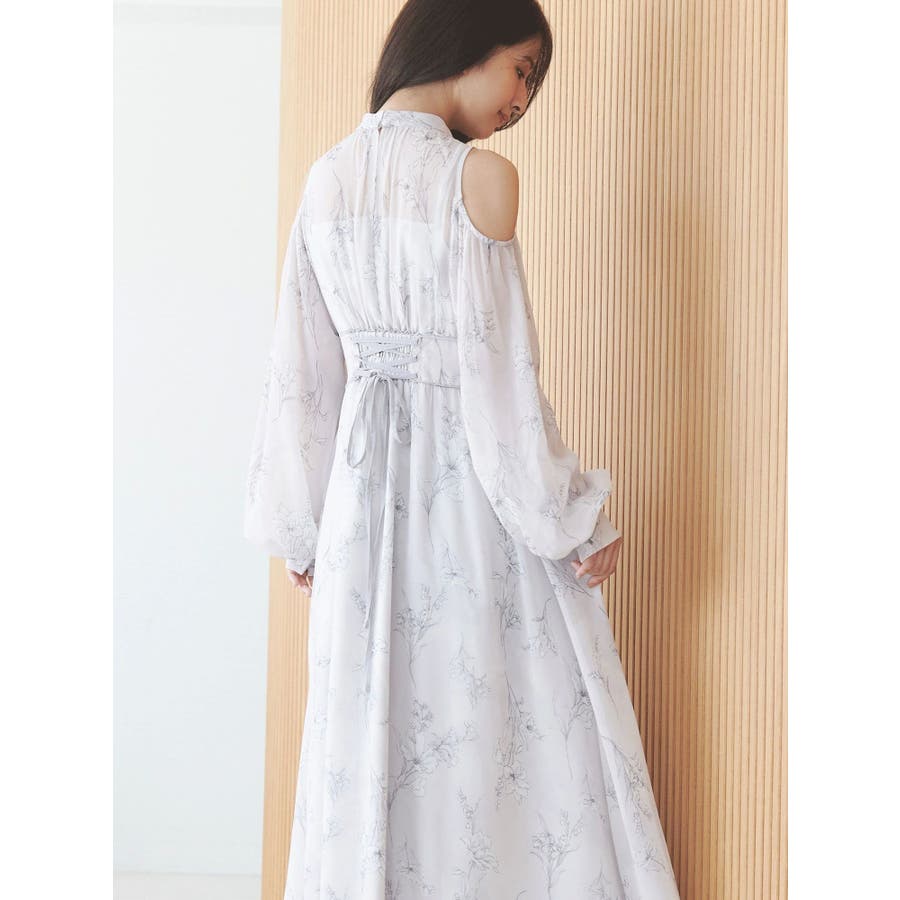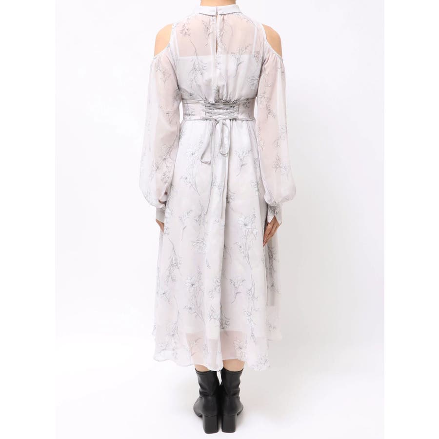 花柄バックレースアップロングスリーブワンピース