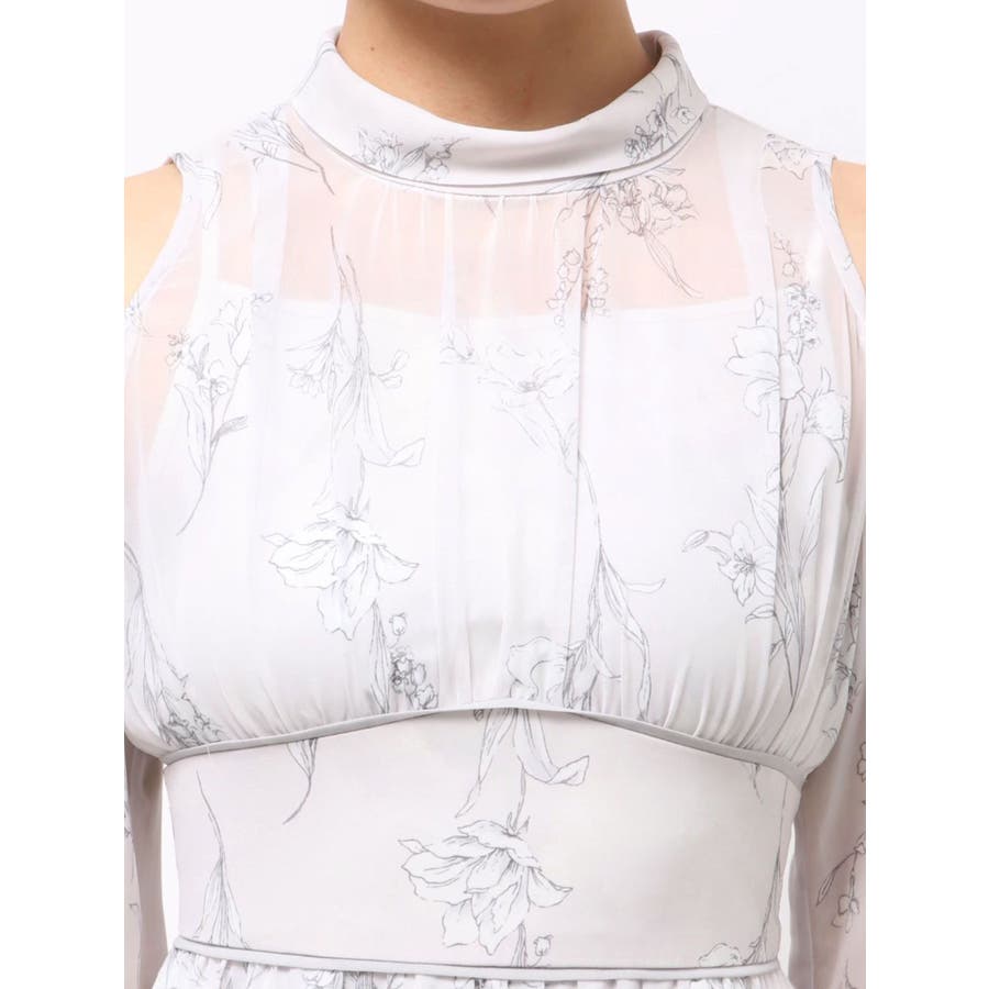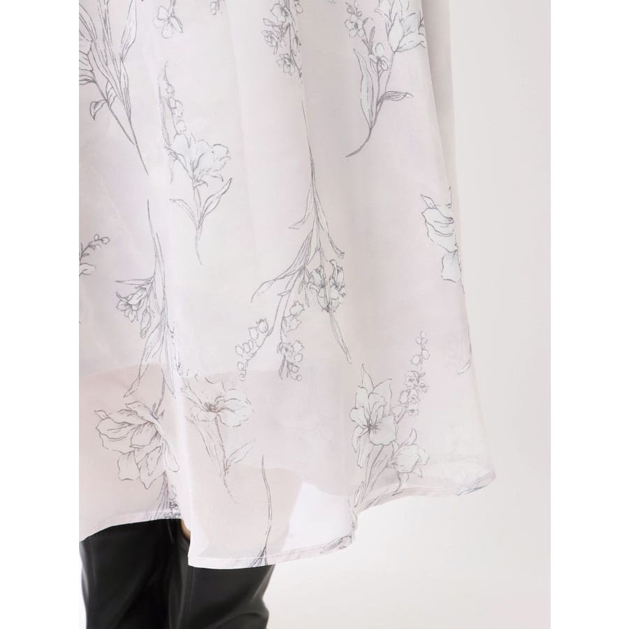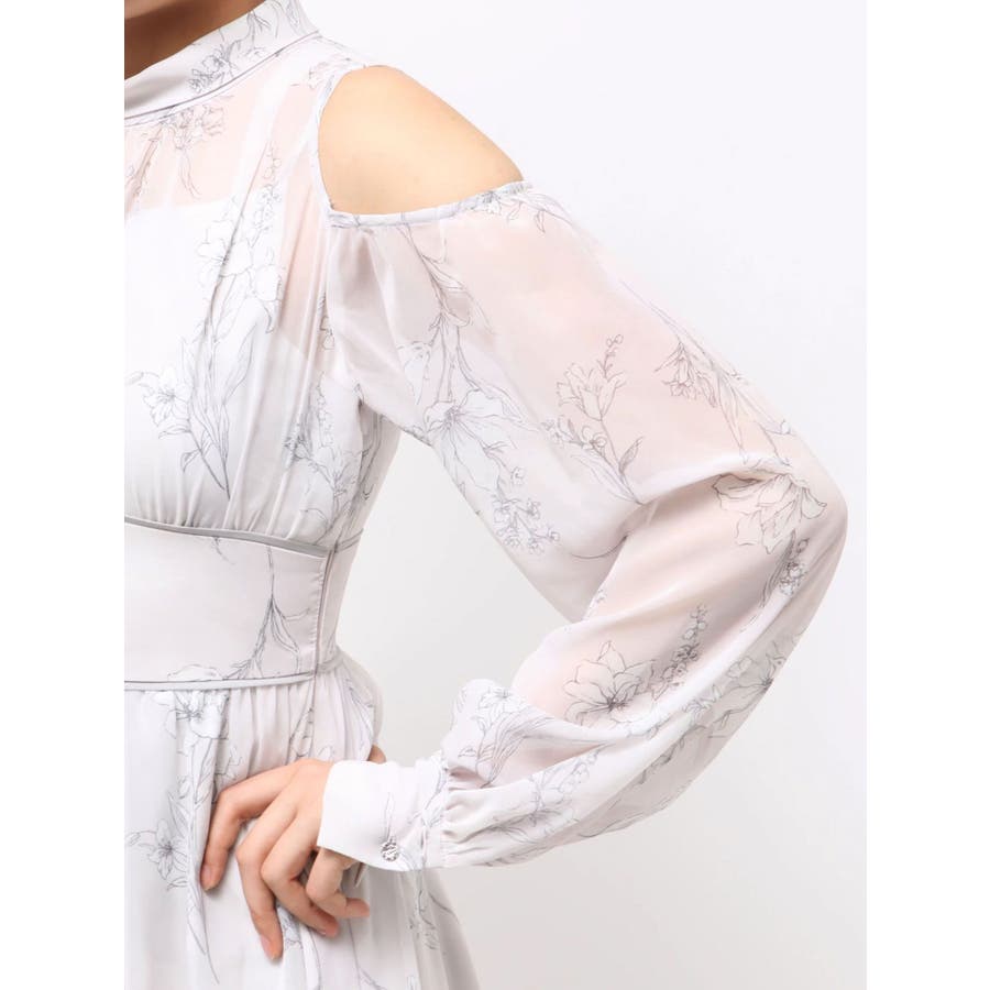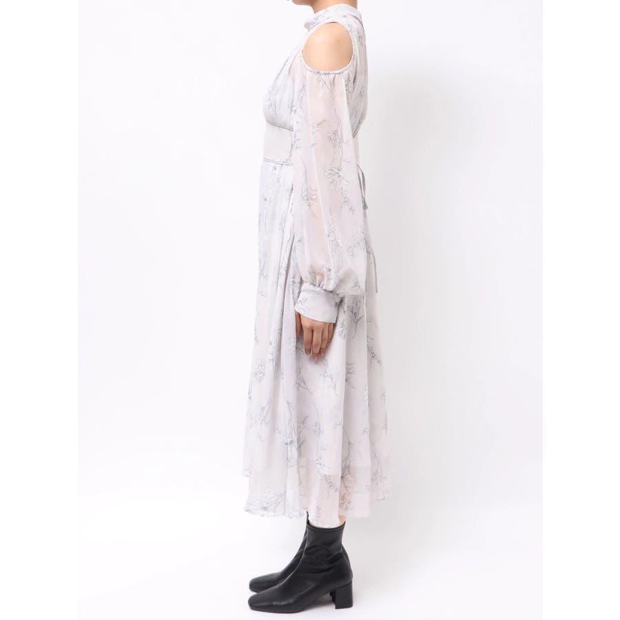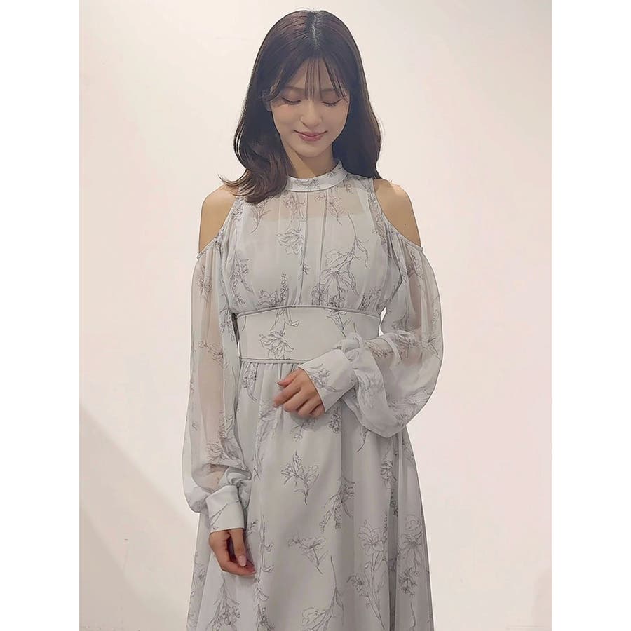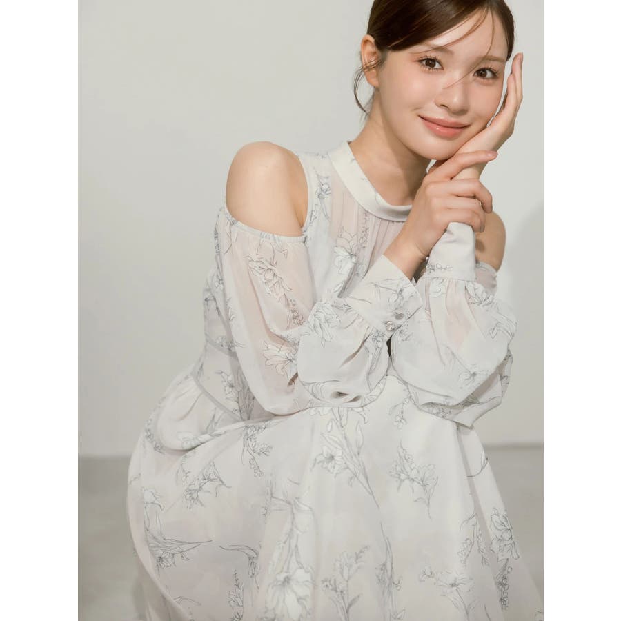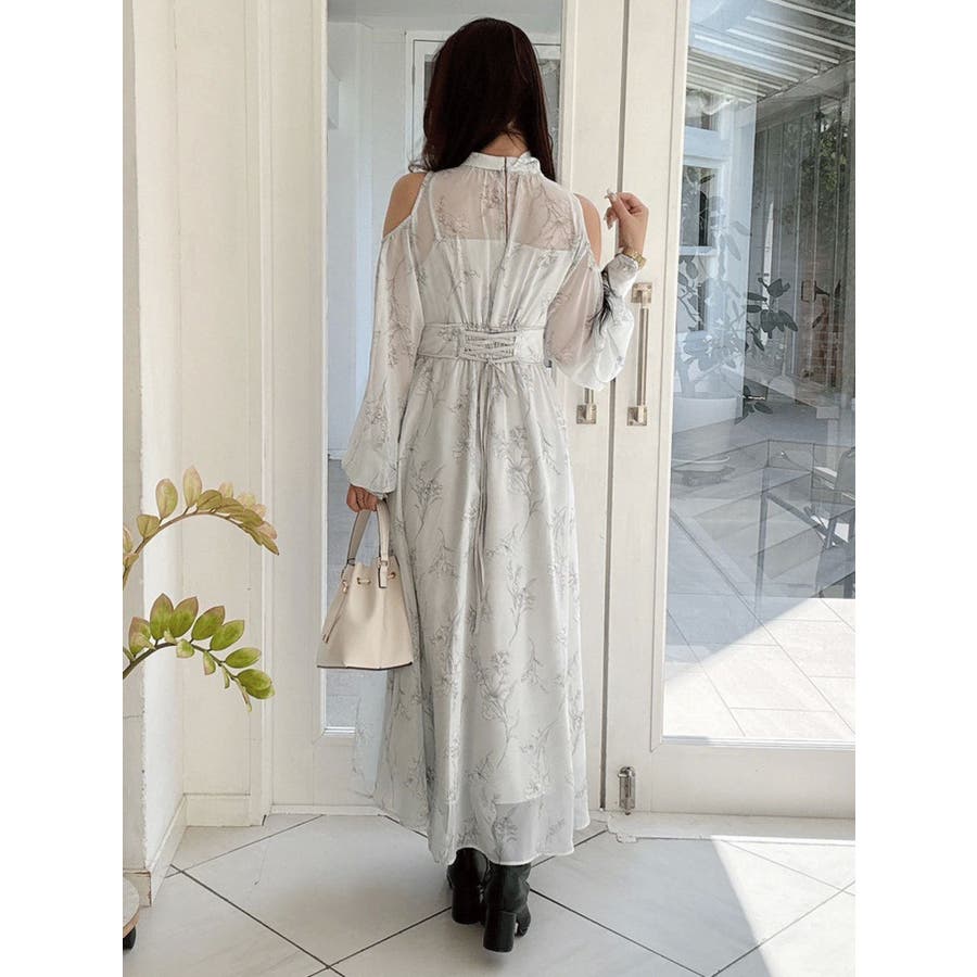 花柄バックレースアップロングスリーブワンピース